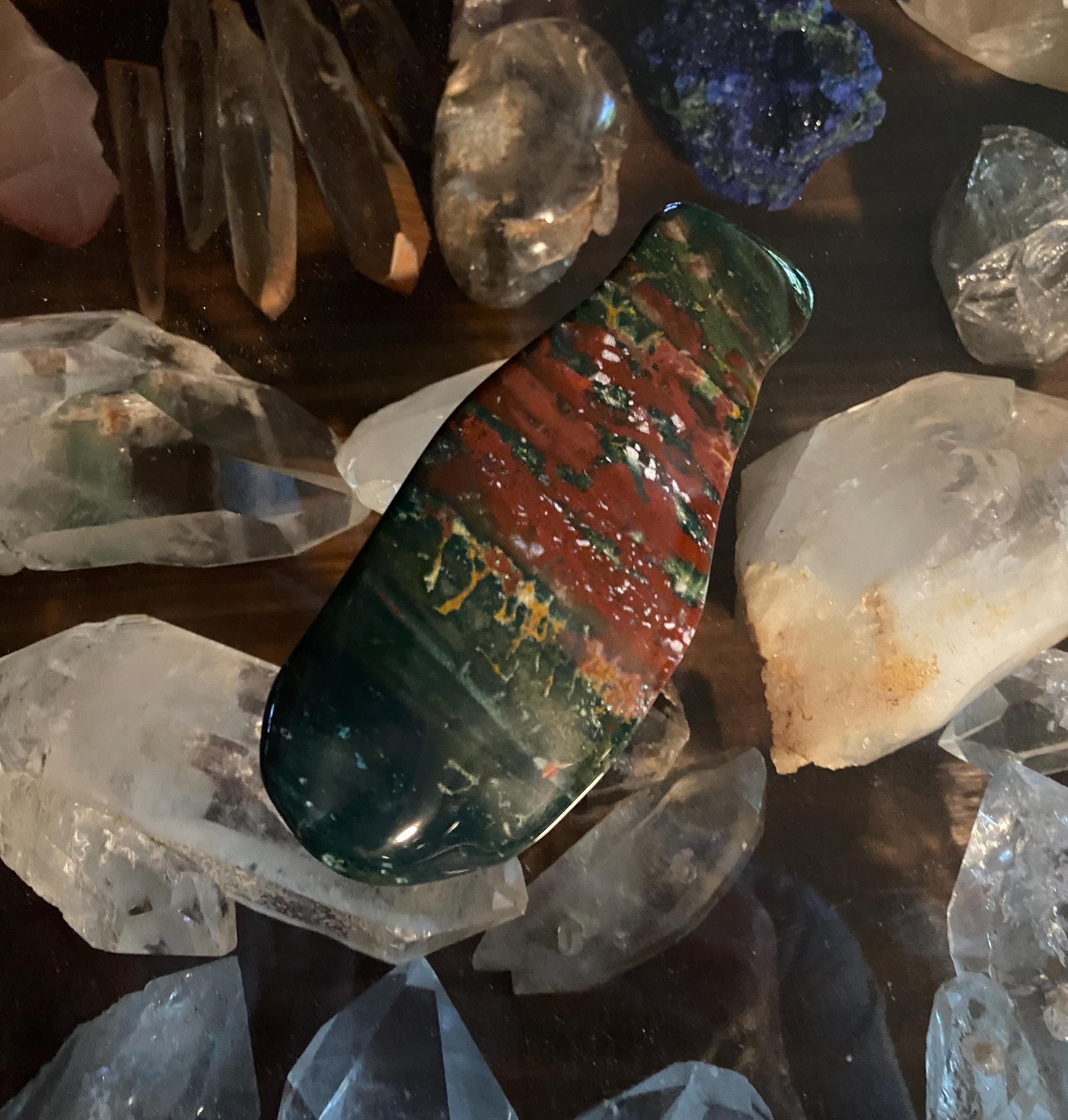 Bloodstone has been used to facilitate admittance to the spiritual realms of our ancestors, providing an open line of intuitive communication with them.