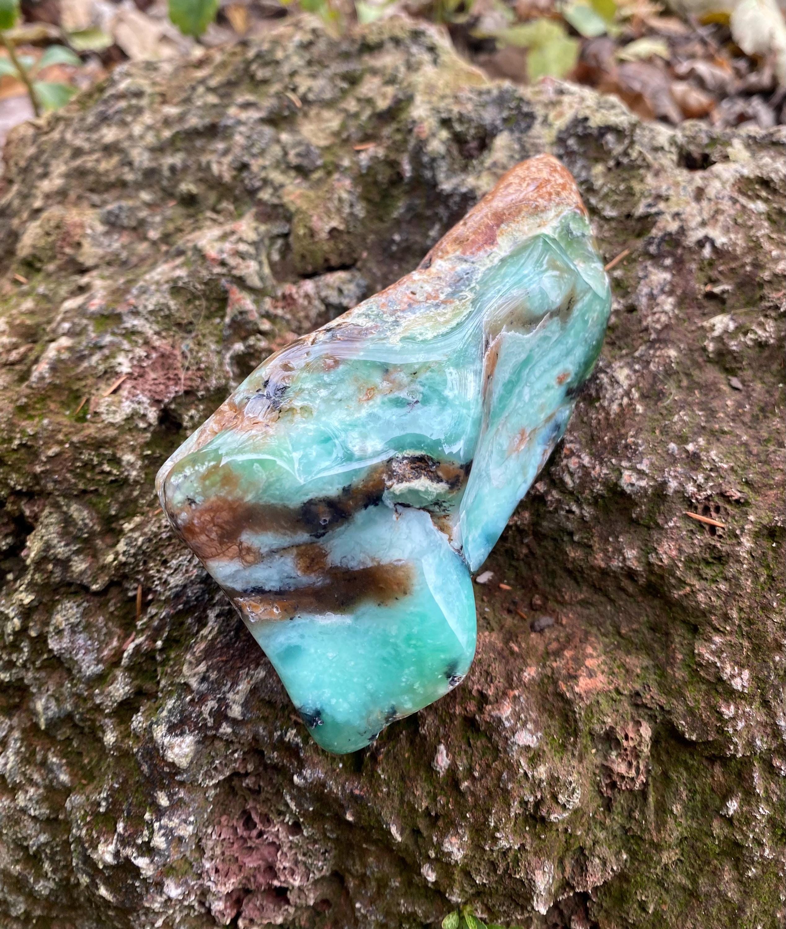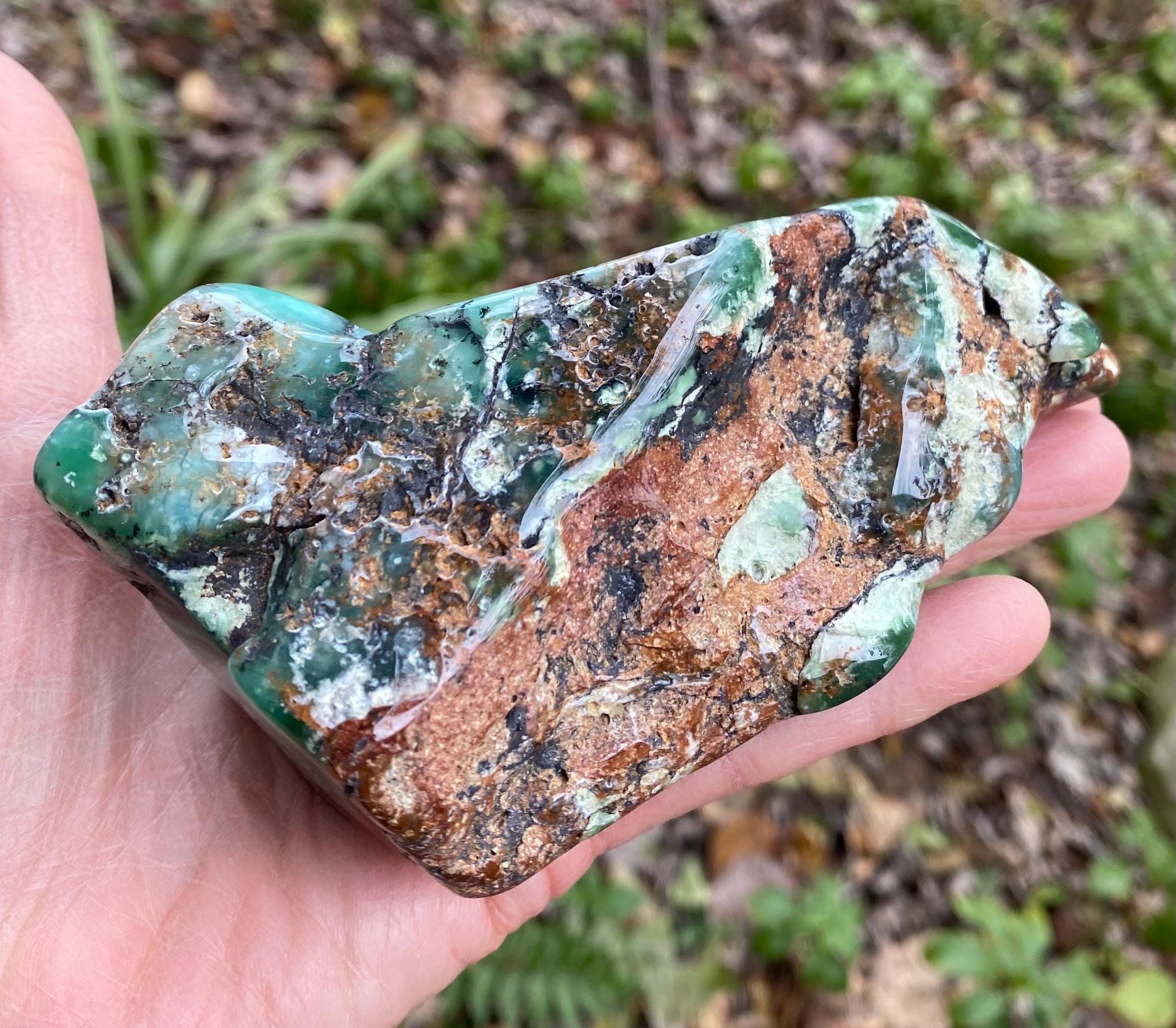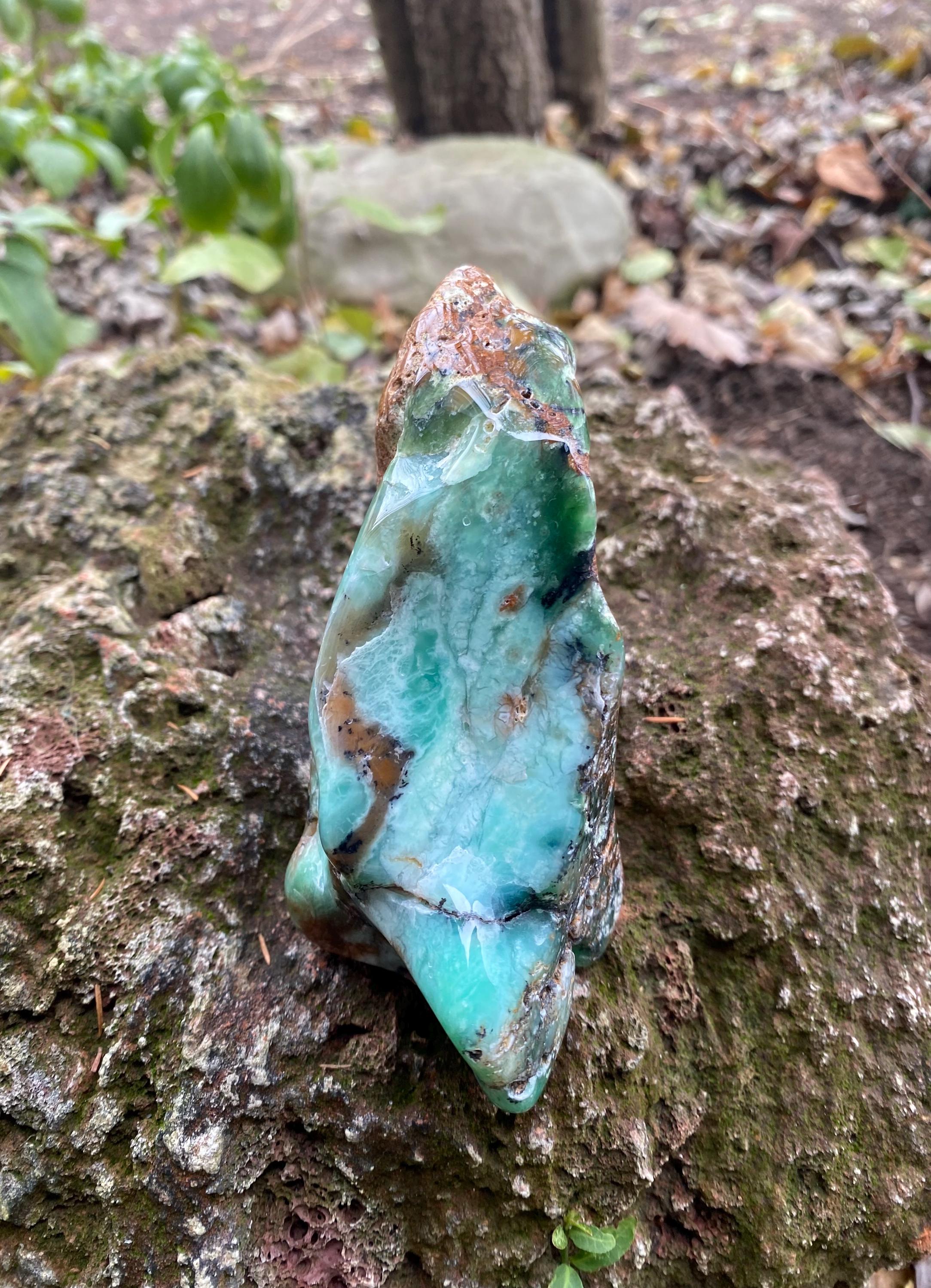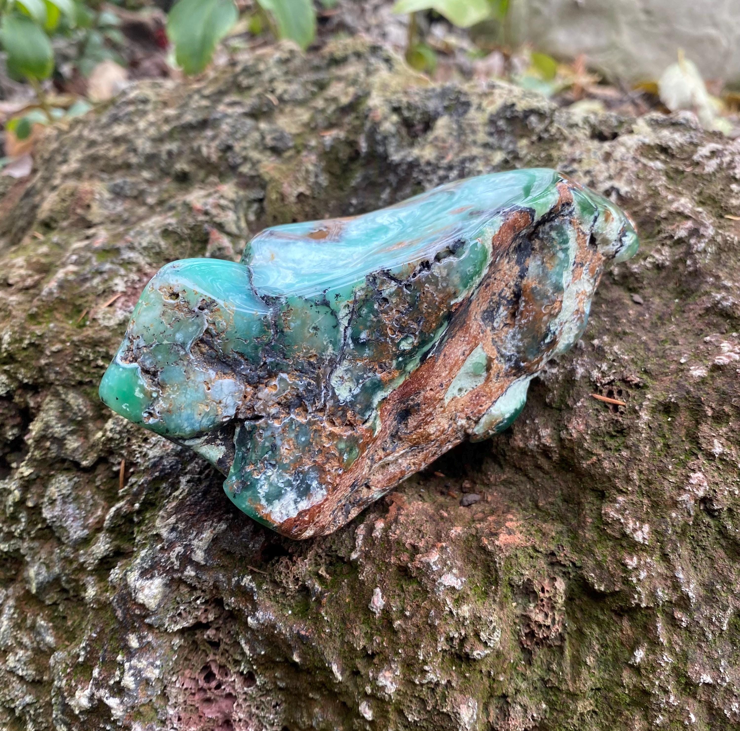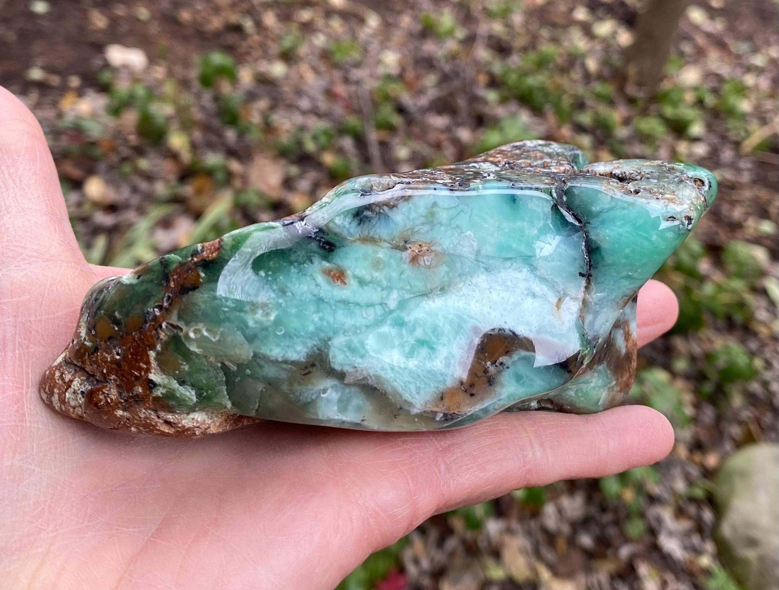 This is a beautifully colored and patterned Large Chrysoprase semi-polished stone from Madagascar.