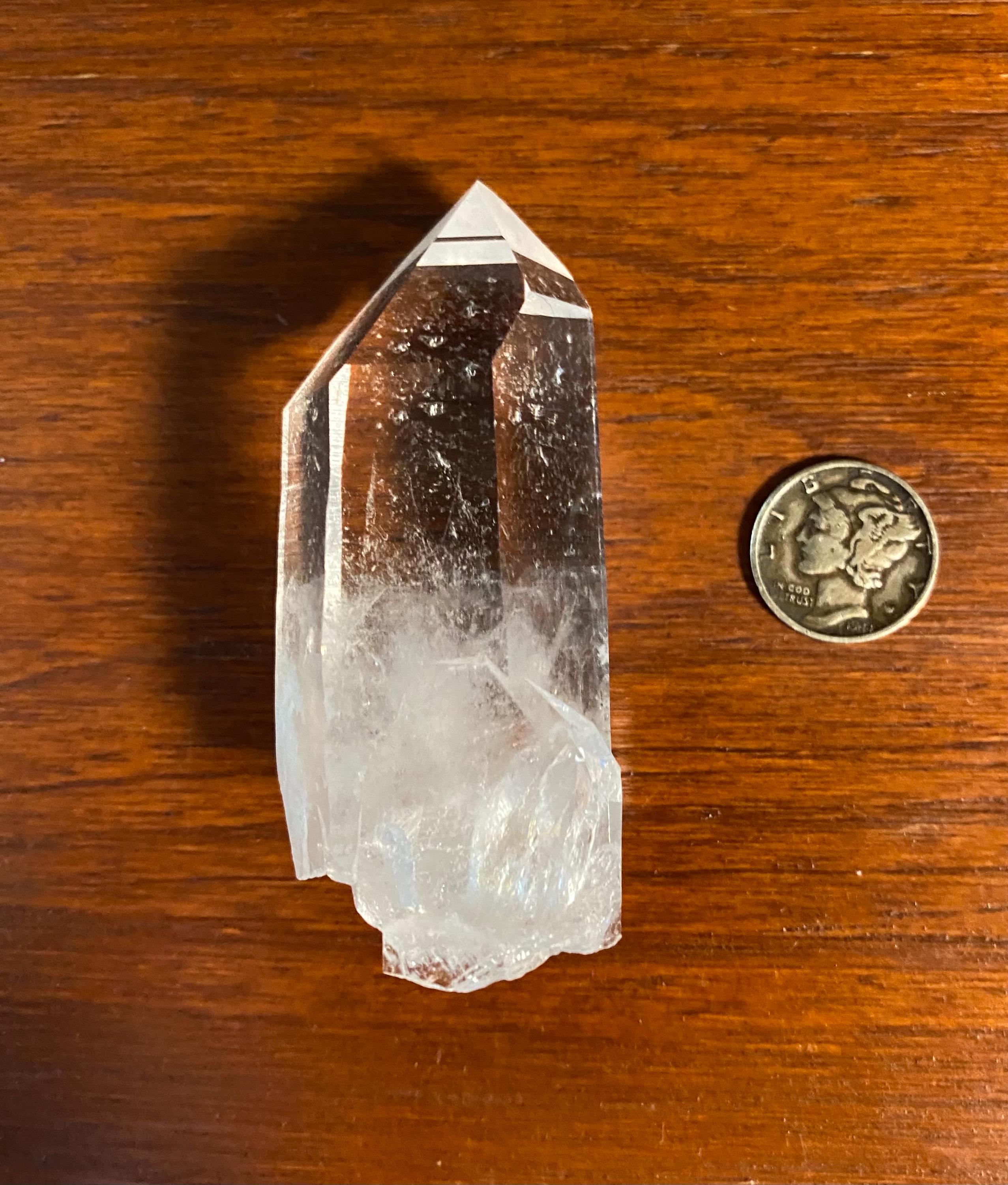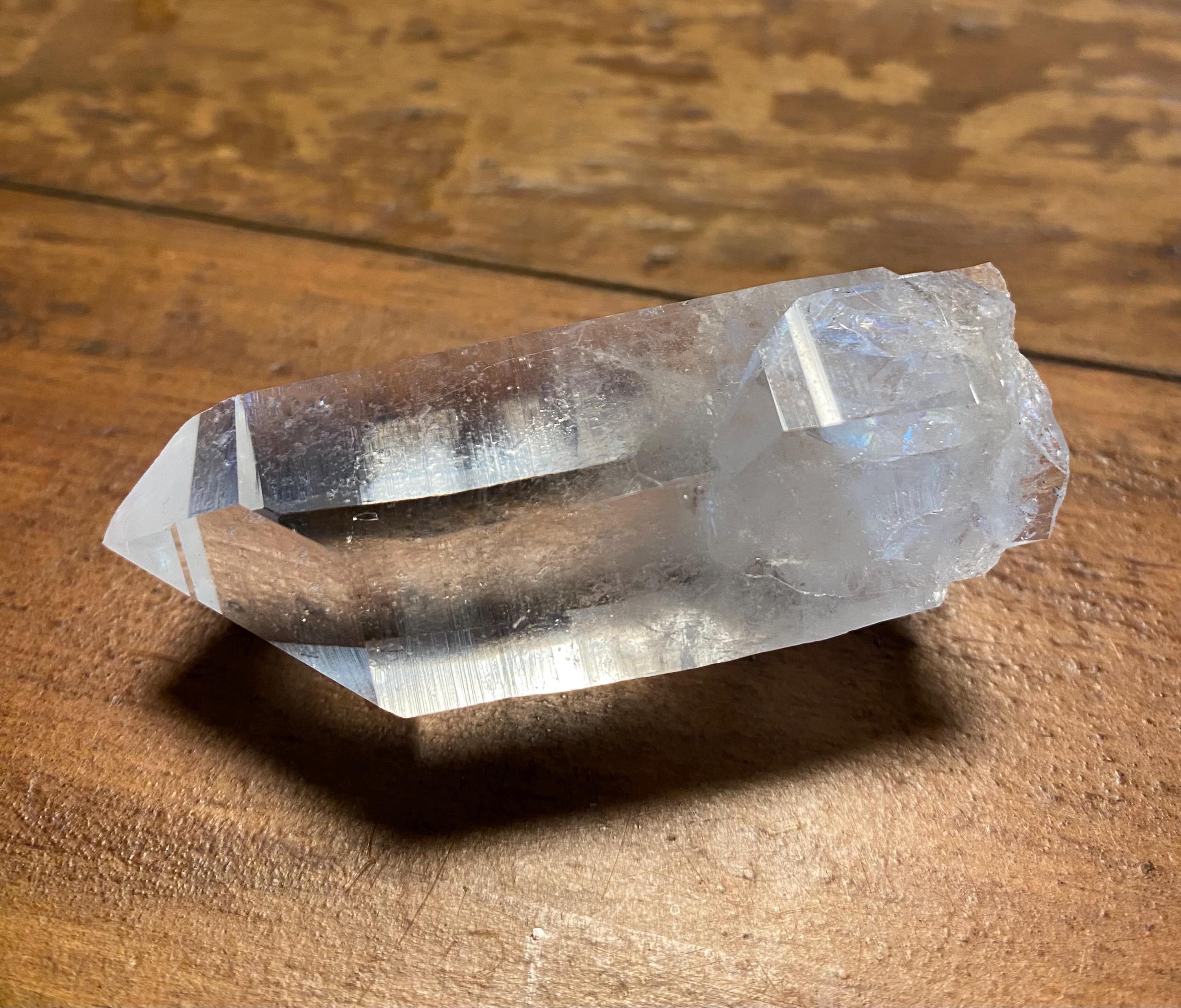 A beautiful semi-polished Quartz crystal from Arkansas with a gorgeous shape, a base Bridge crystal, and swirling front in the base.