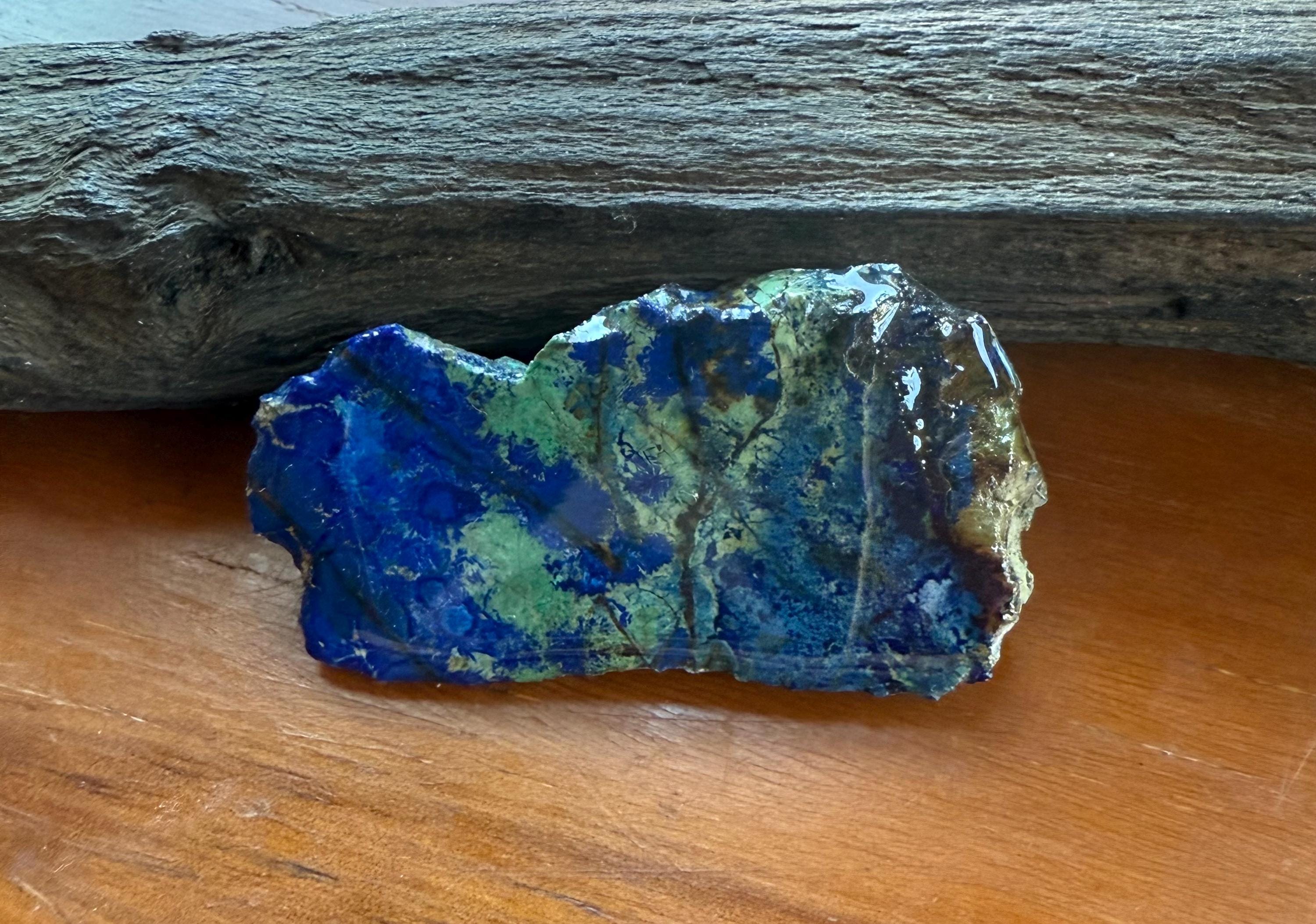 This is a gorgeous small slab of Azurite-Malachite, polished on one side.