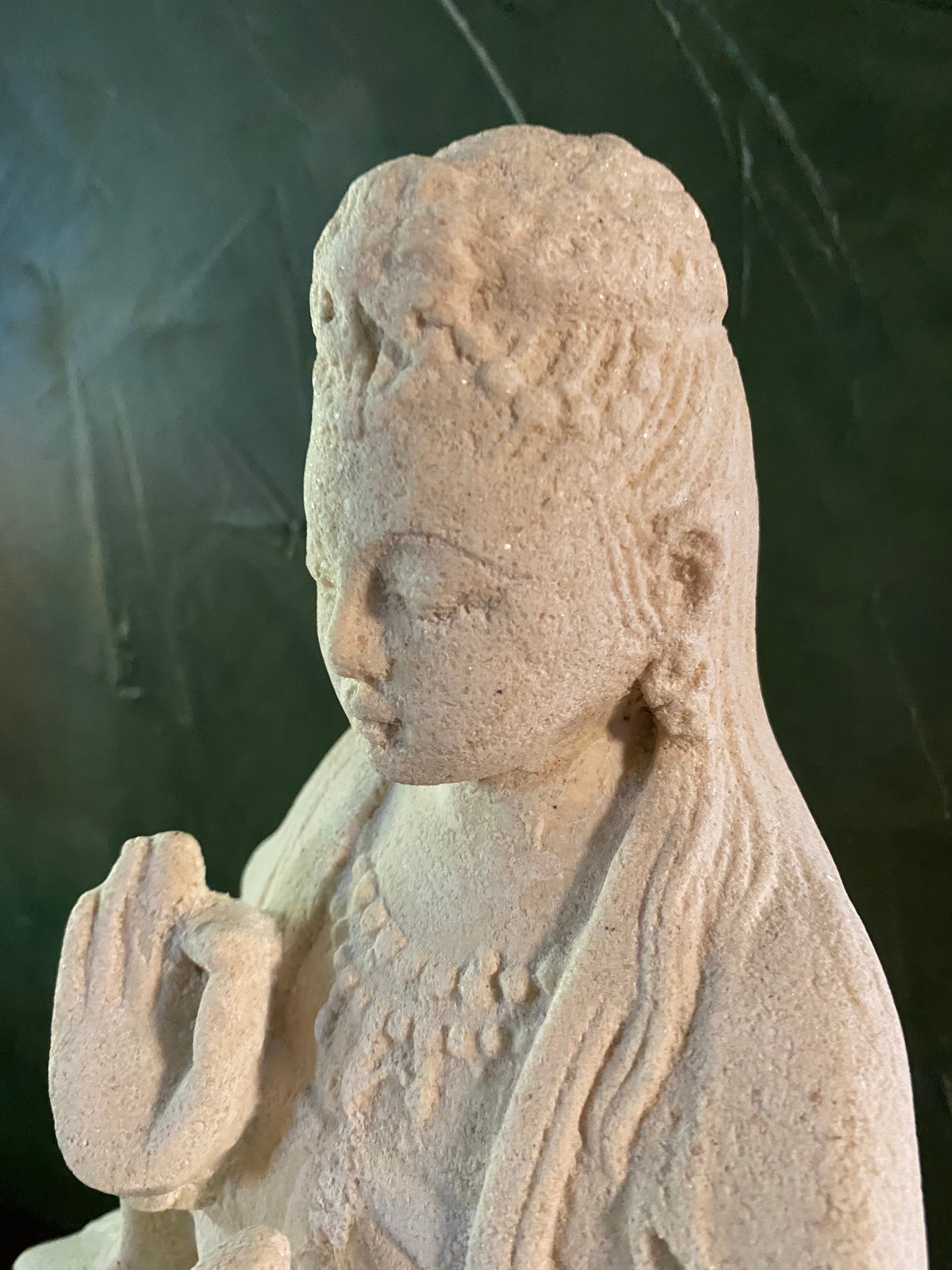 Details are muted in this statue due to the nature of the stone.