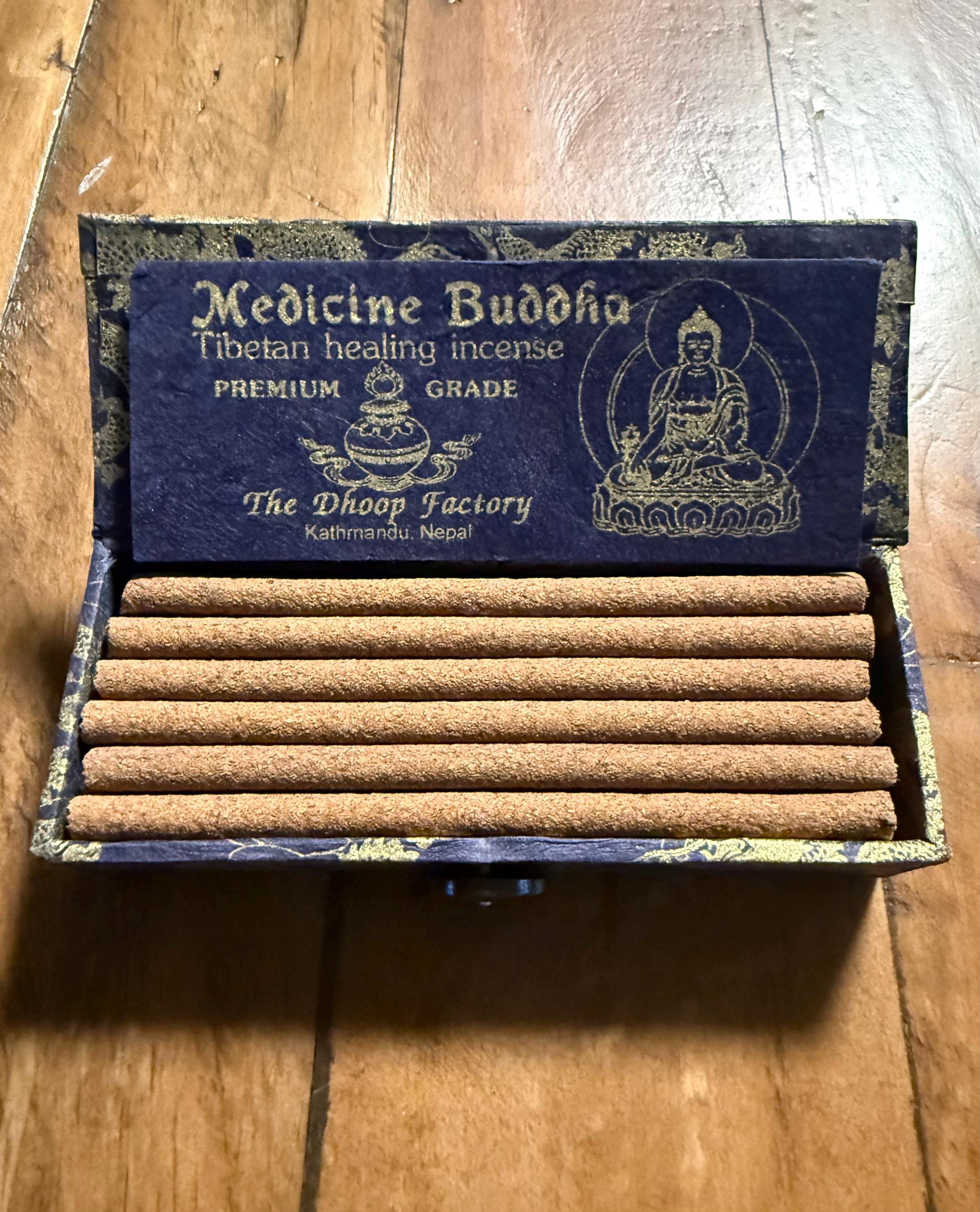 4. MEDICINE BUDDHA - a traditional Tibetan medical recipe containing 31 ingredients. It is used to assist with stress, anxiety, or depression. Helps with insomnia and nervous exhaustion. The ingredients have been purified according to medical requirements and the sticks can even be eaten as a medicine. They can also be crushed and mixed with massage oil as a balm.
