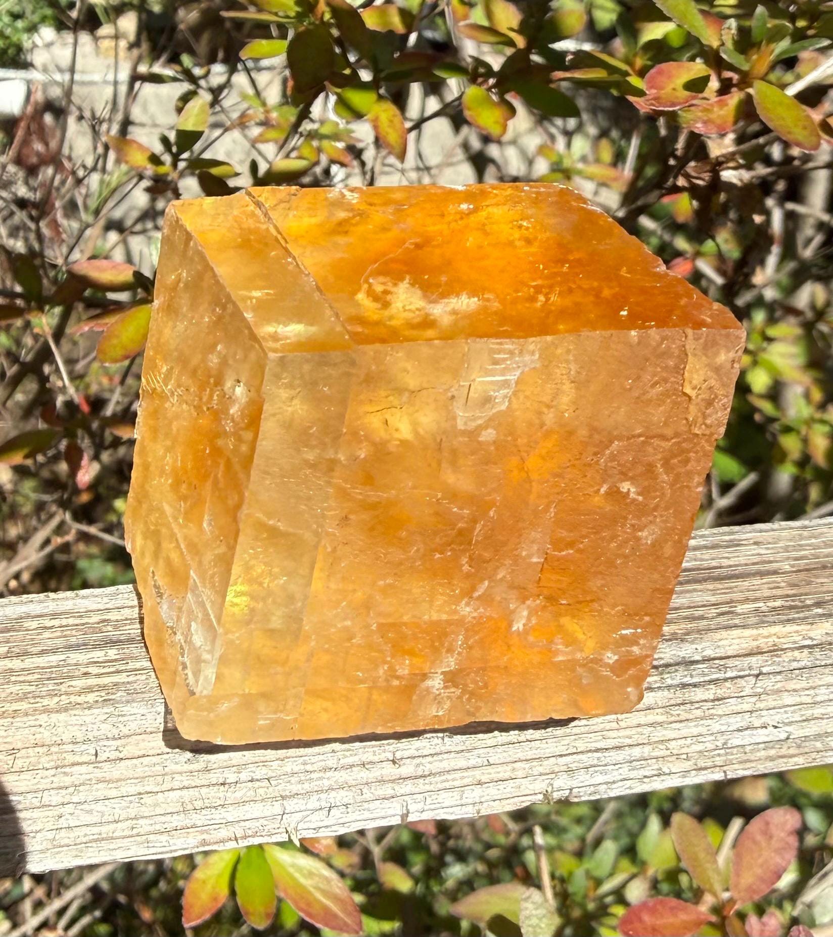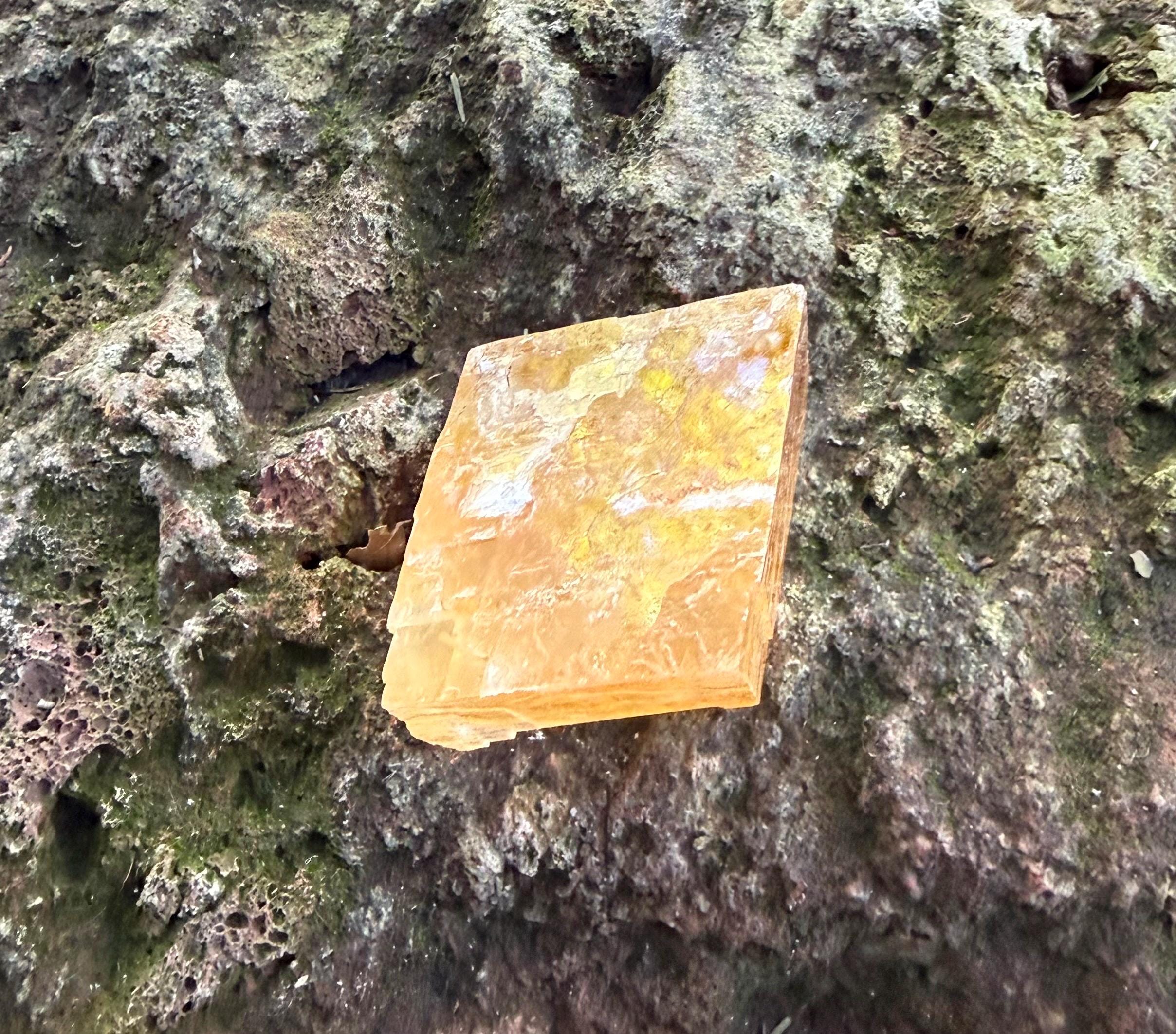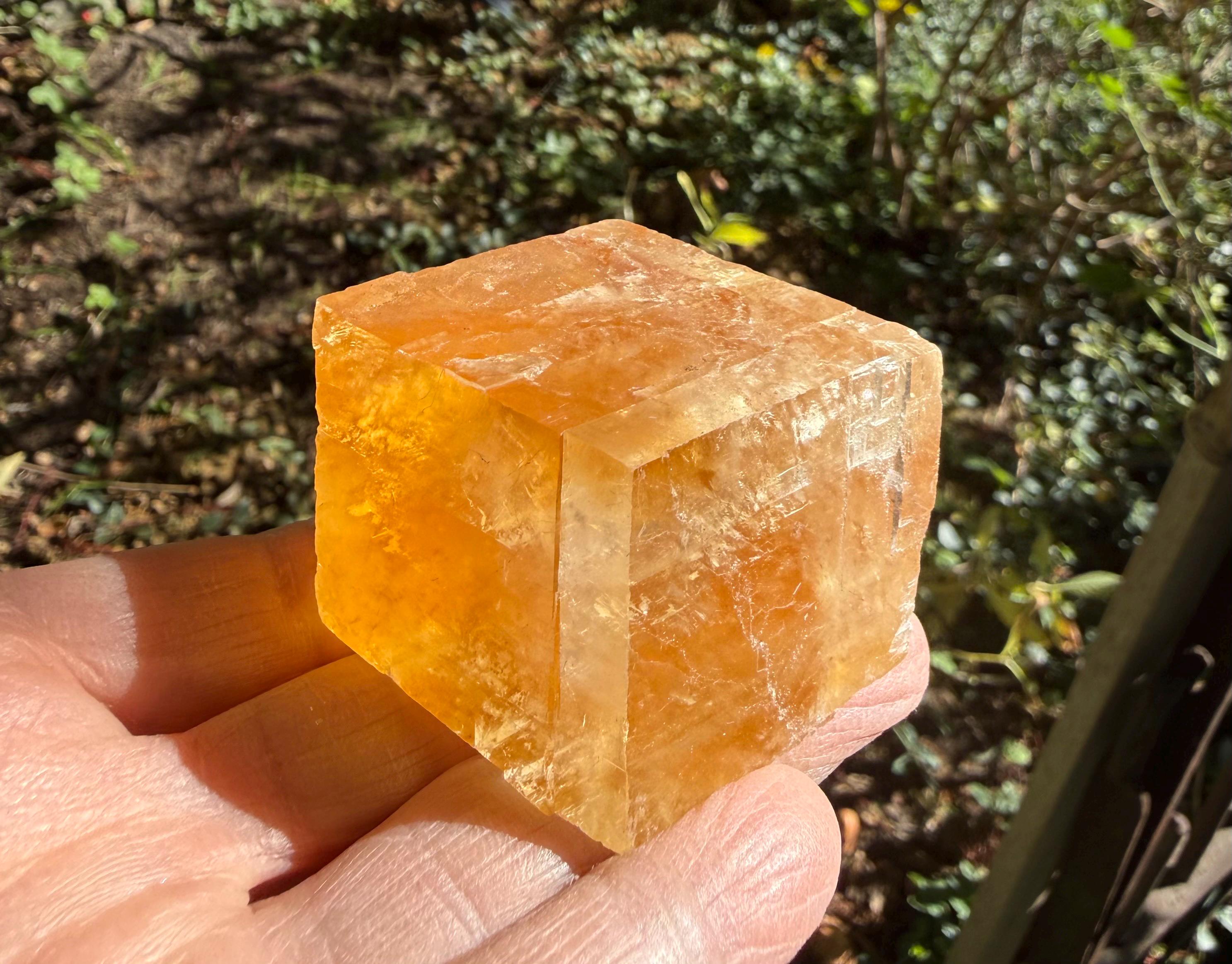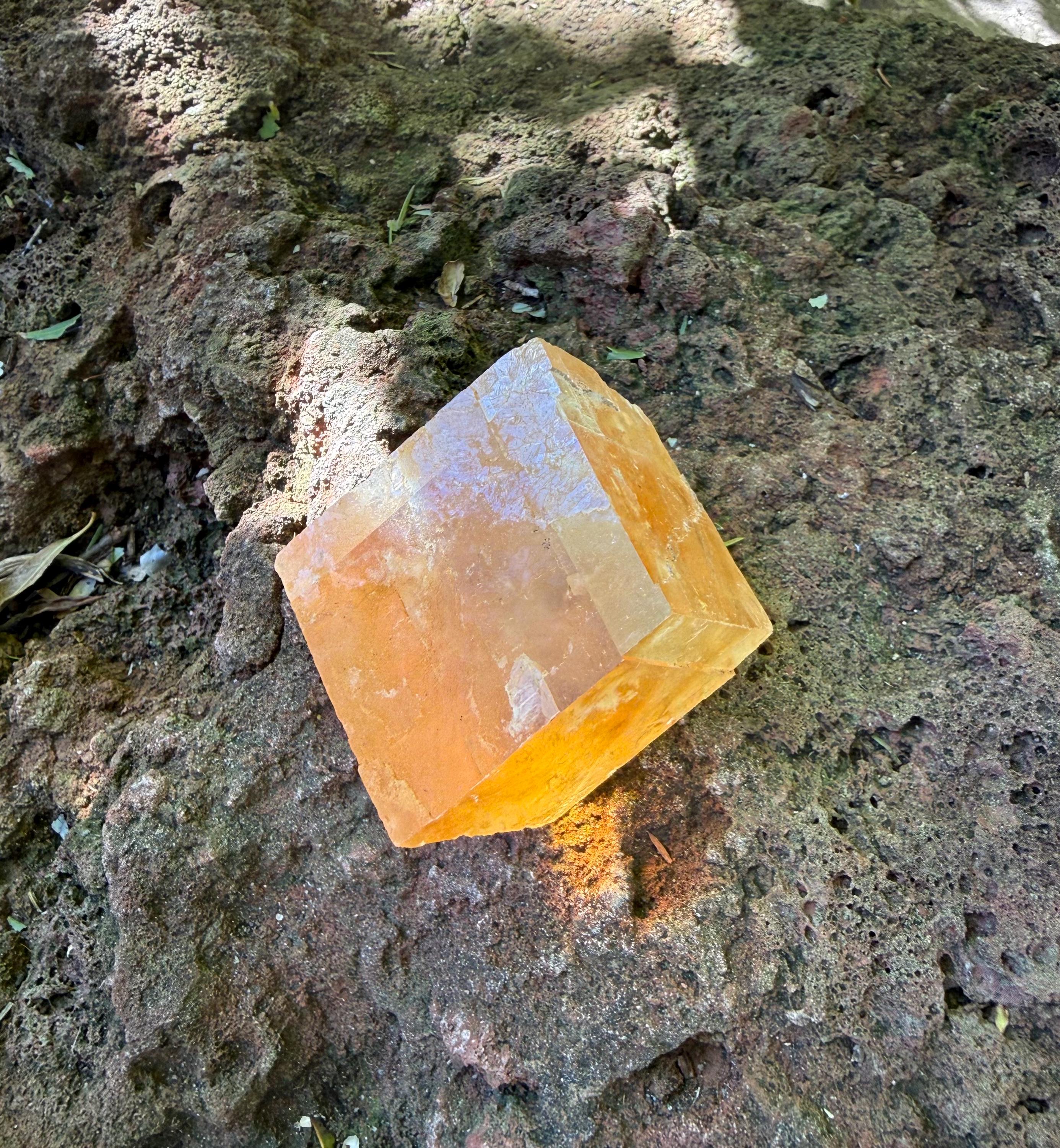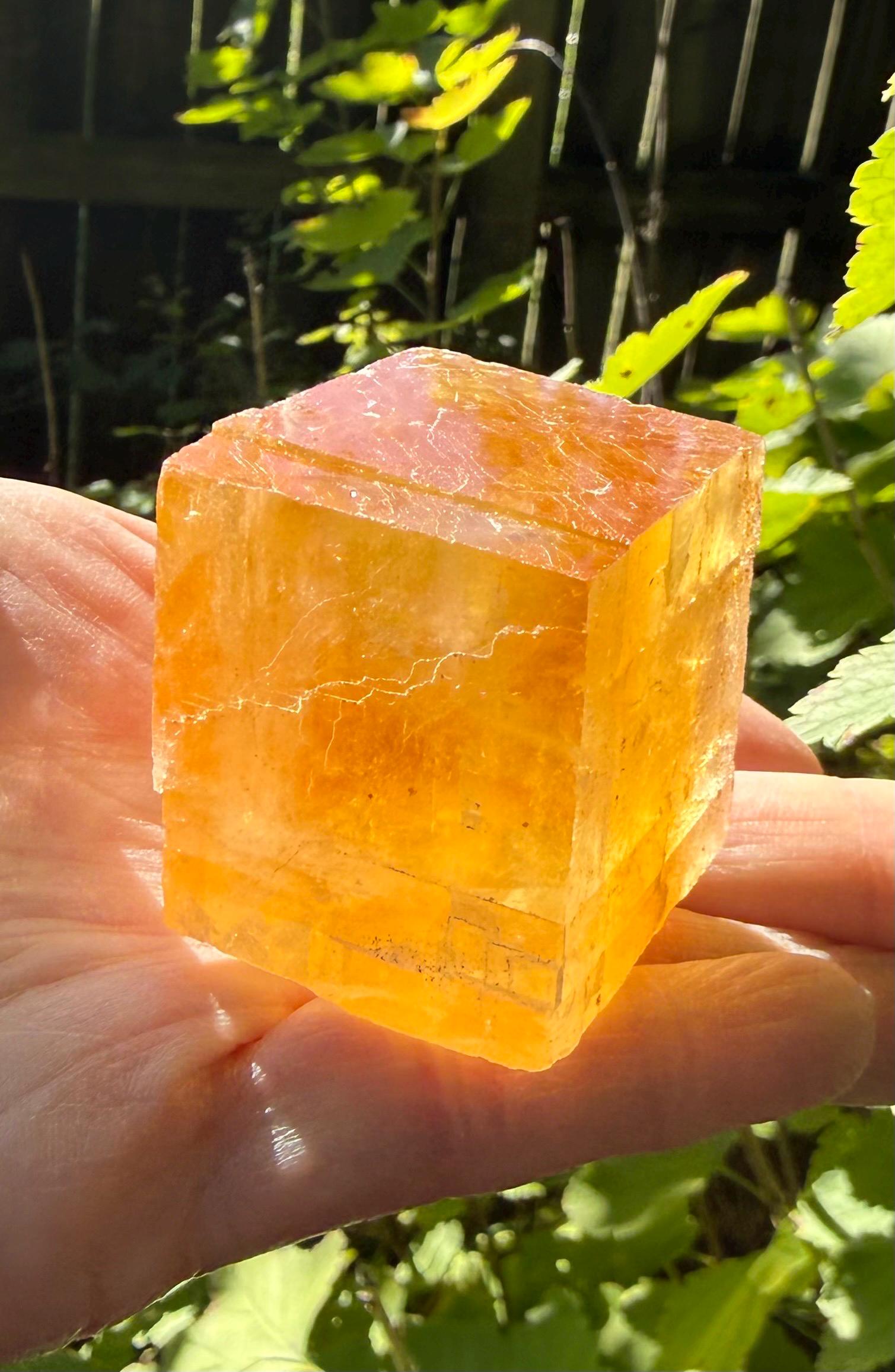 This is a beautiful, deep golden Amber Calcite from China with beautiful iridescence, and a propensity to gather and hold light.