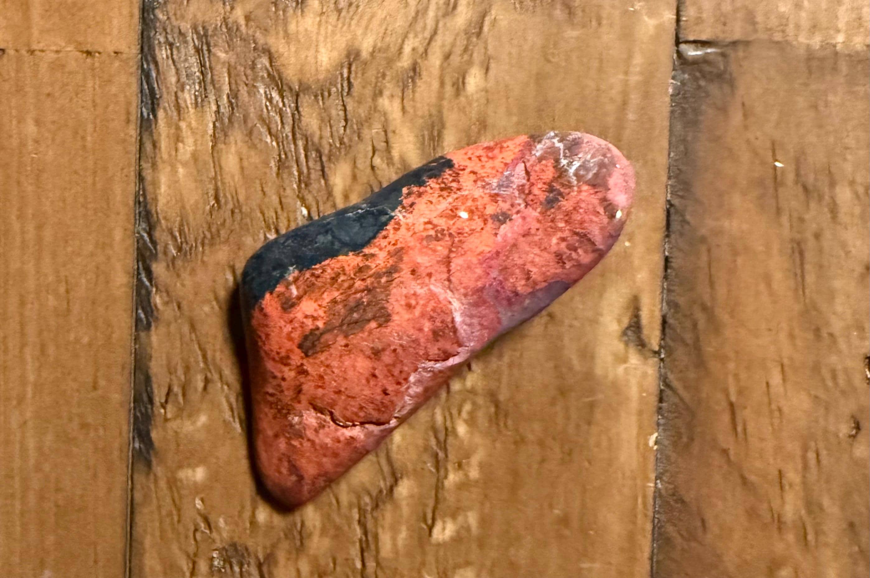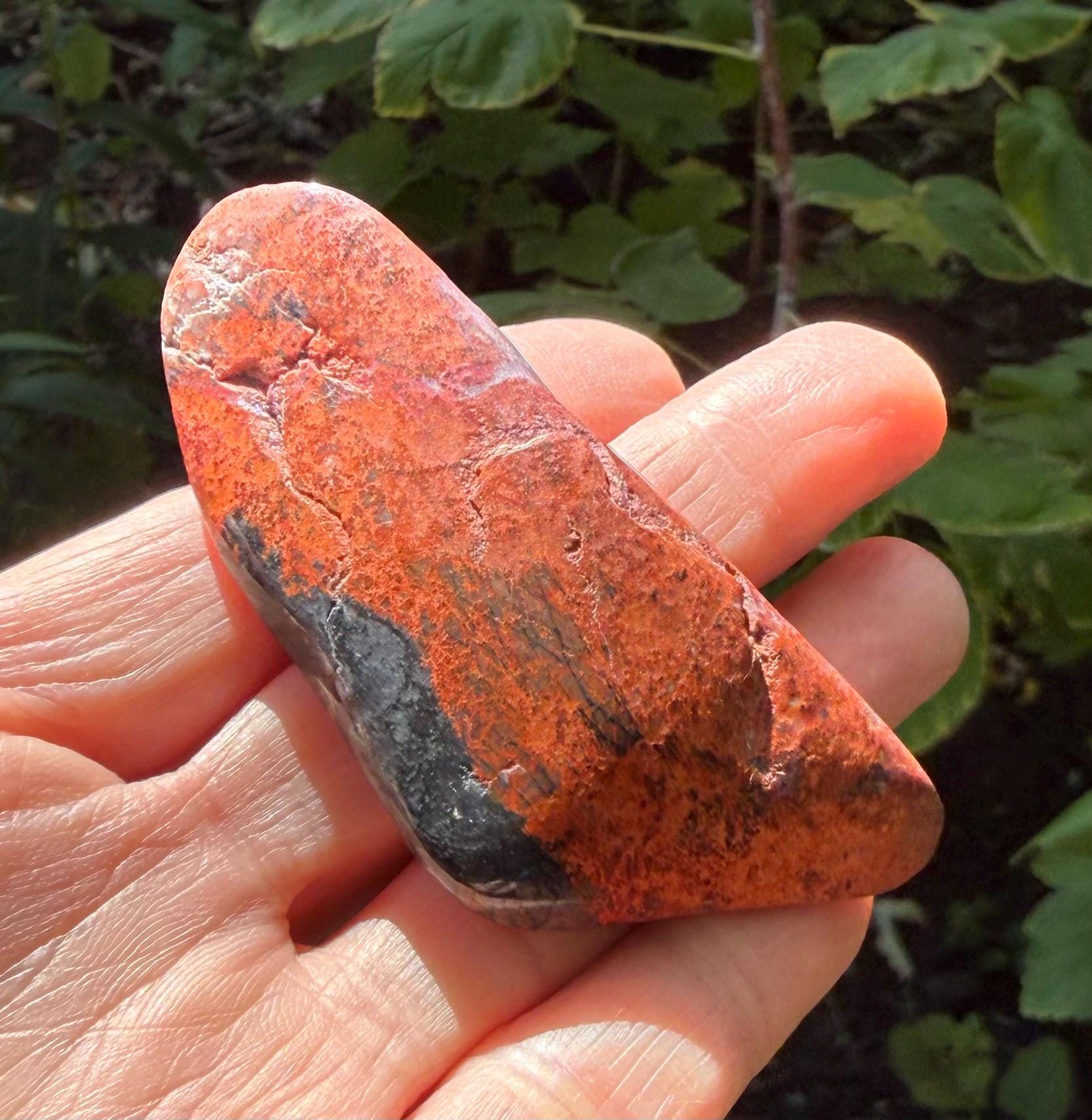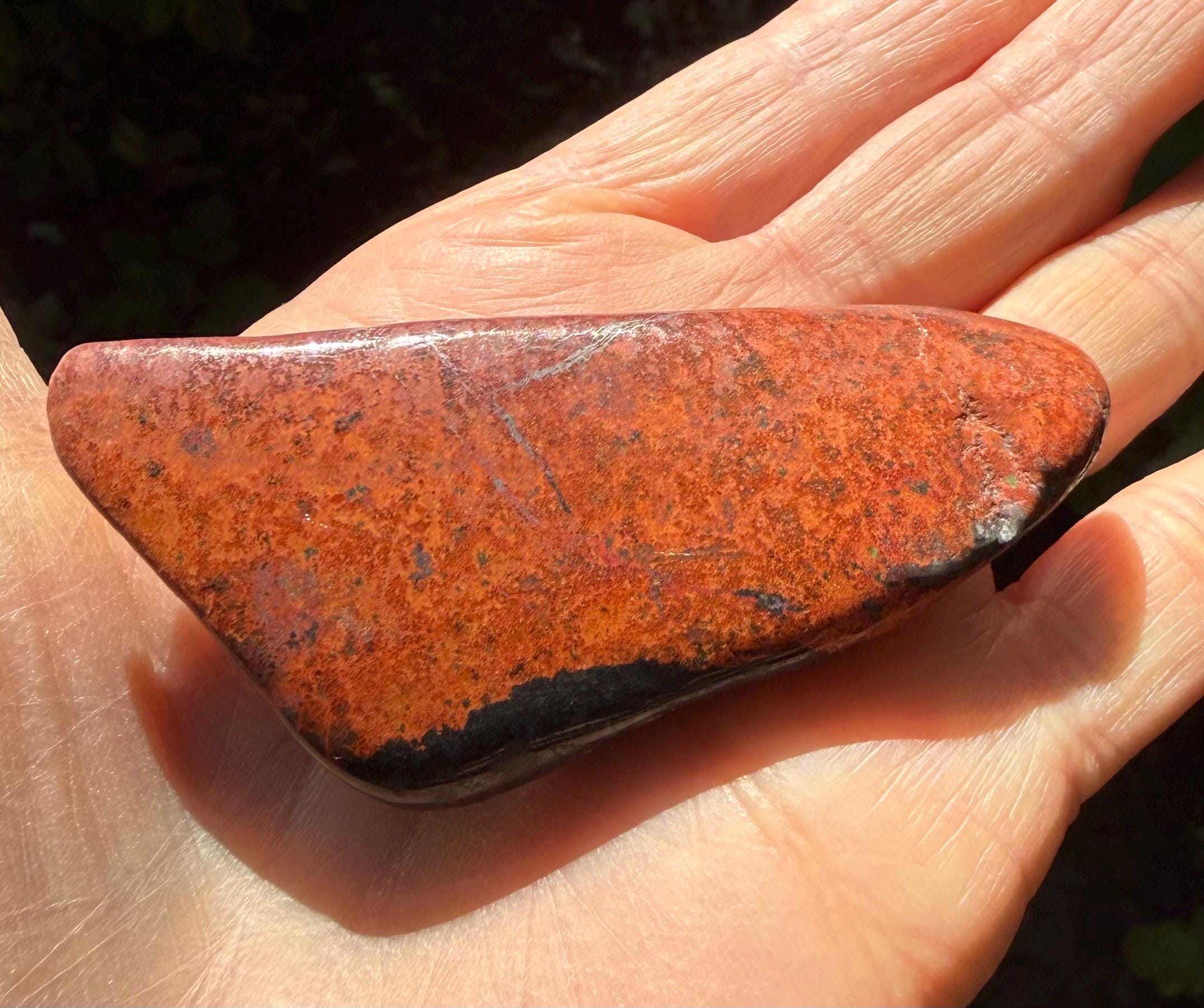 This is a beautiful Crimson Cuprite freeform and polished palm stone.