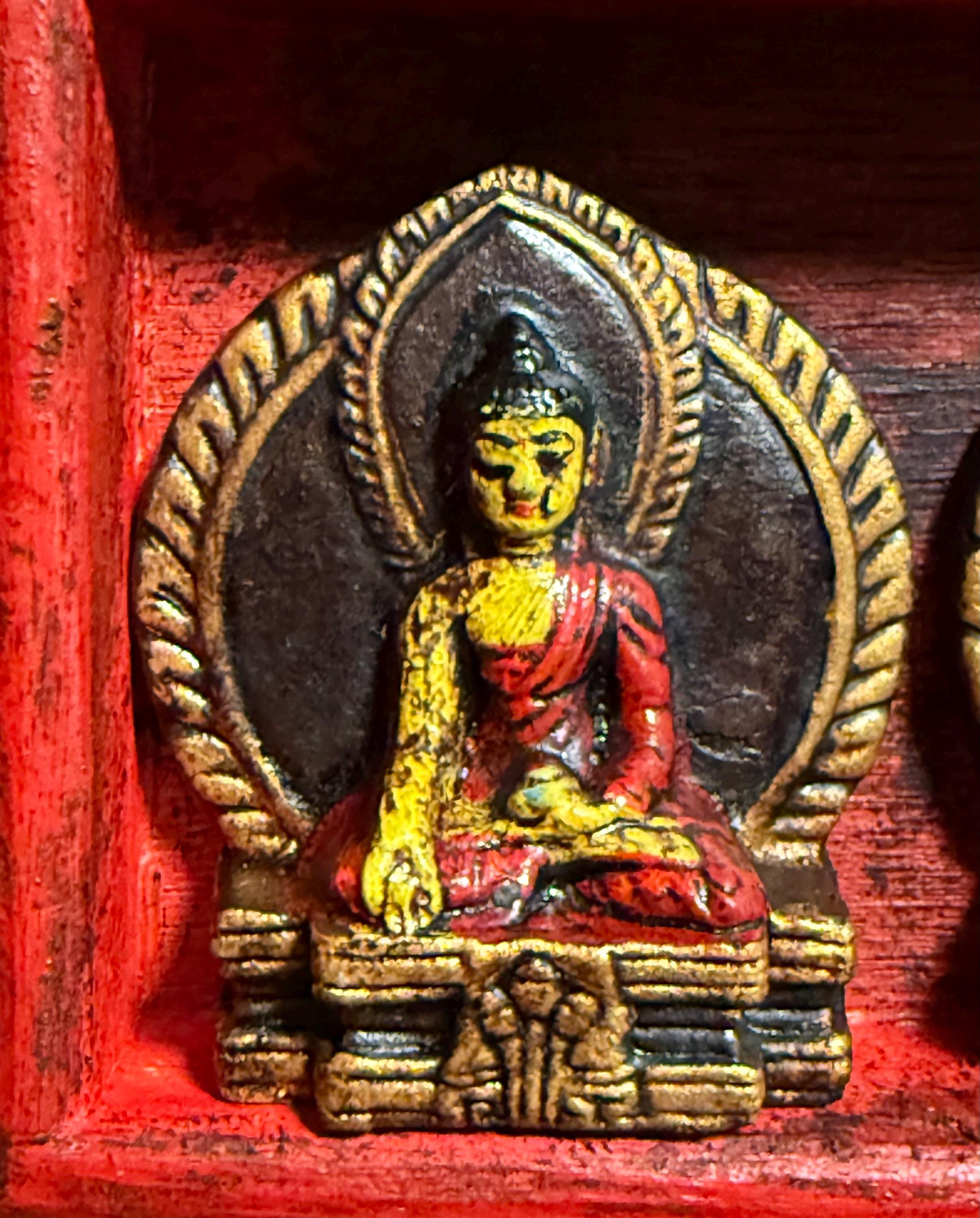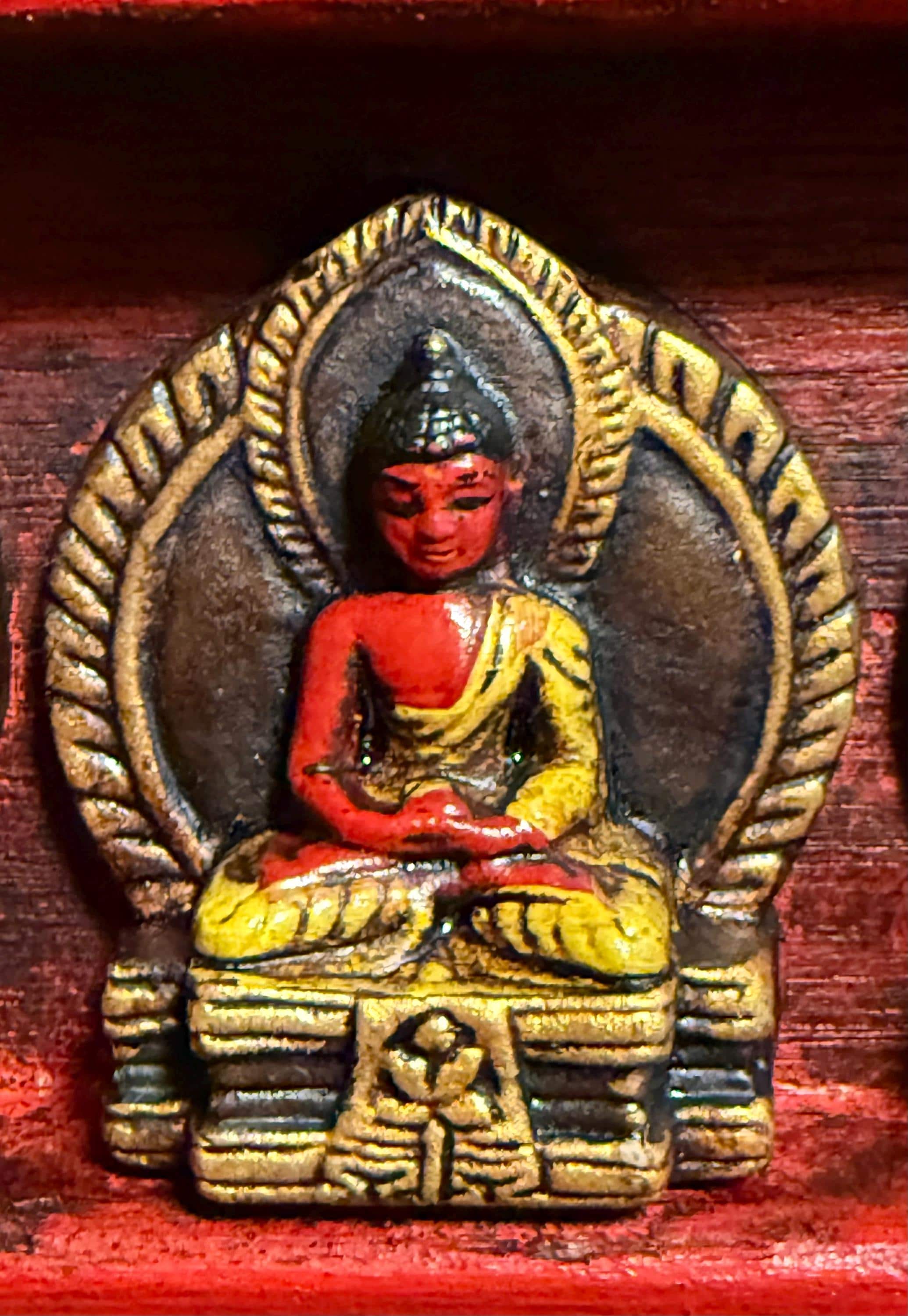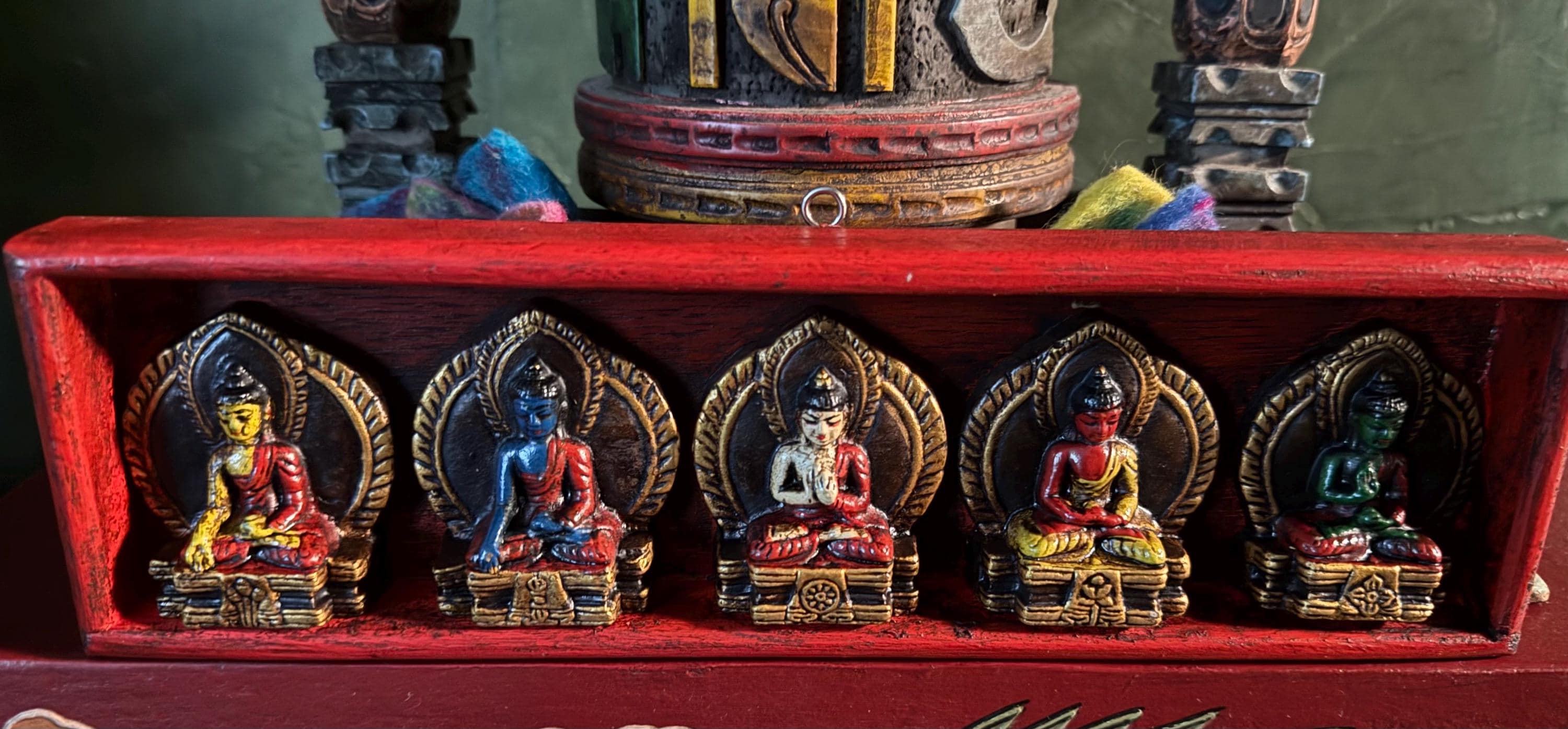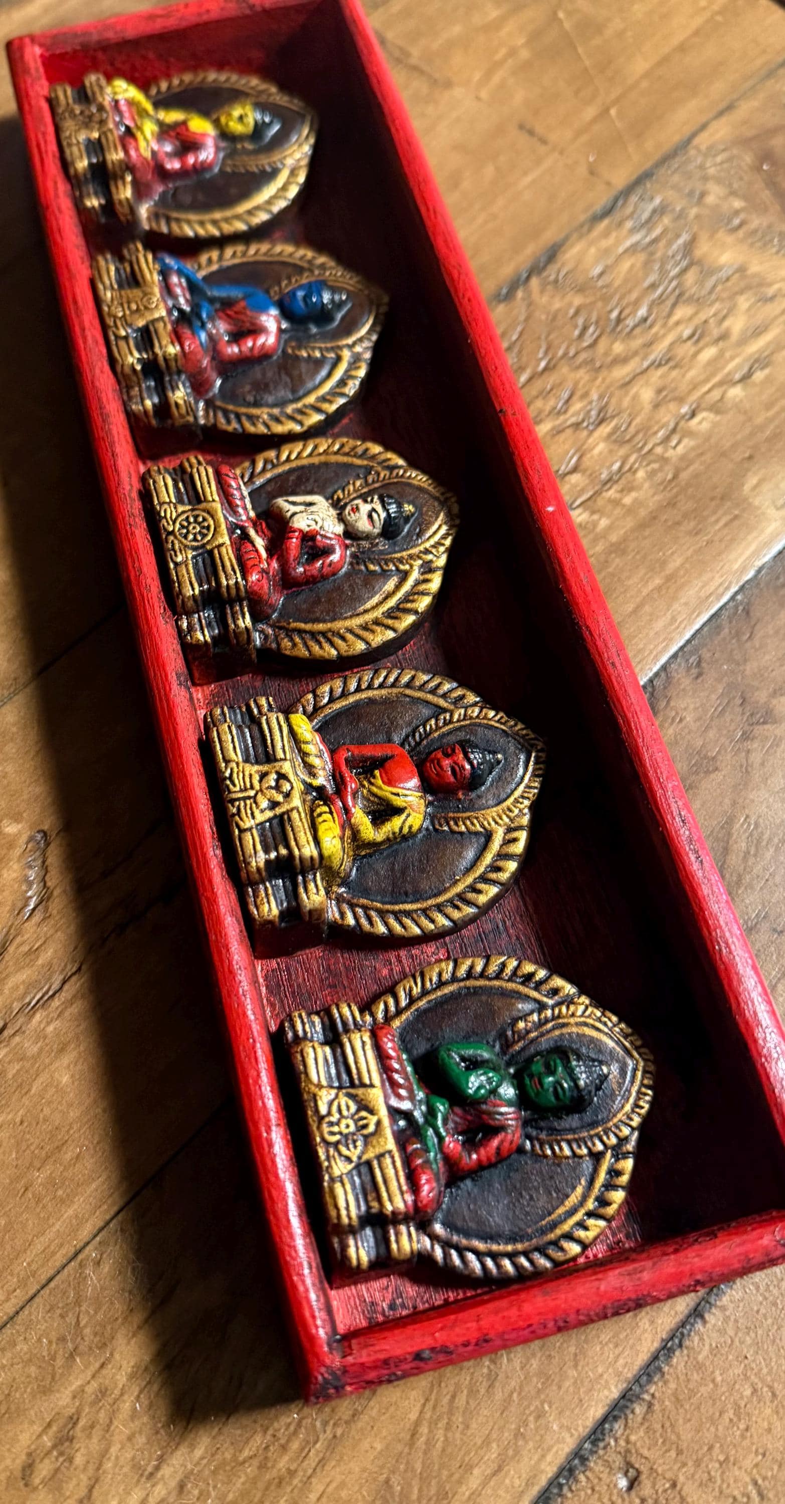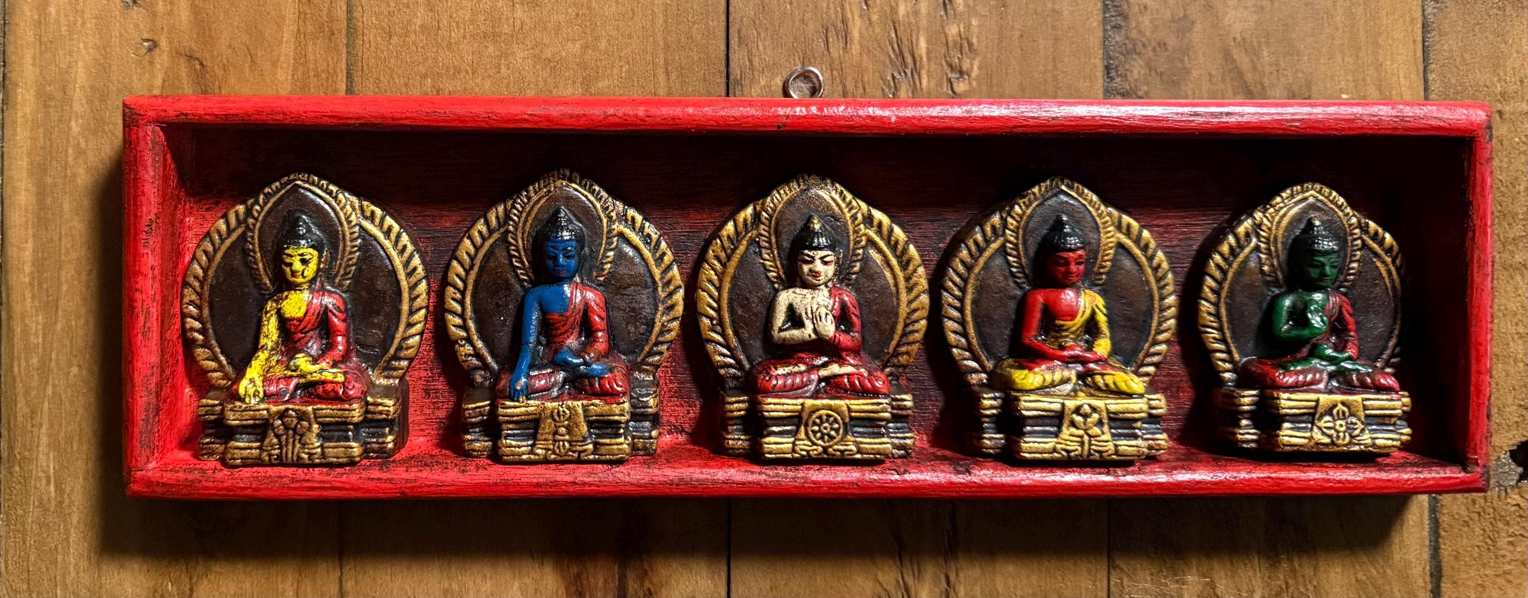This beautifully handcrafted Wooden Pancha Buddha Door Hanging Plaque is skillfully carved and hand-painted in Nepal, making it a meaningful piece of spiritual and cultural art.