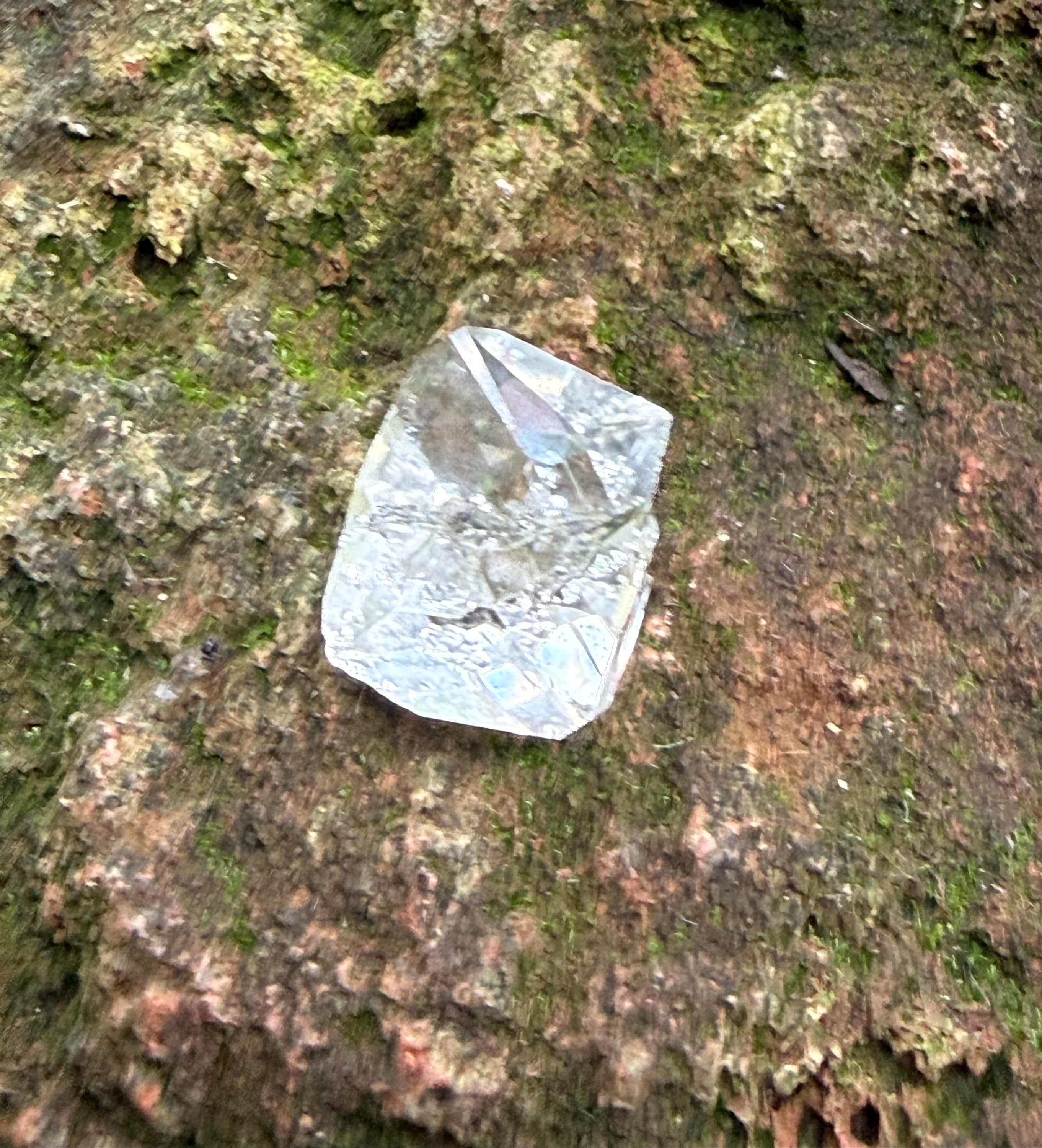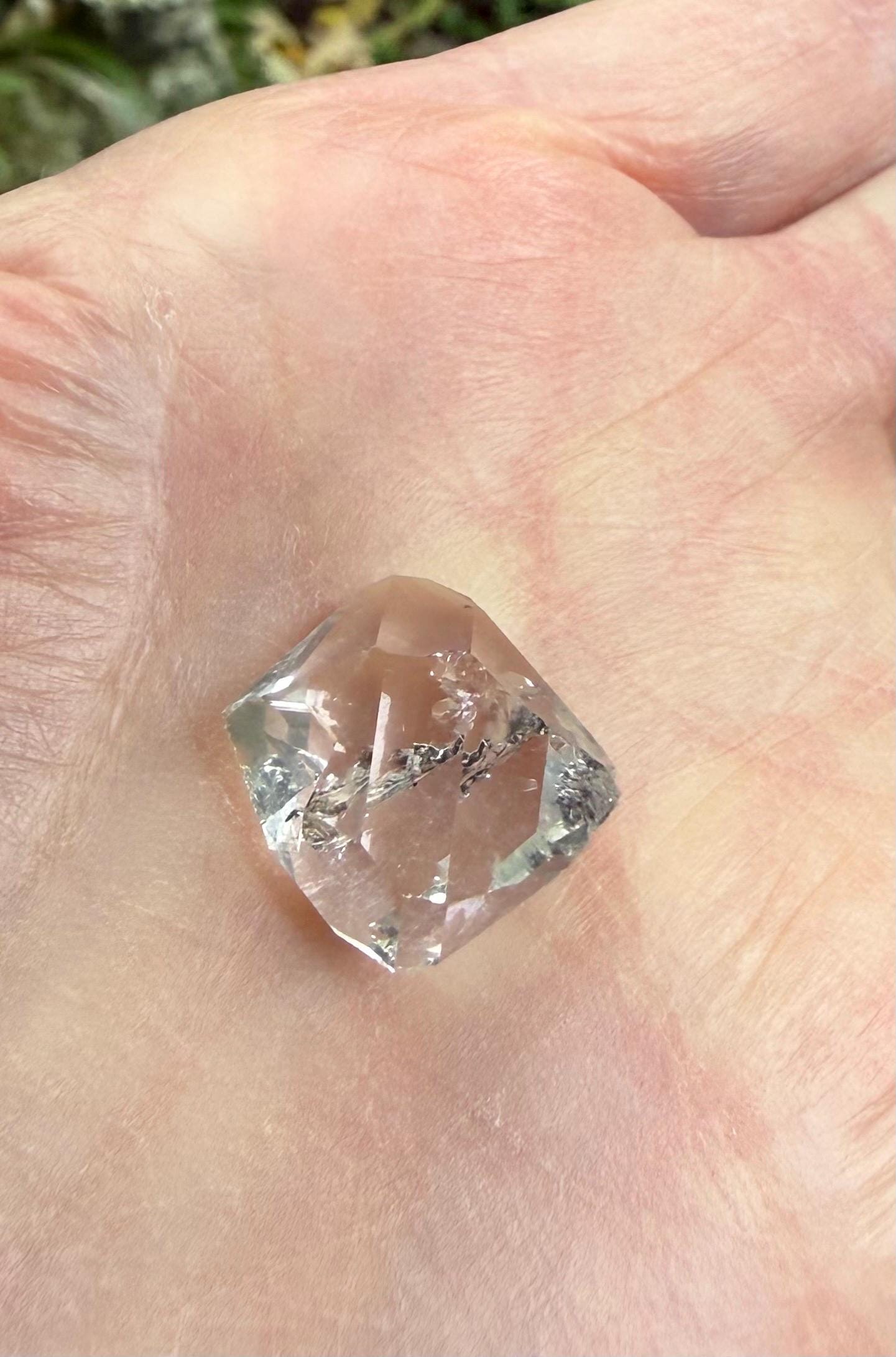 This is a stunning raw and mine fresh, tiny double terminated Herkimer diamond from New York with a nice key on one end and sparkling silver veils.
