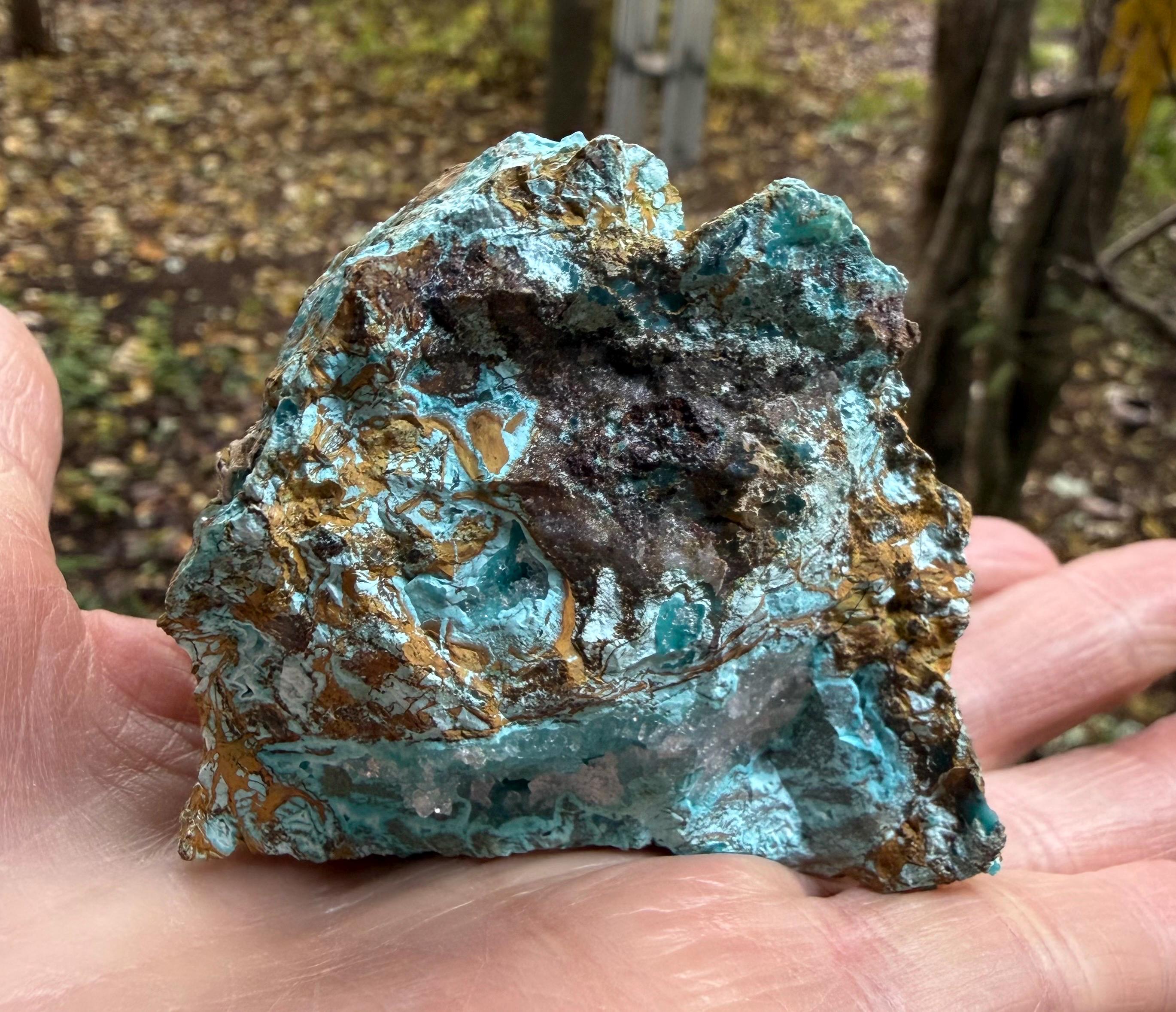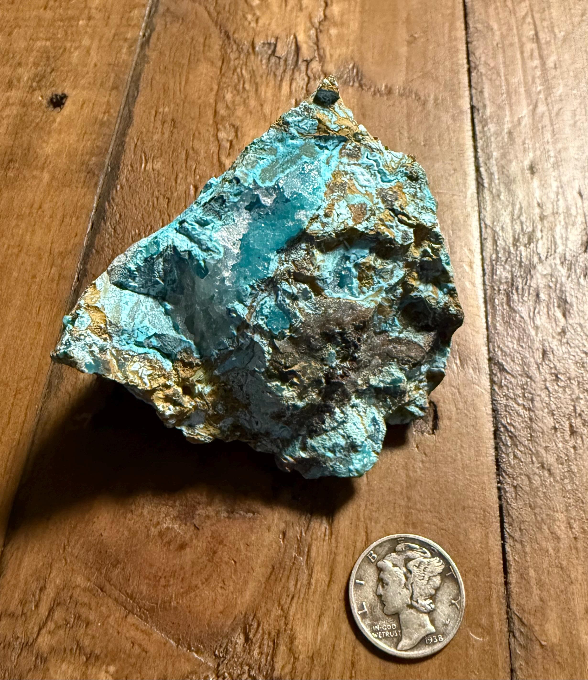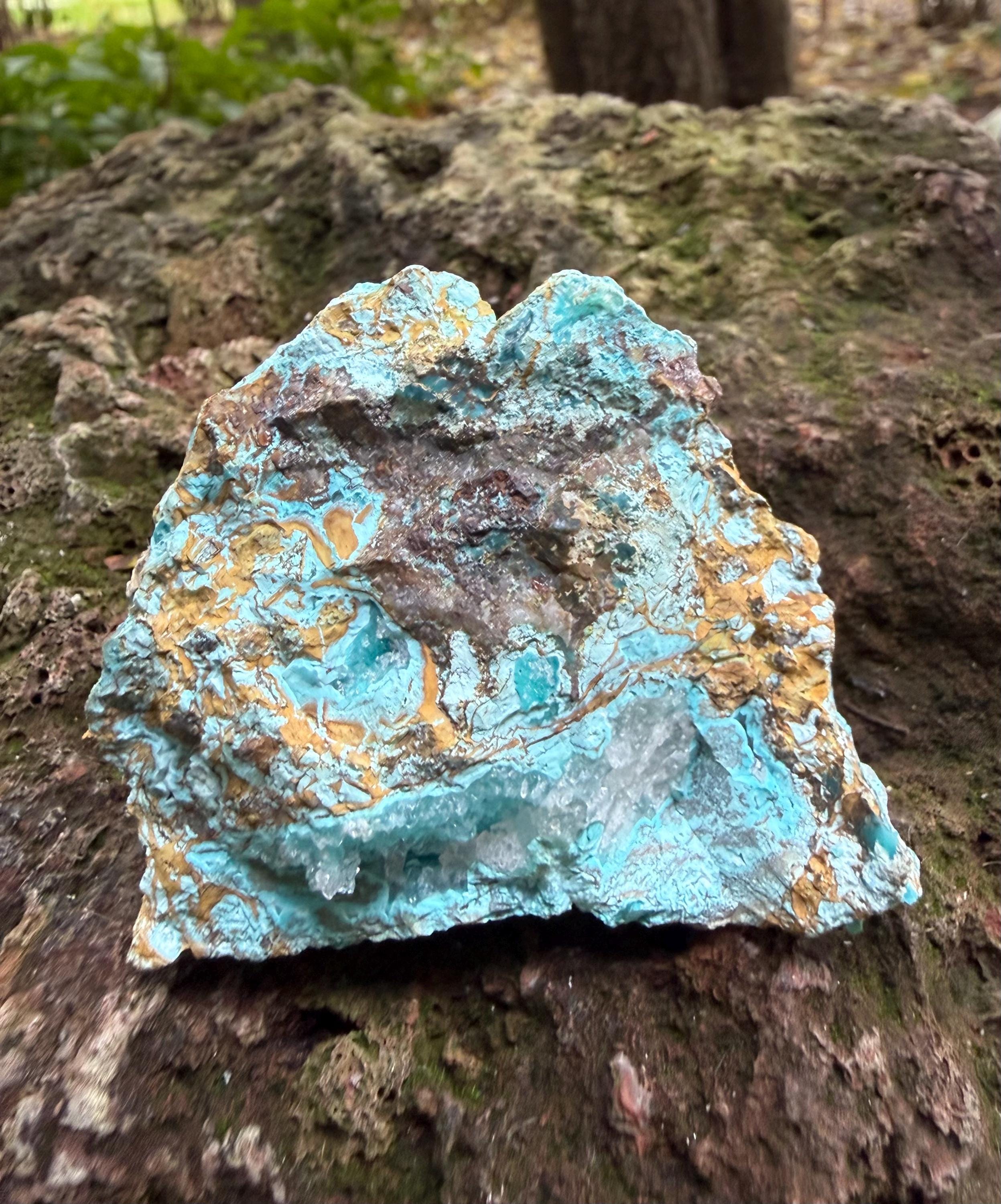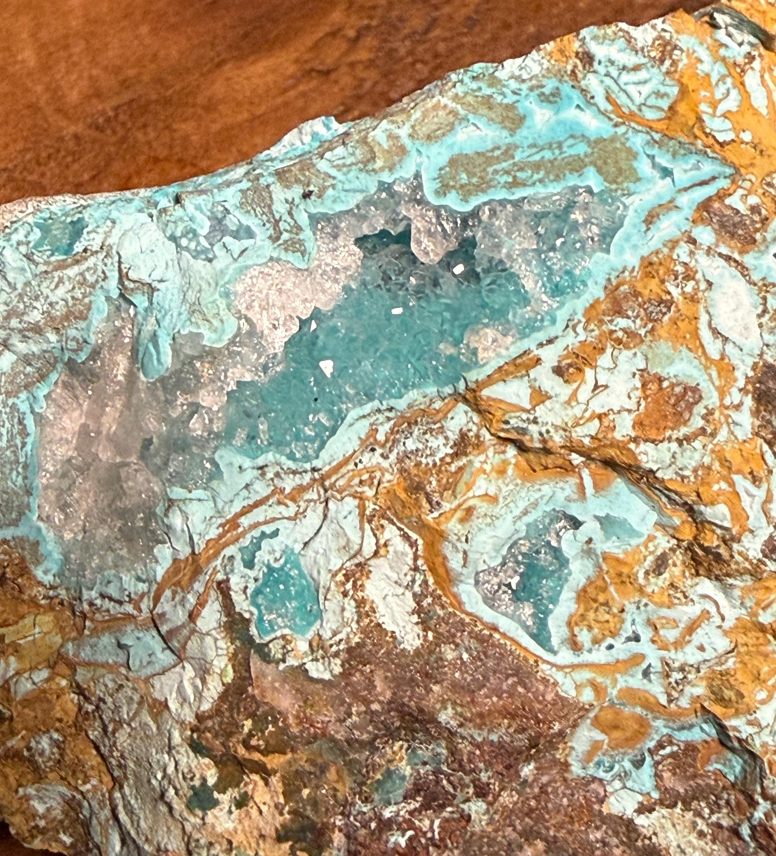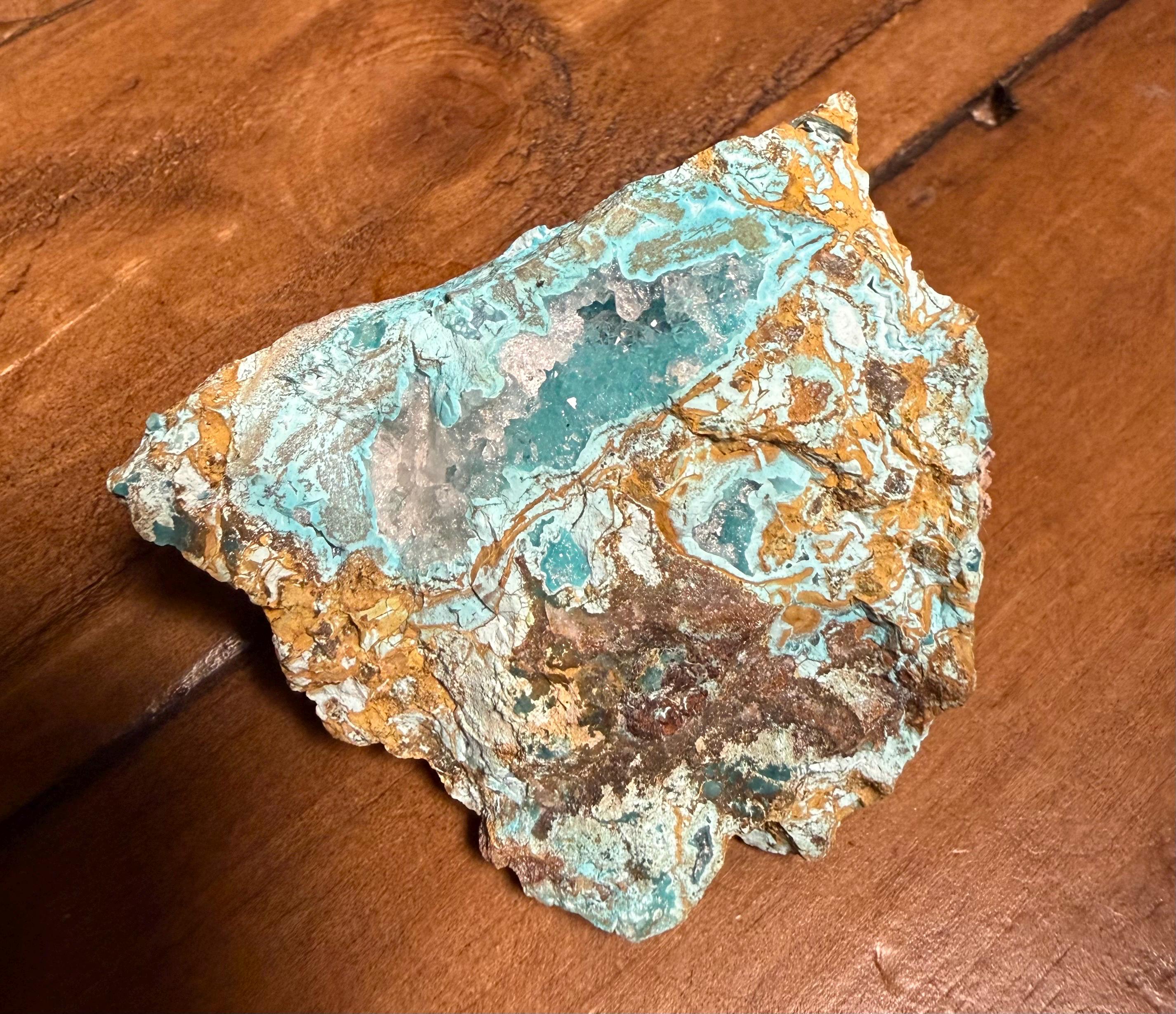 This is a gorgeous specimen of druzy Chrysocolla and Quartz on its original matrix.
