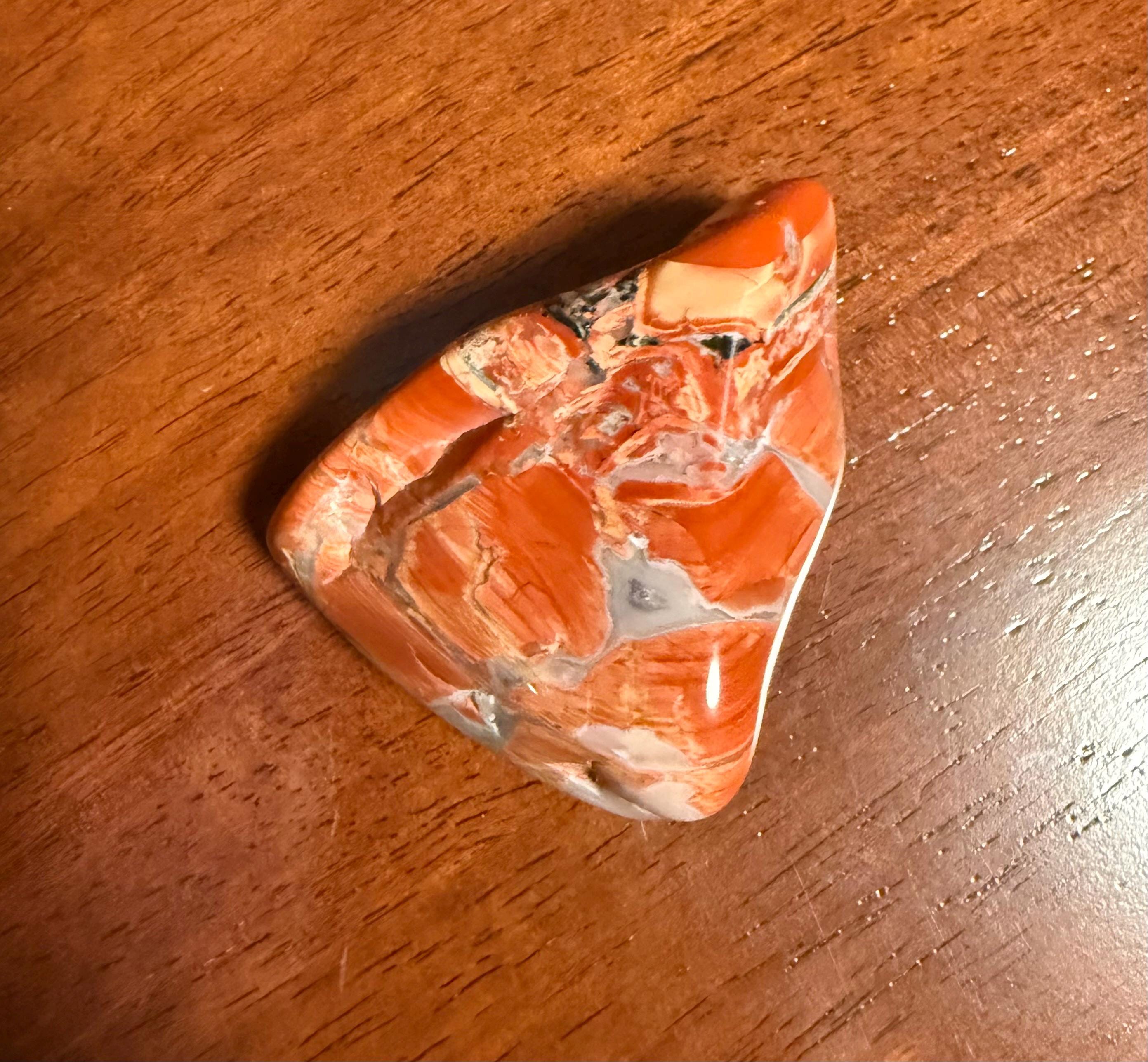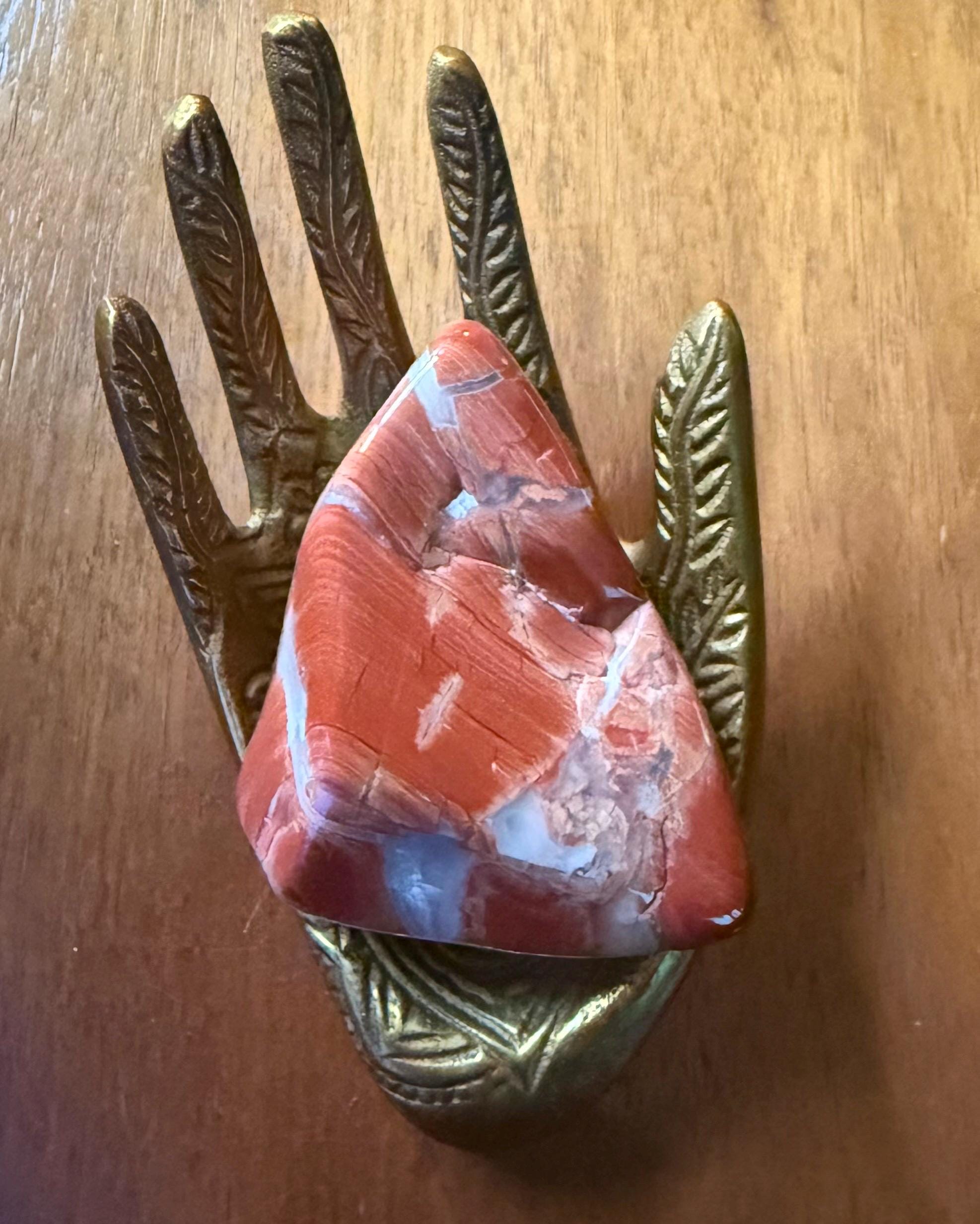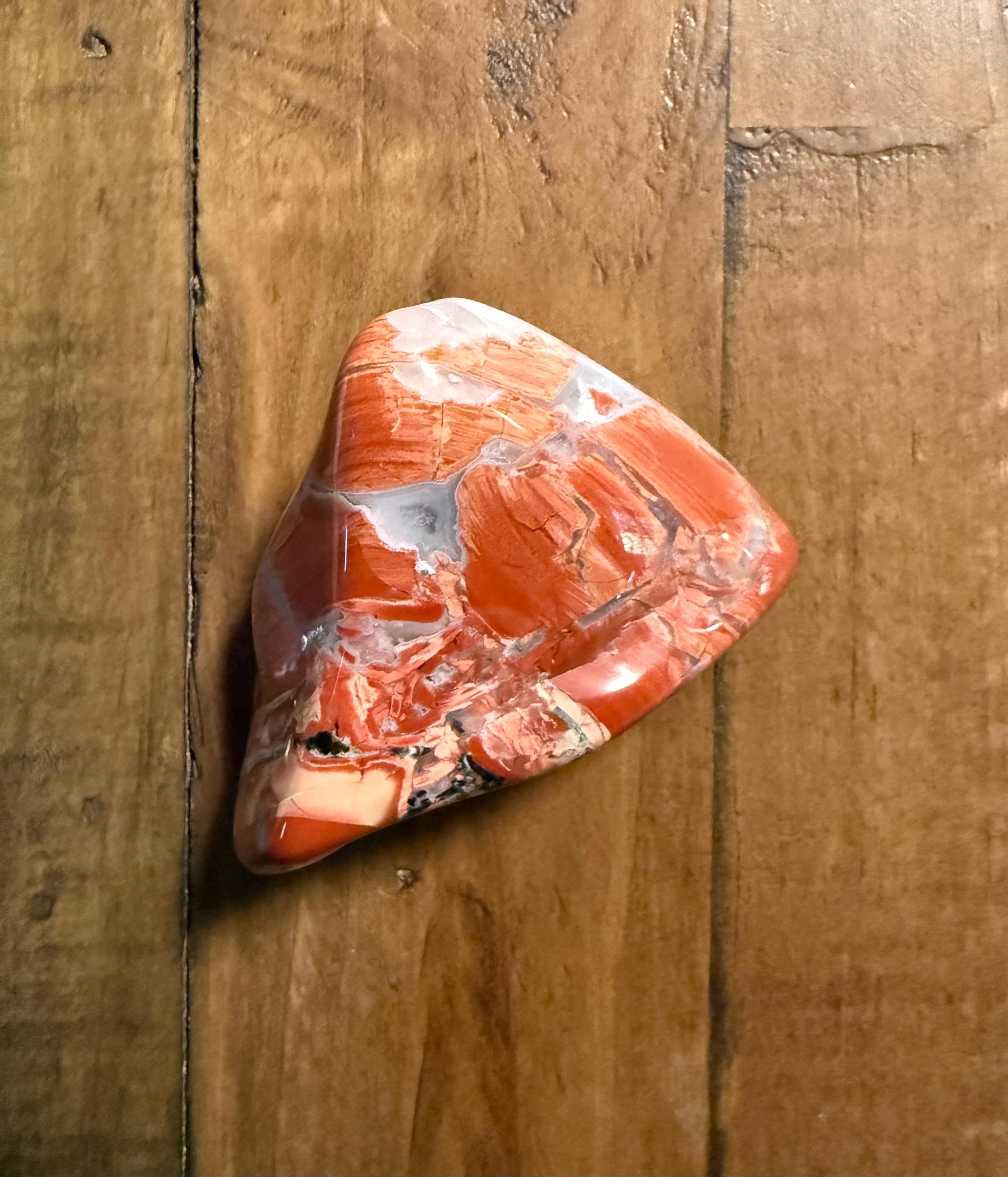 This is a beautiful Red River Jasper polished, freeform palm stone from South Africa.