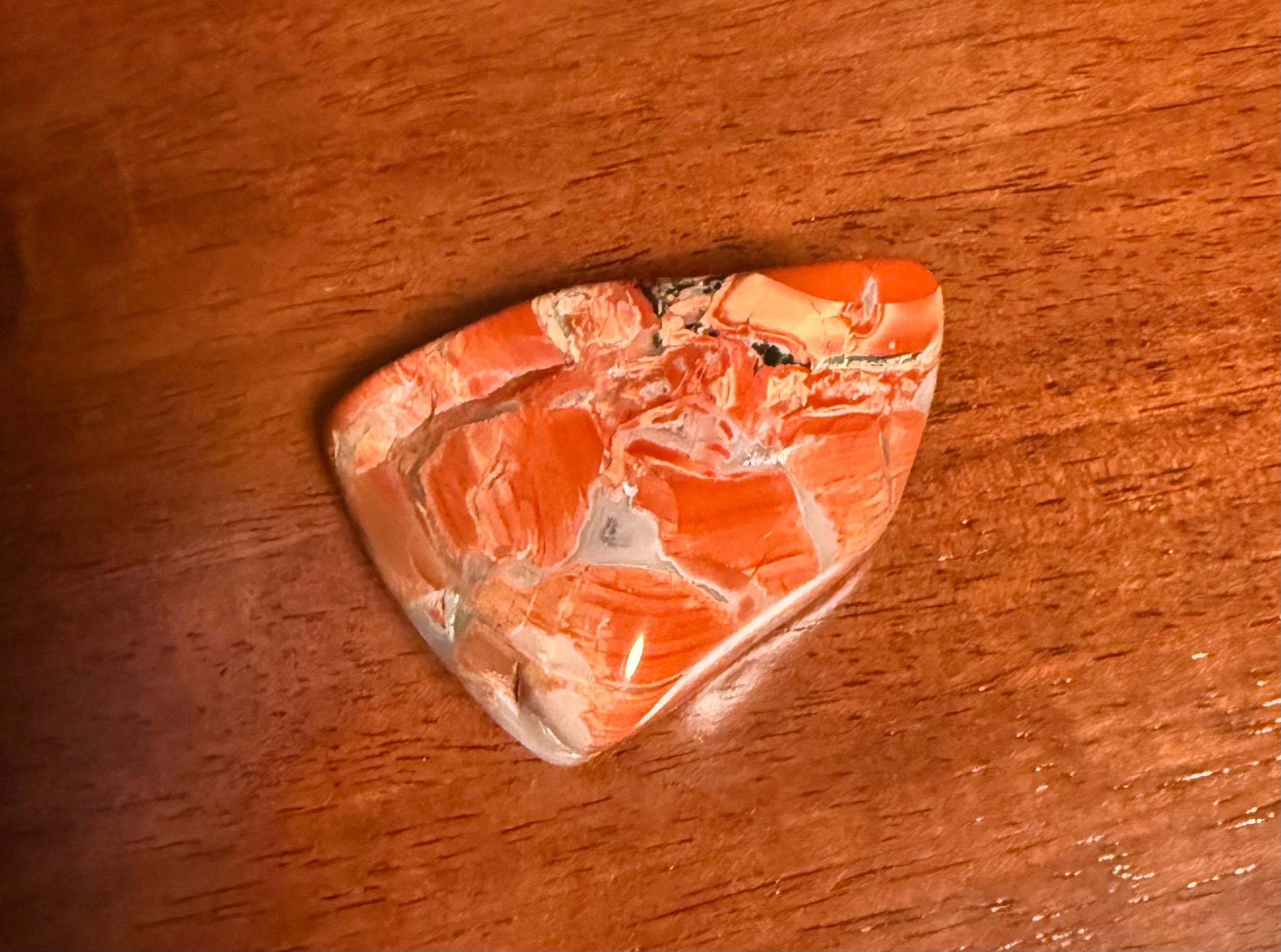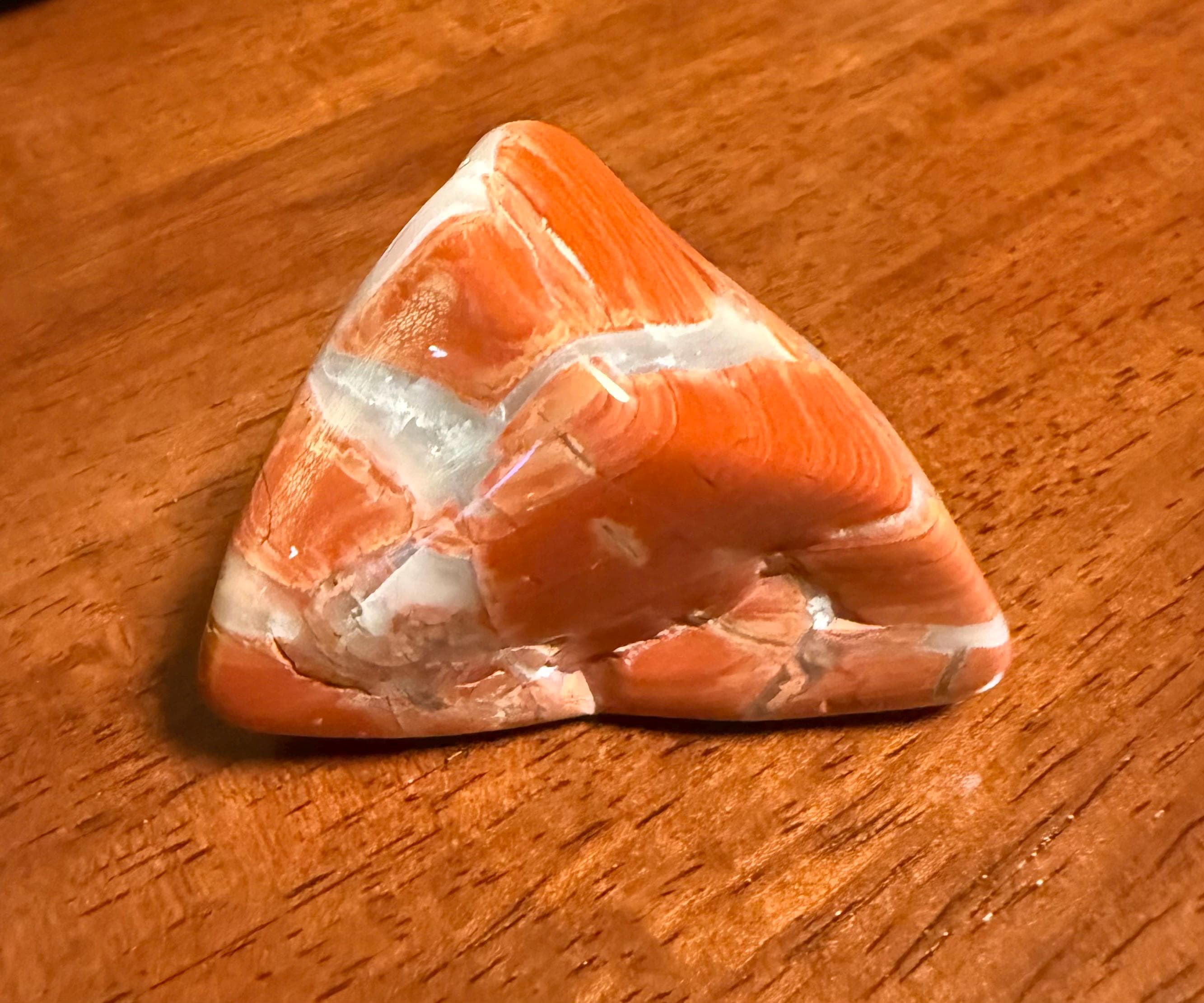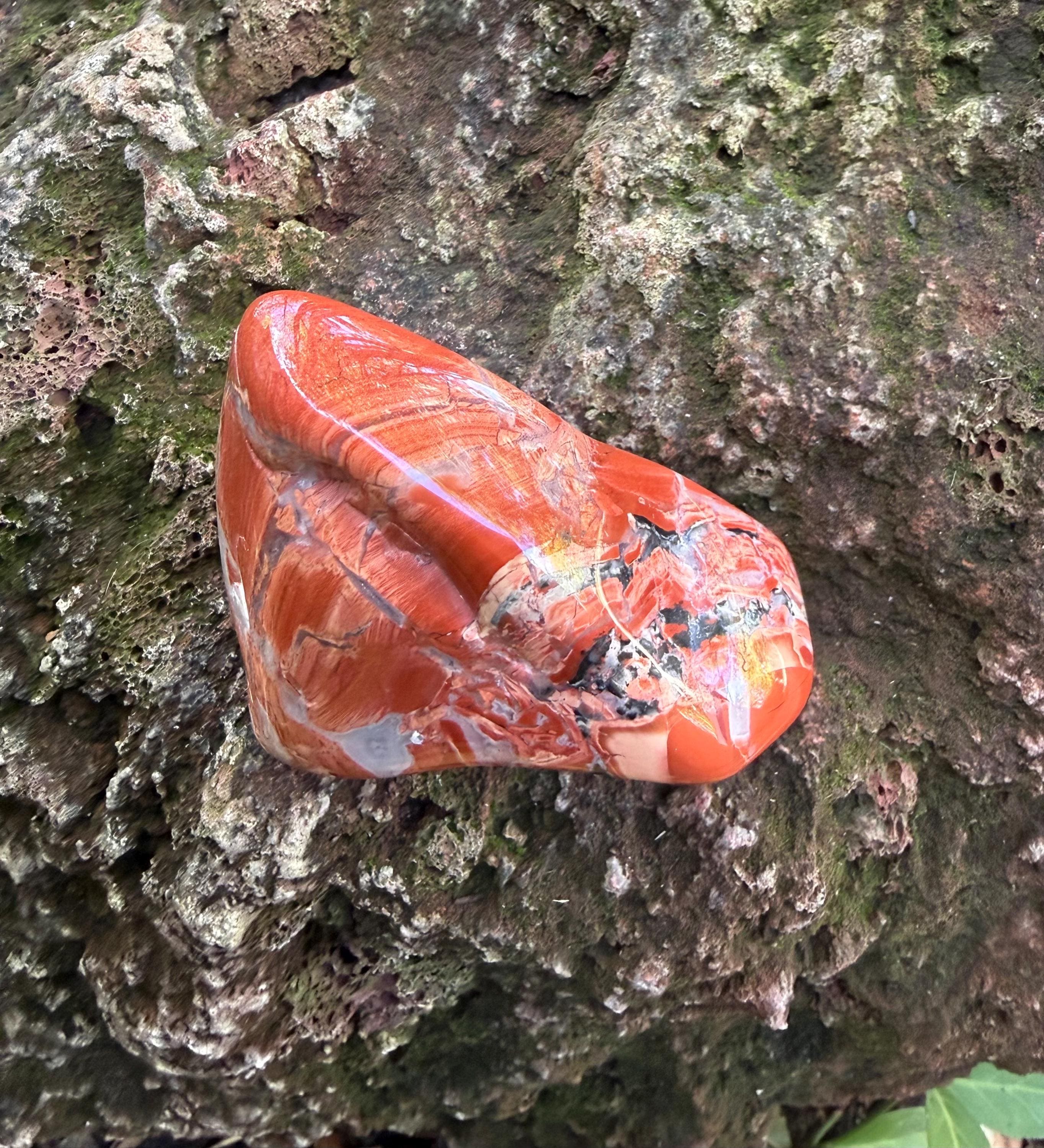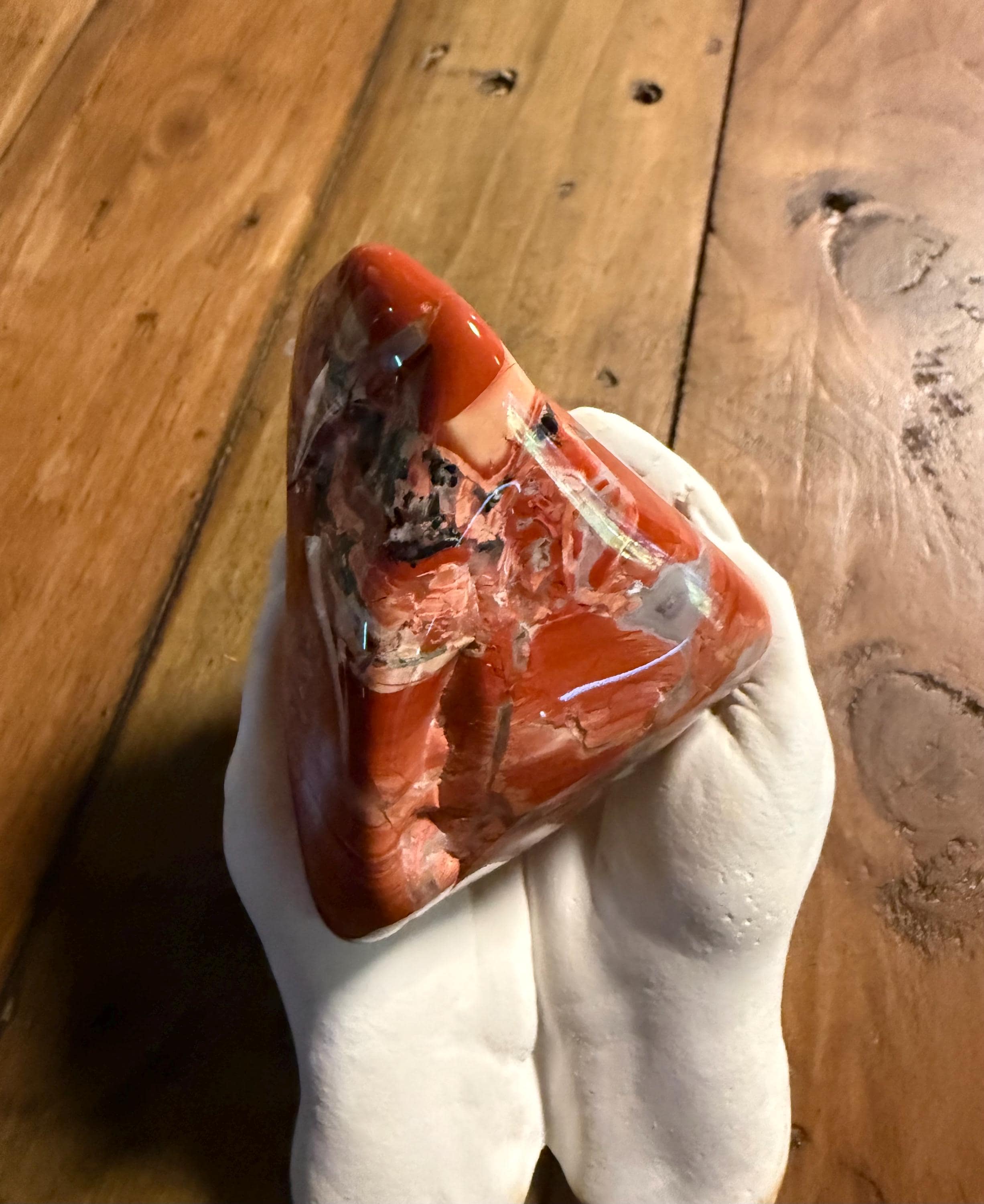 This is a beautiful Red River Jasper polished, freeform palm stone from South Africa.