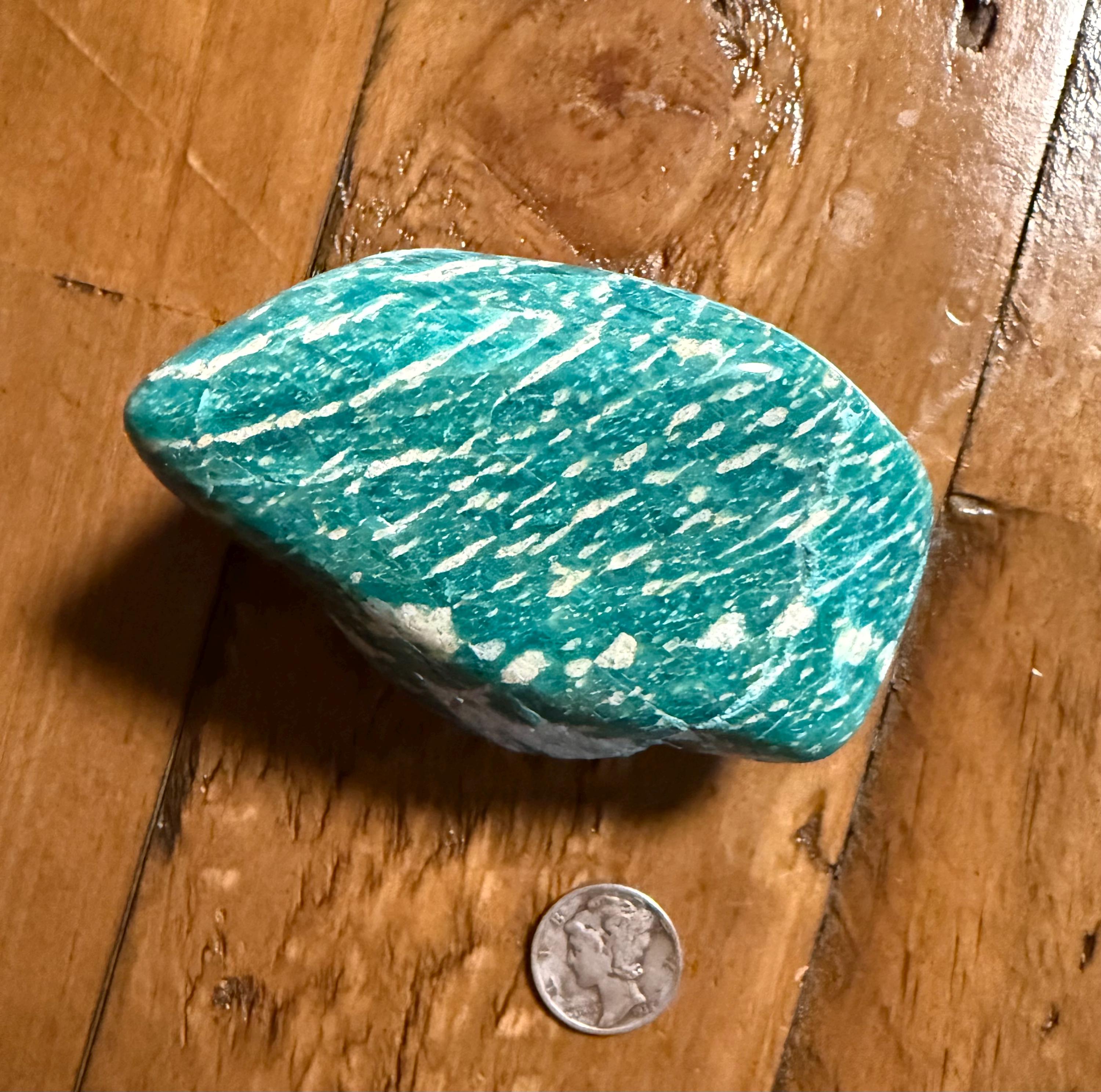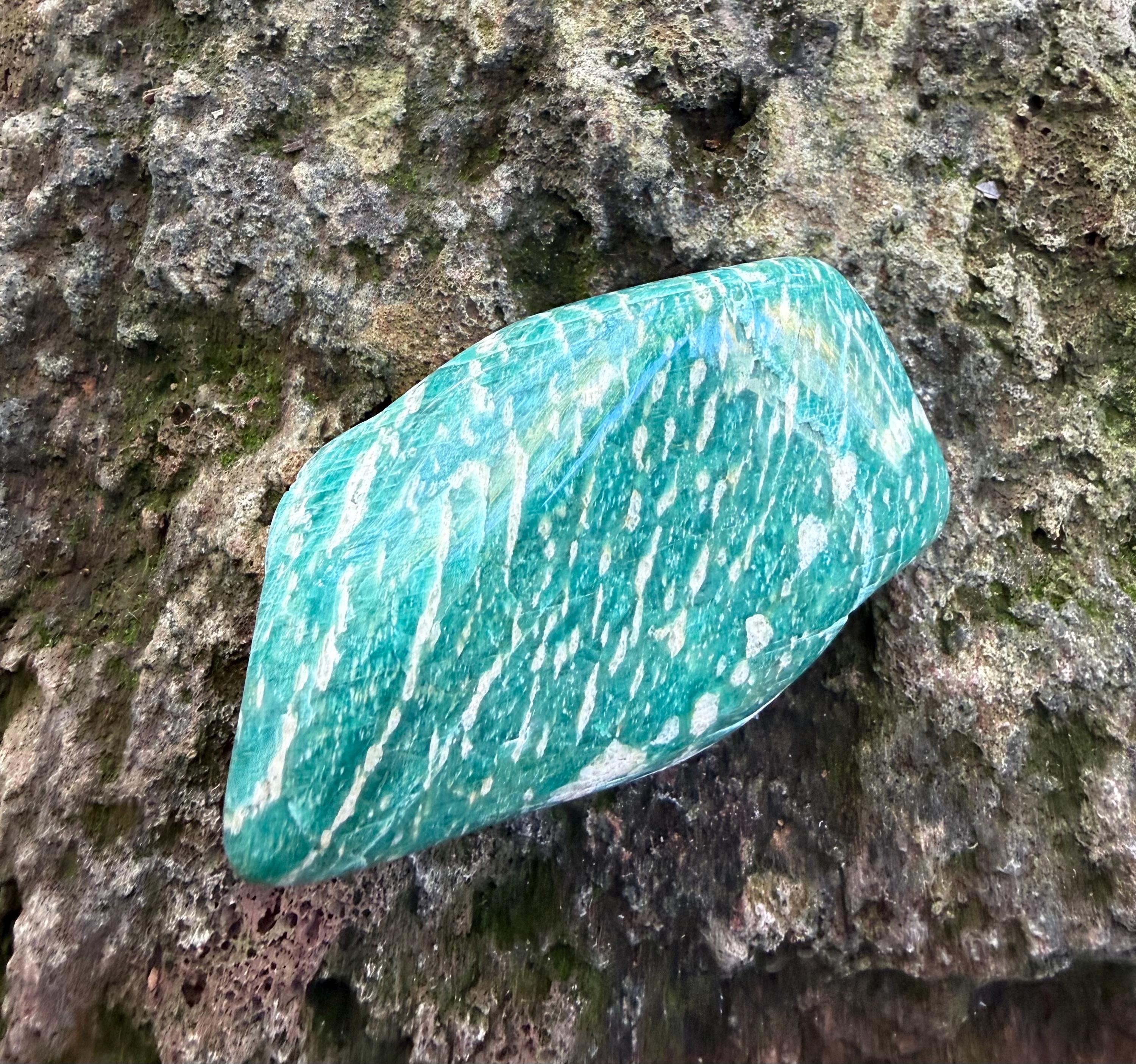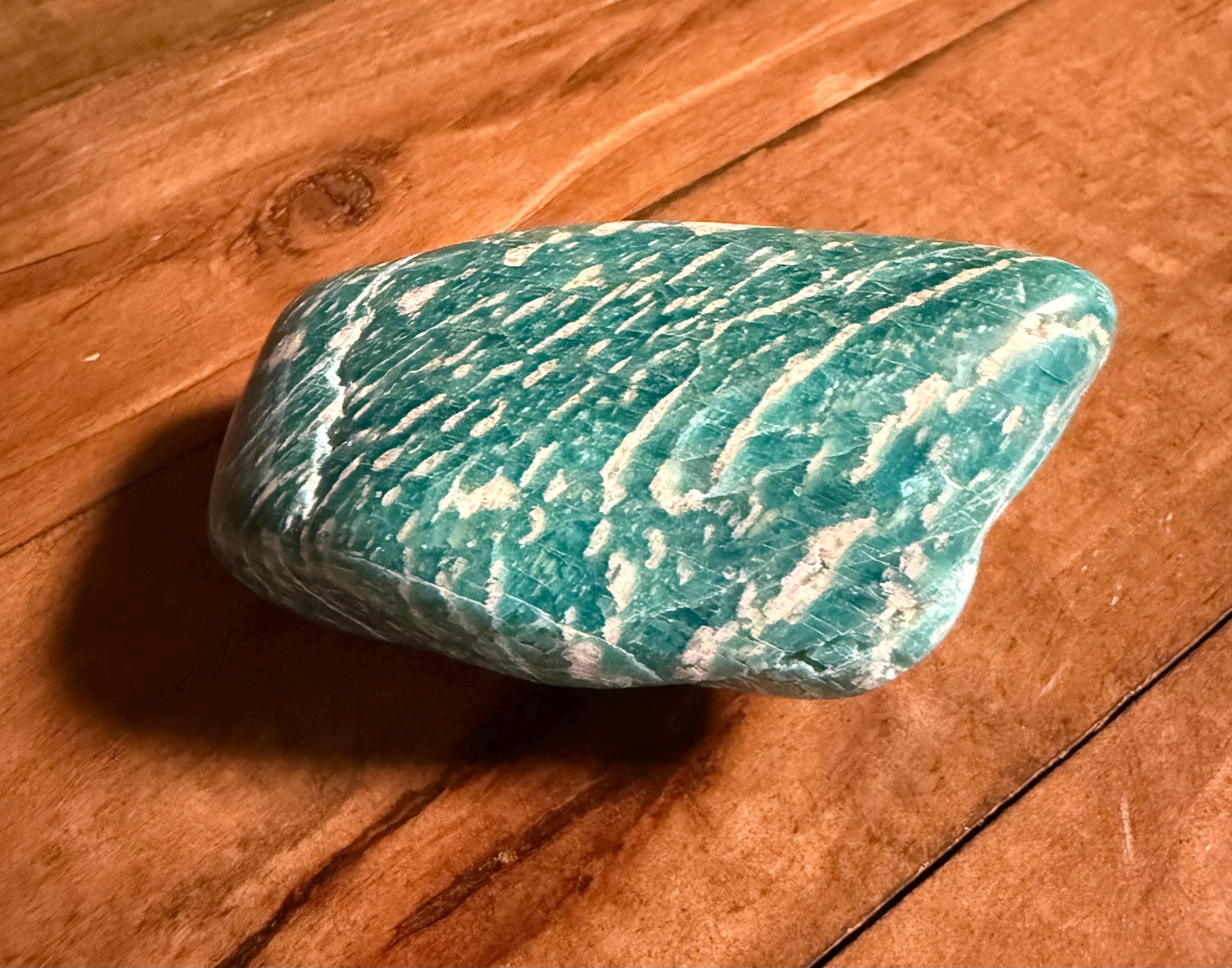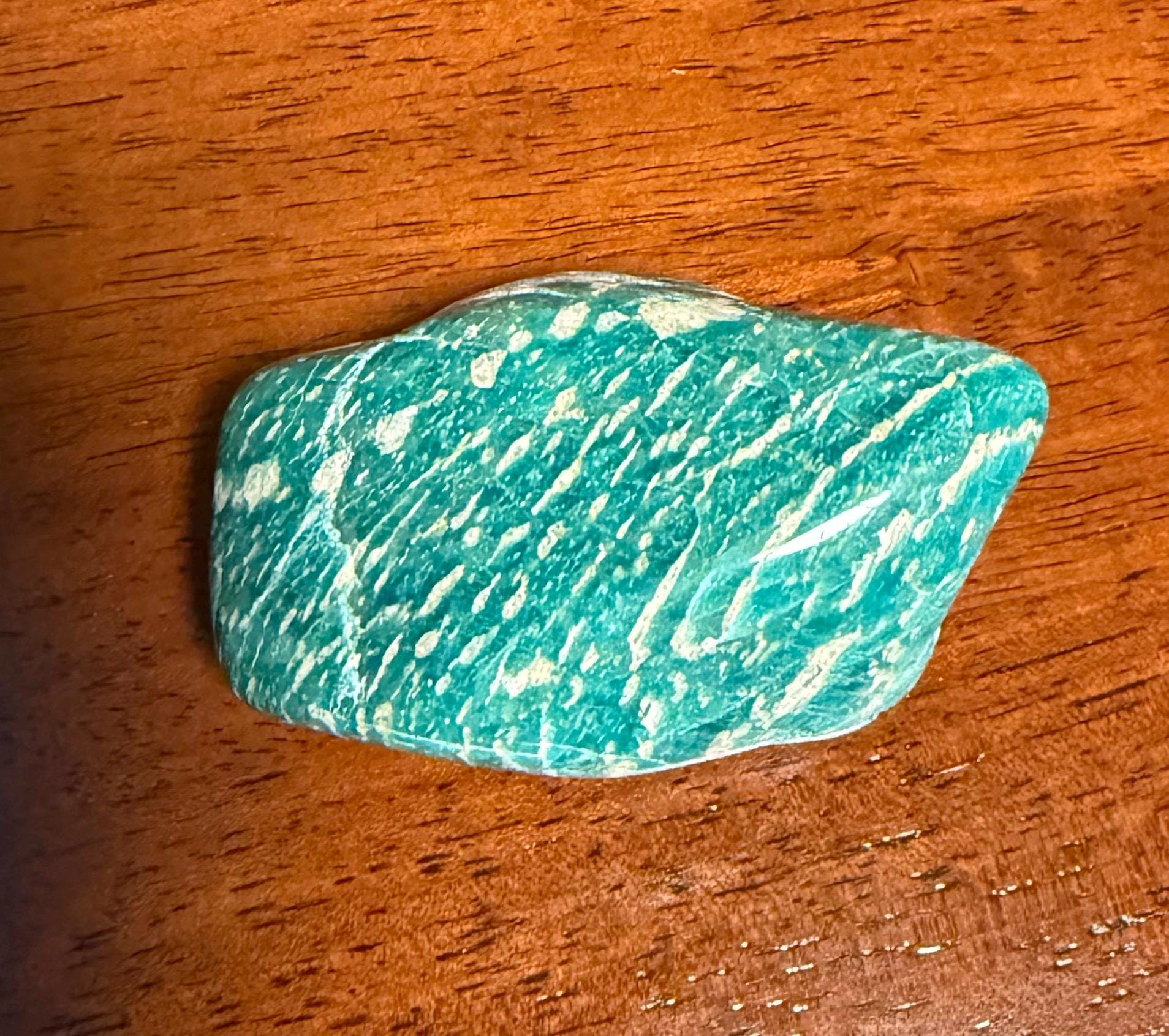 This is a free-form and polished aqua colored Microcline var. Amazonite from Russia, gently polished.