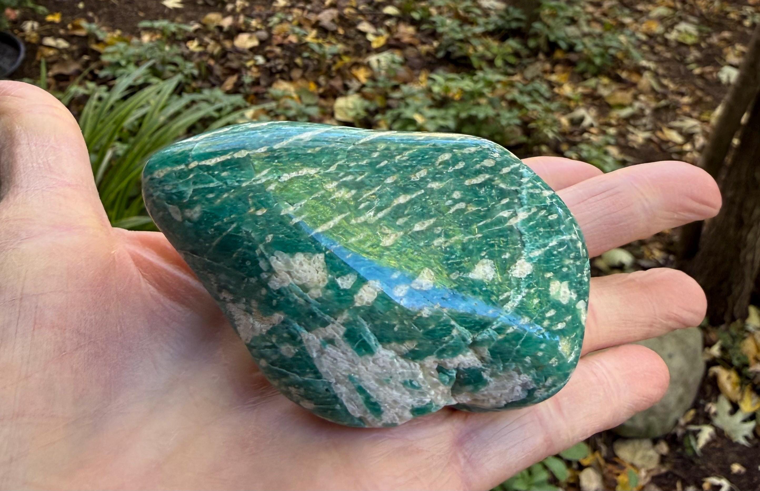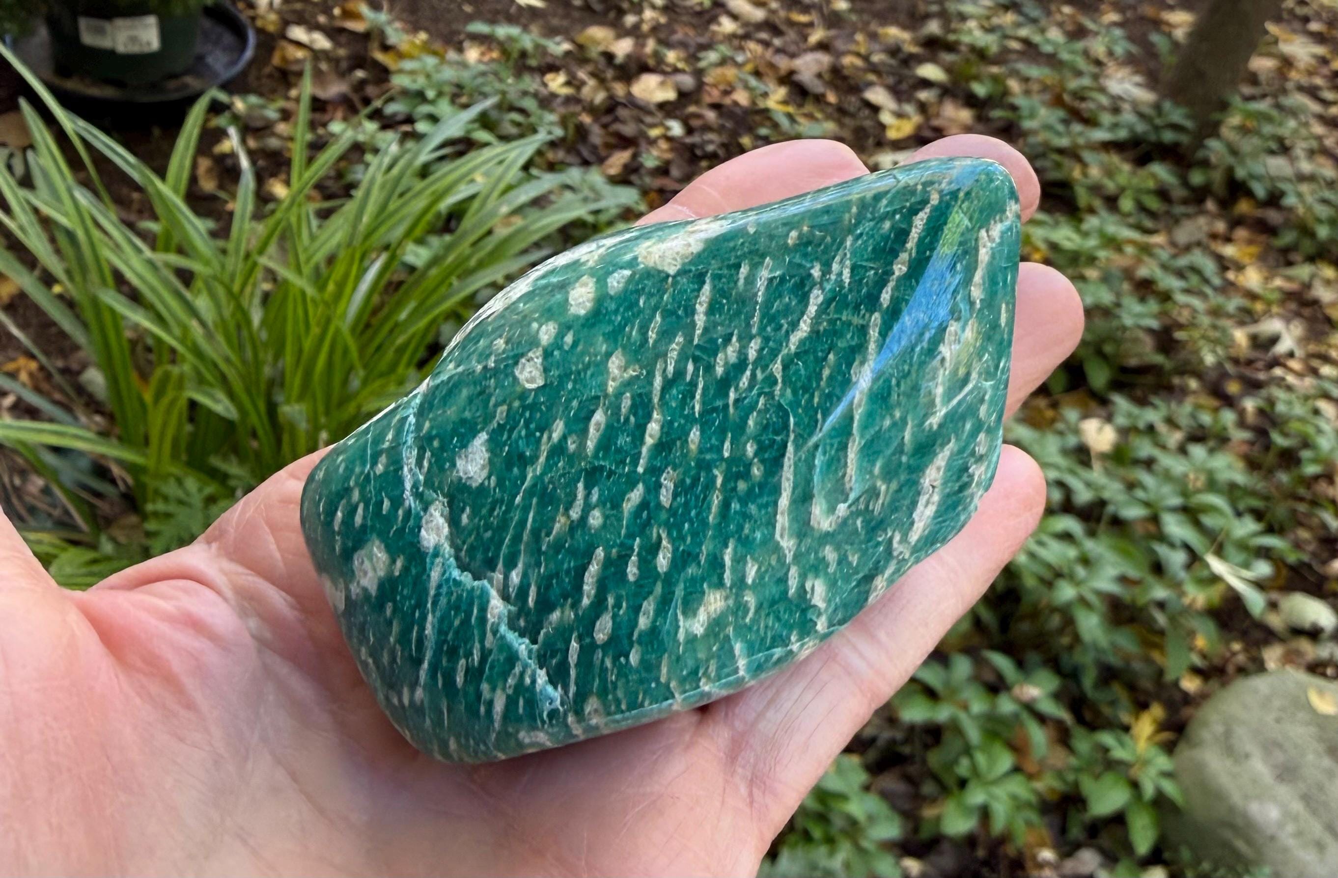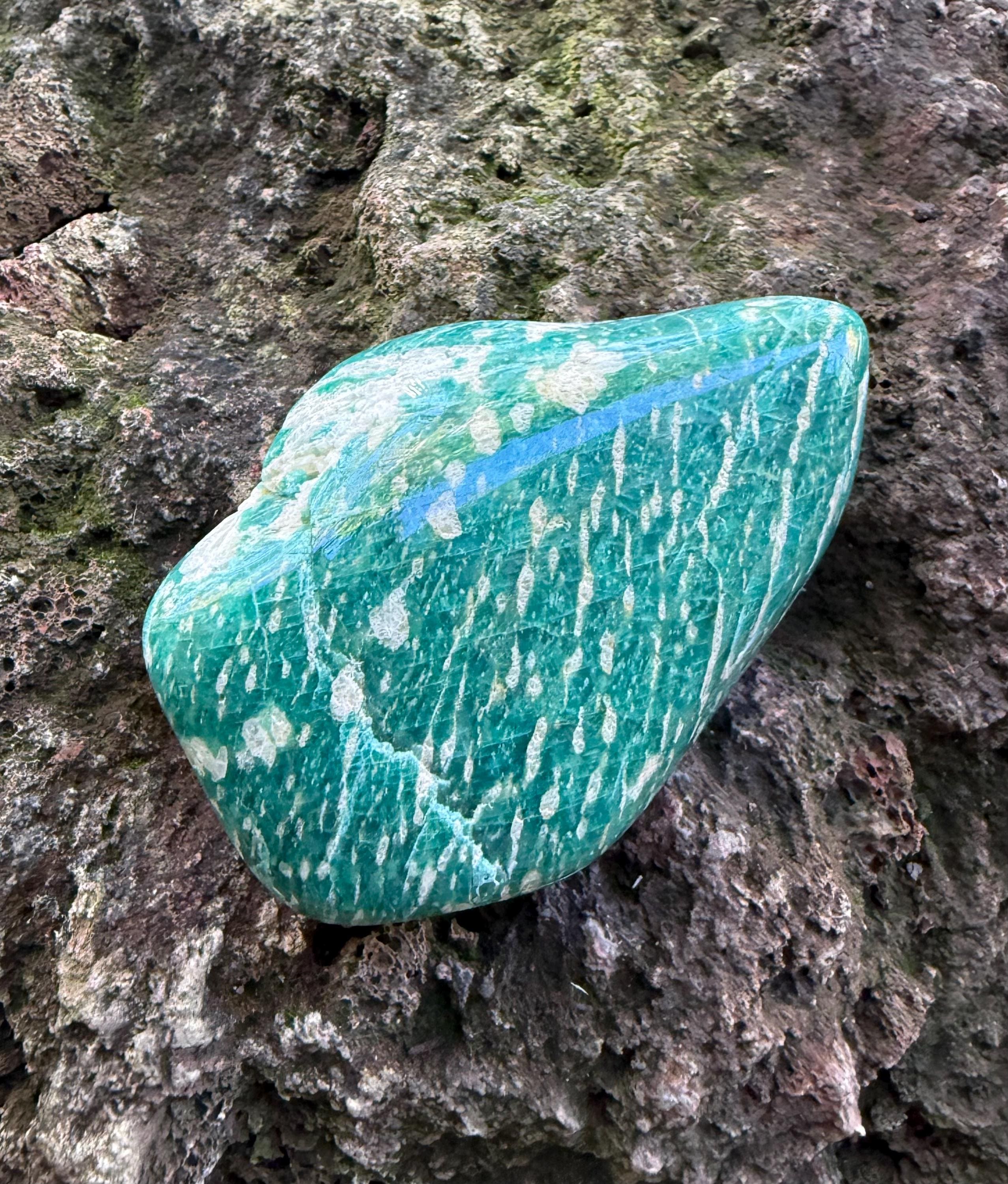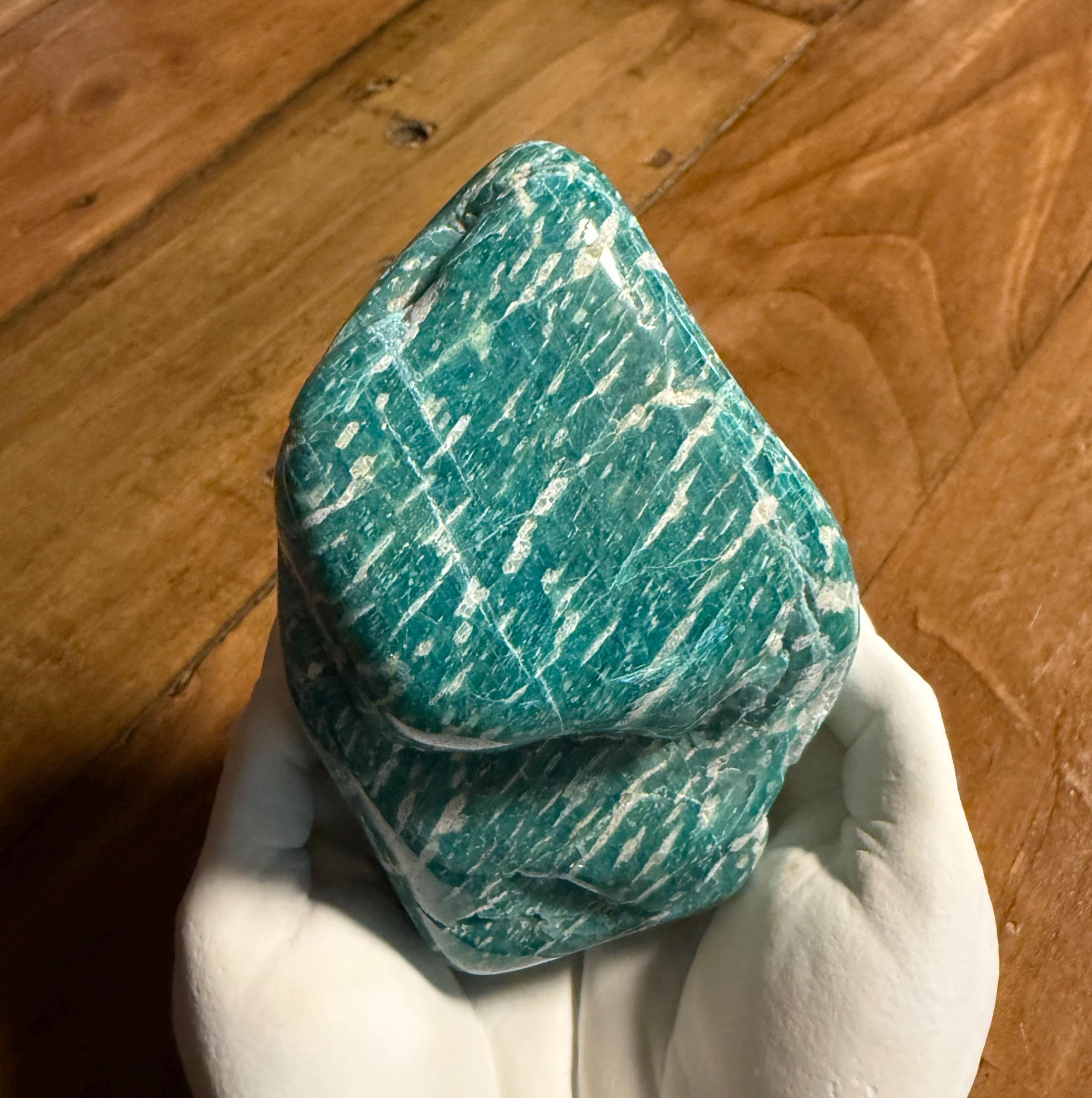 This is a free-form and polished aqua colored Microcline var. Amazonite from Russia, gently polished.