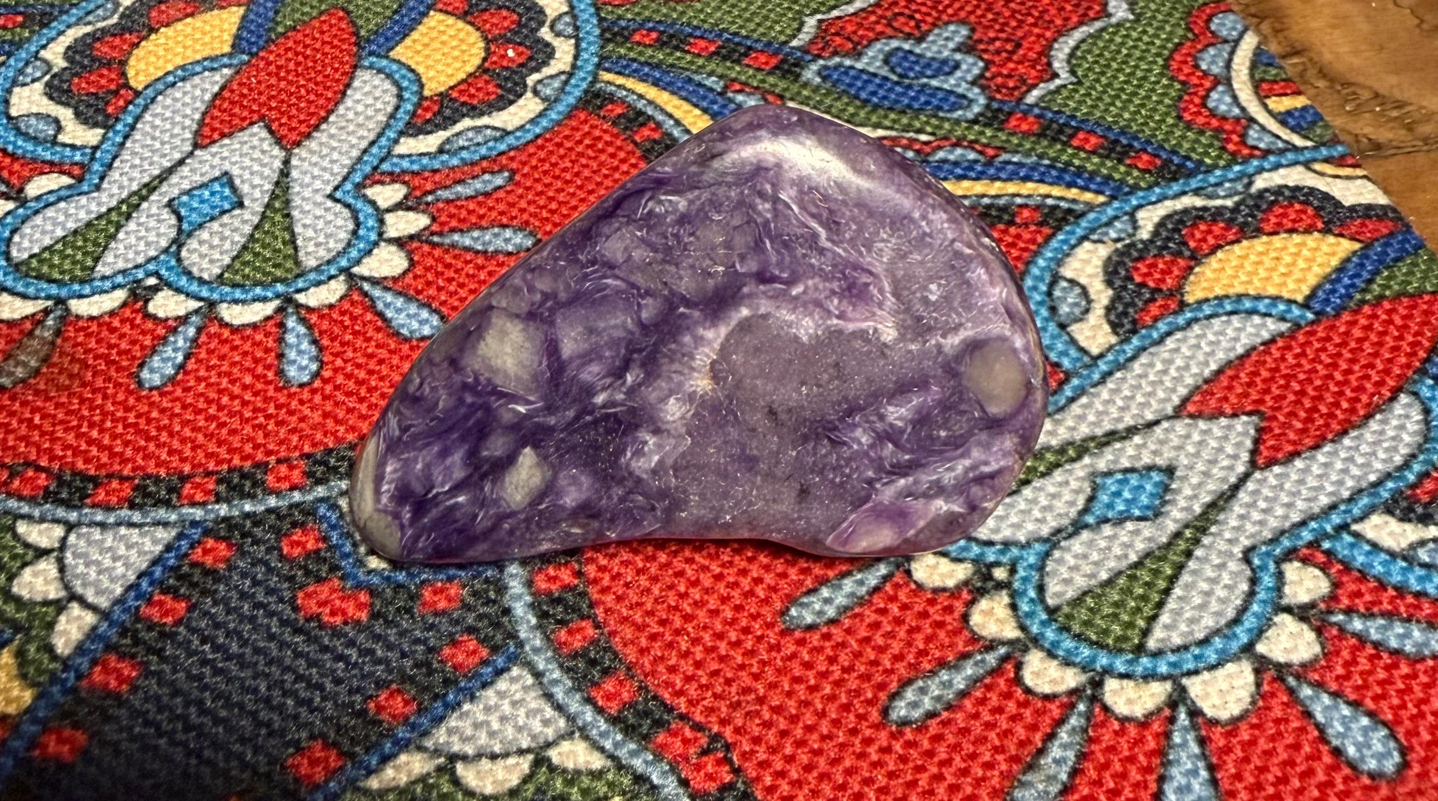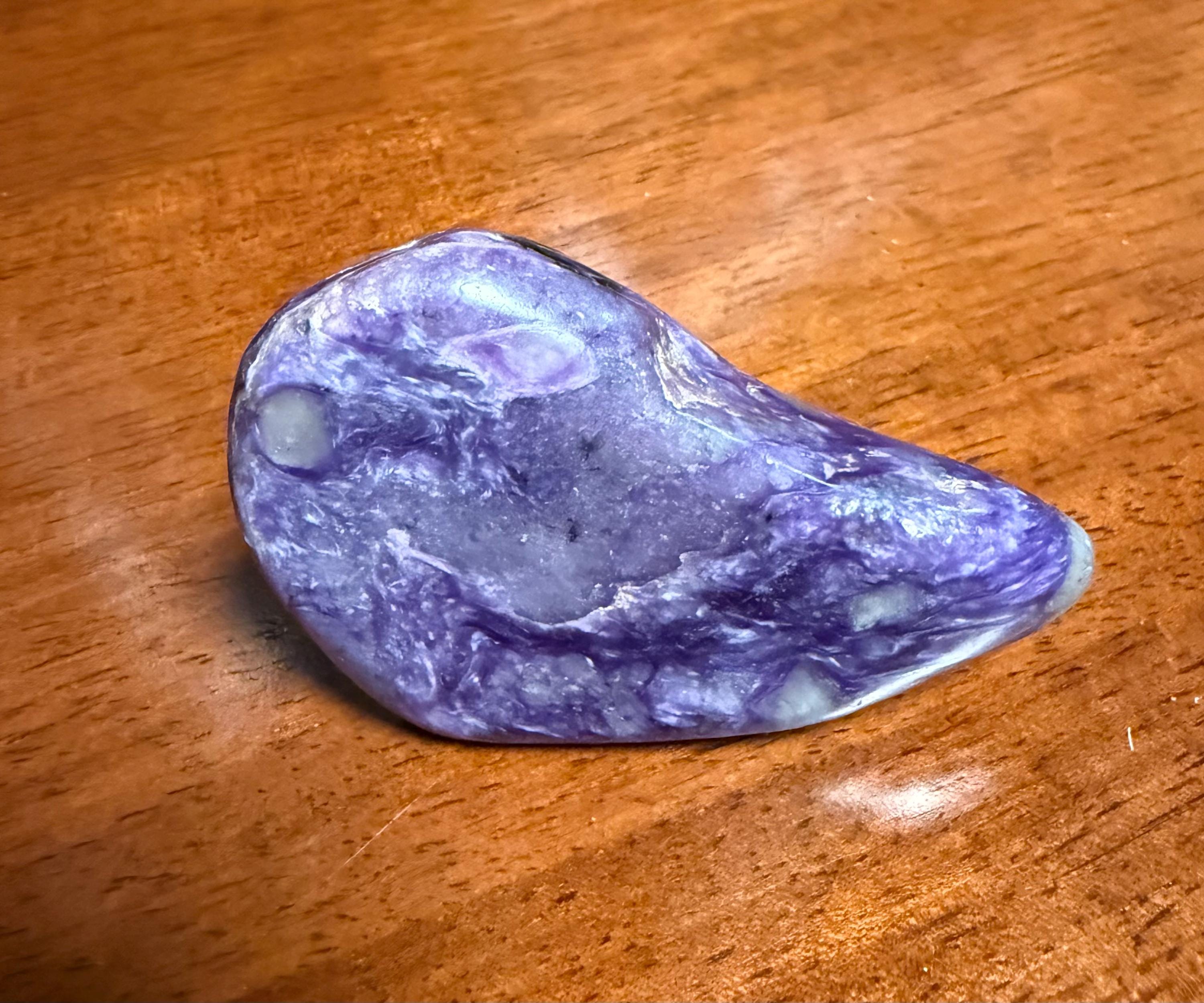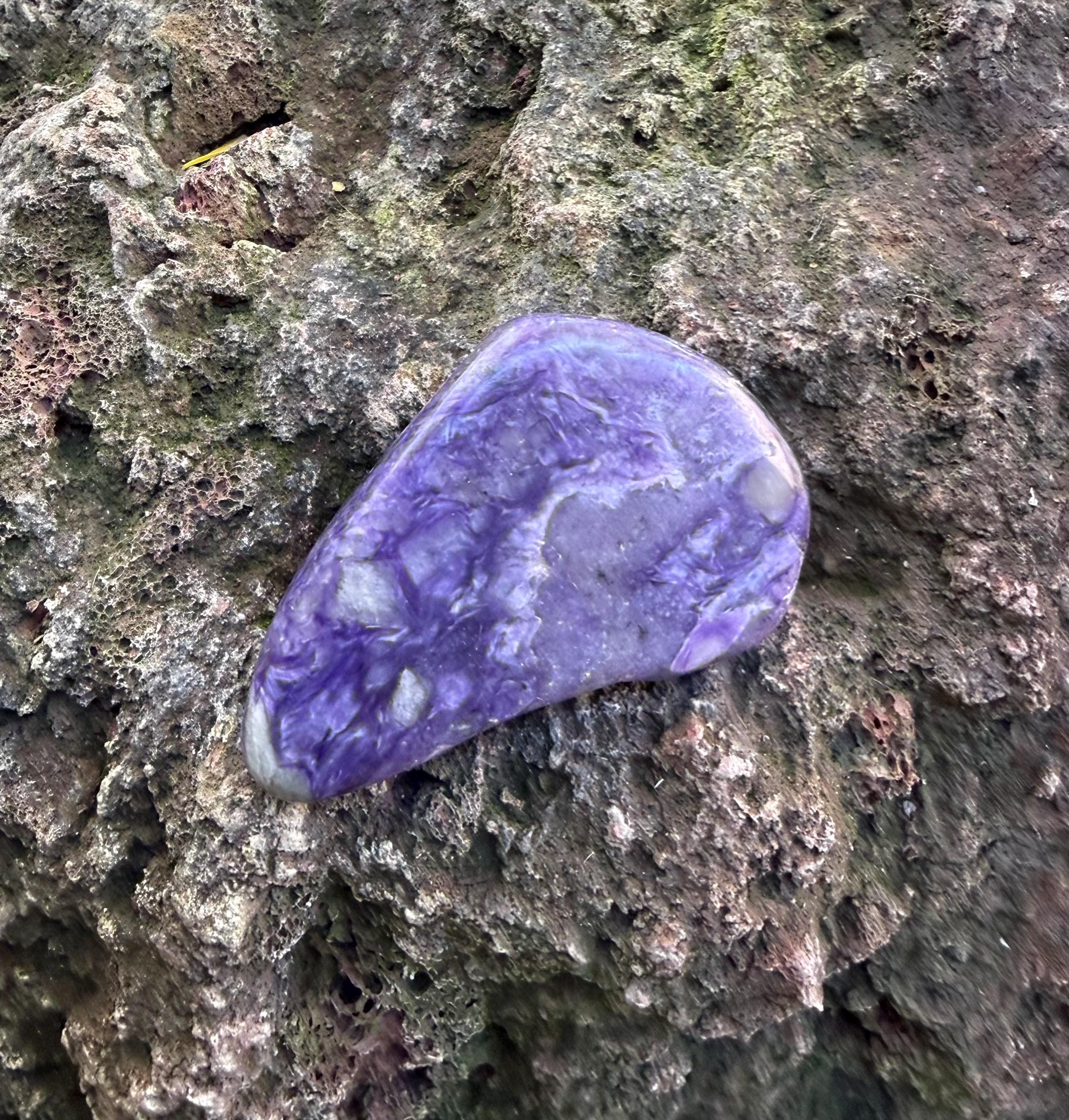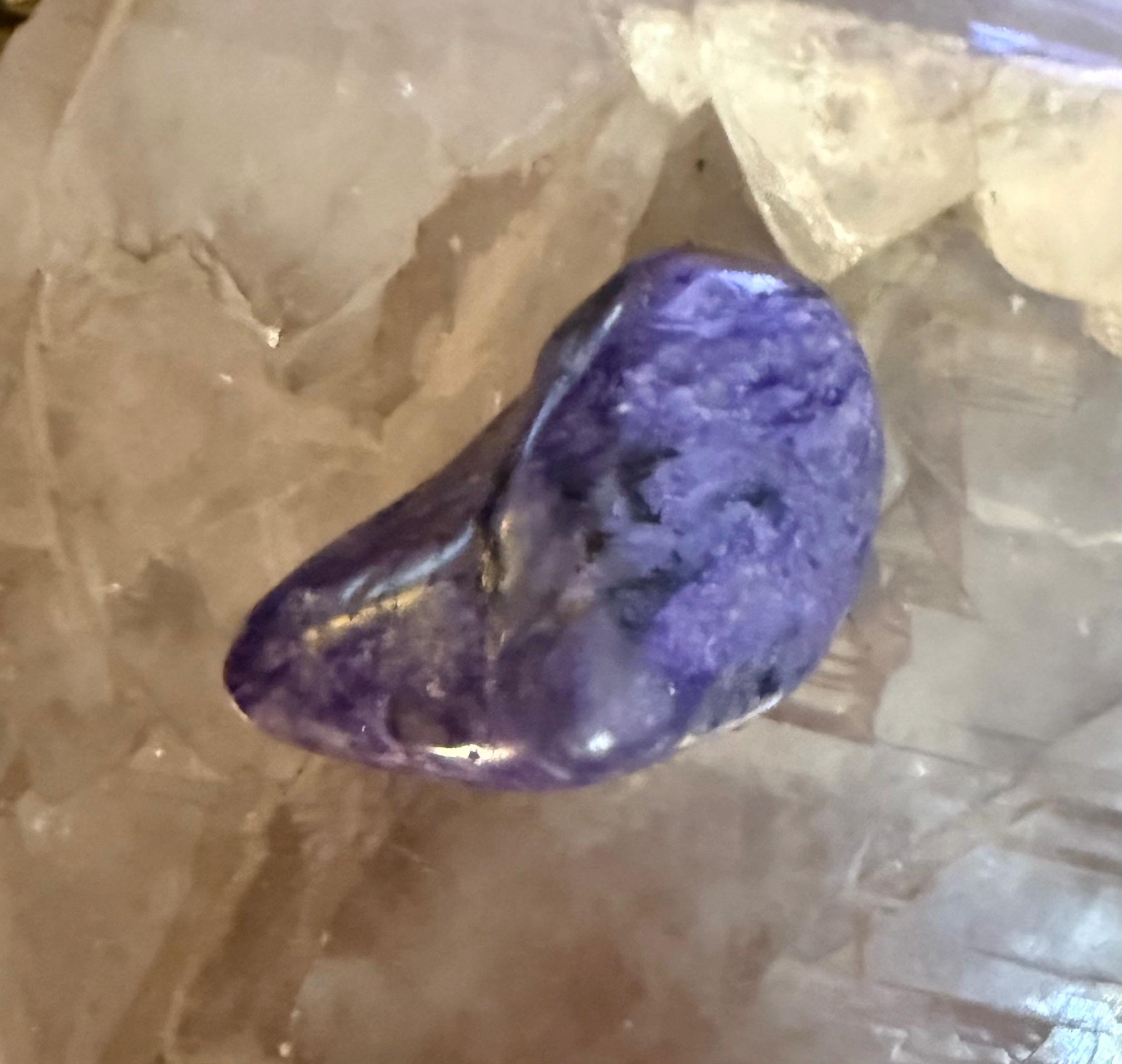 Charoite is a stone for this age, providing a synthesis between the heart and crown chakras and combines higher spiritual dimensions with unconditional love.