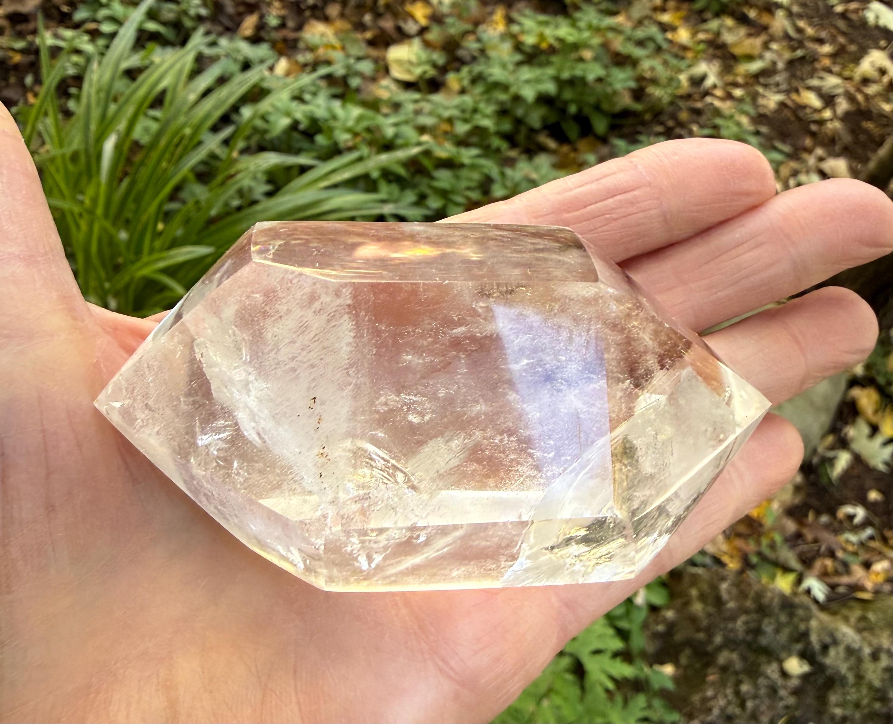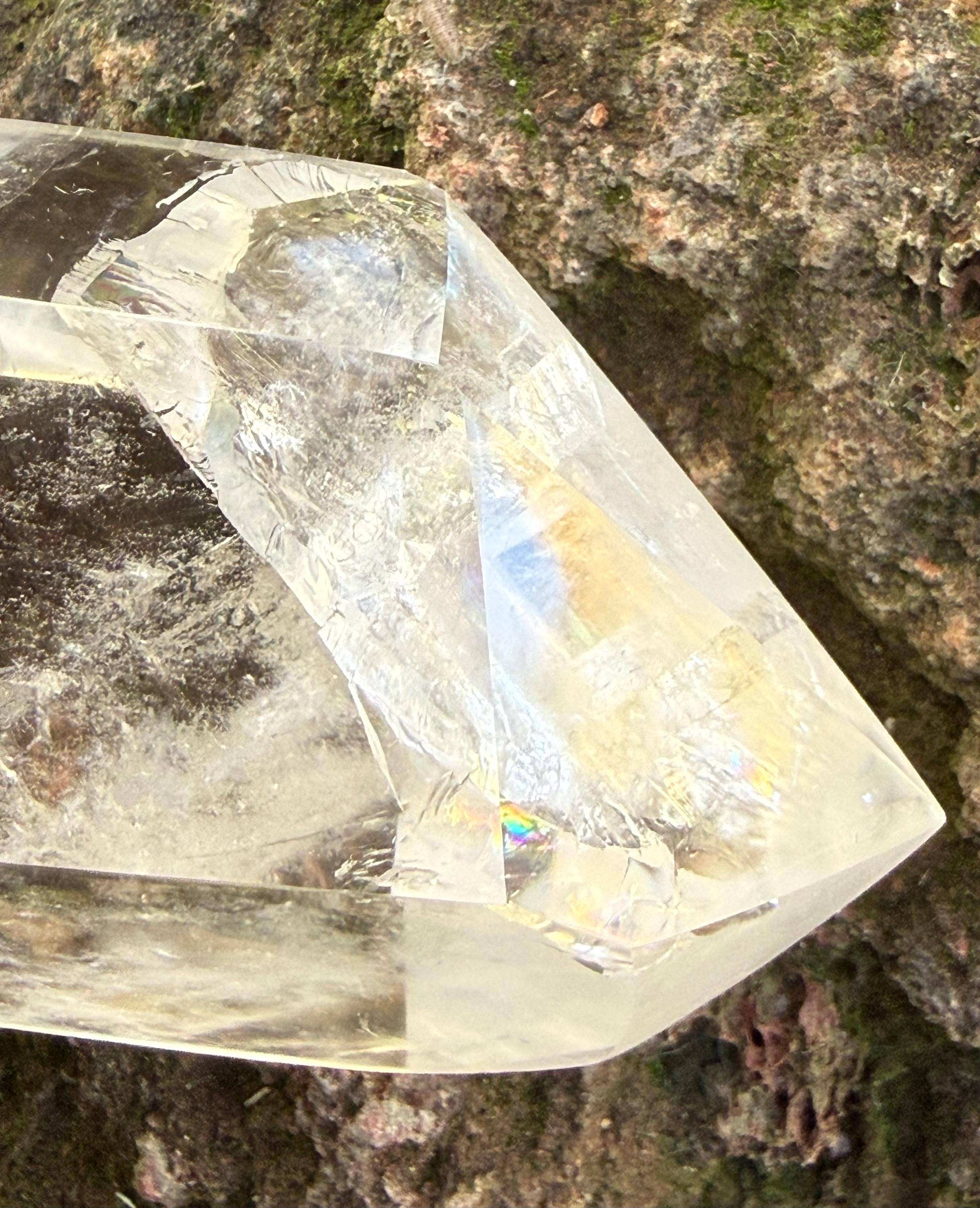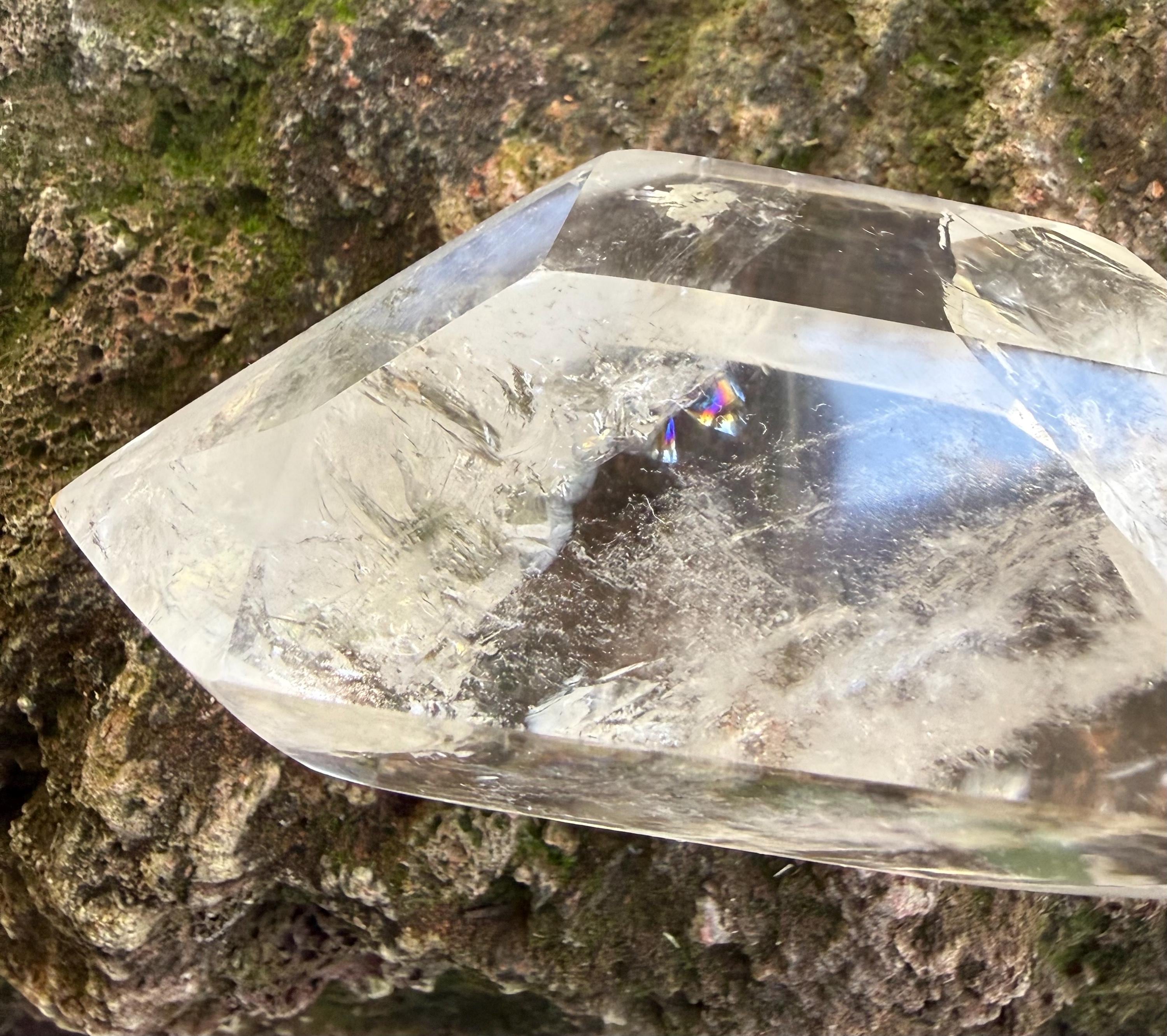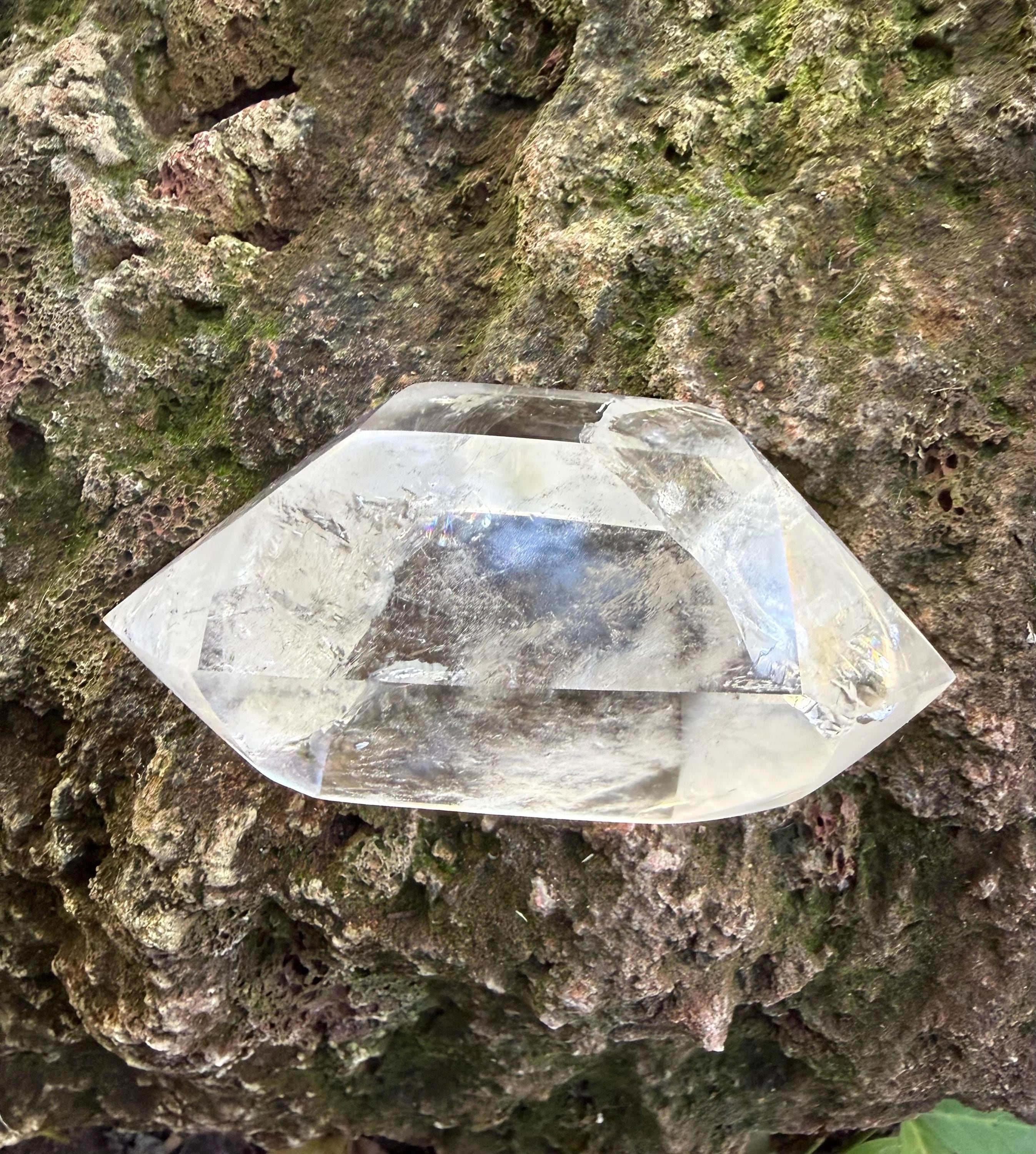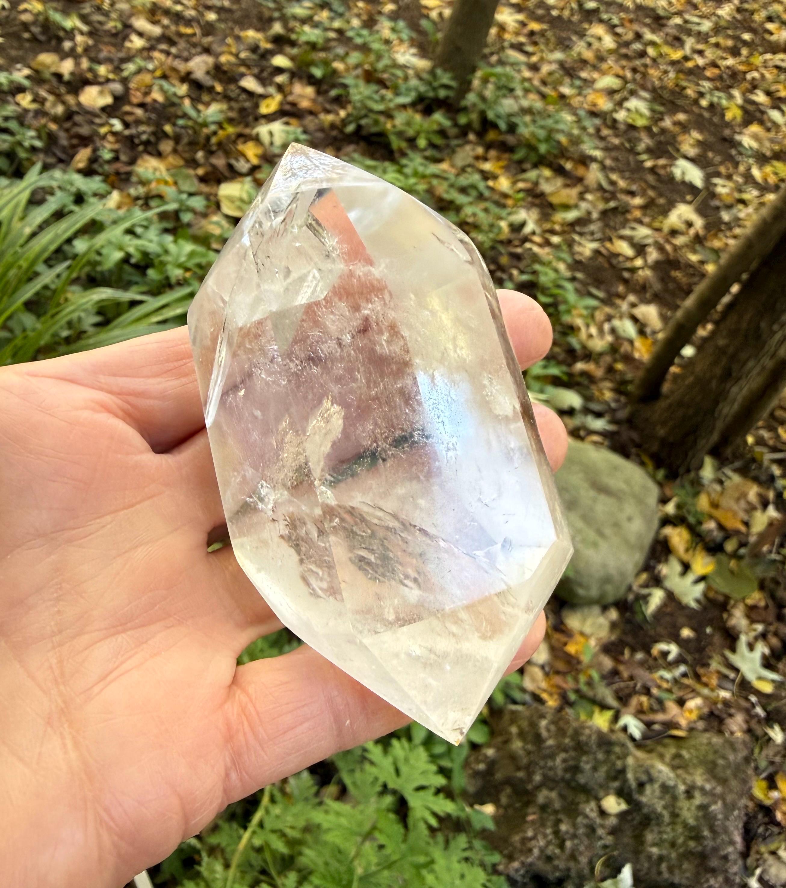 This one is a stunner…beautiful, very clear and polished and LARGE DT Quartz from Madagascar with incredible silver veiling and gorgeous rainbow infractions.