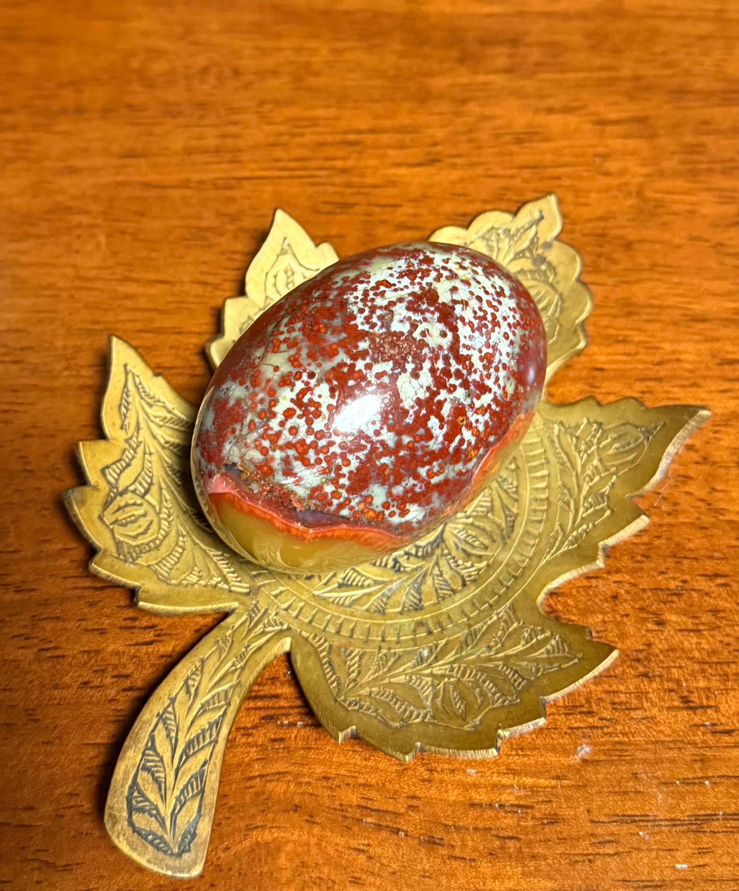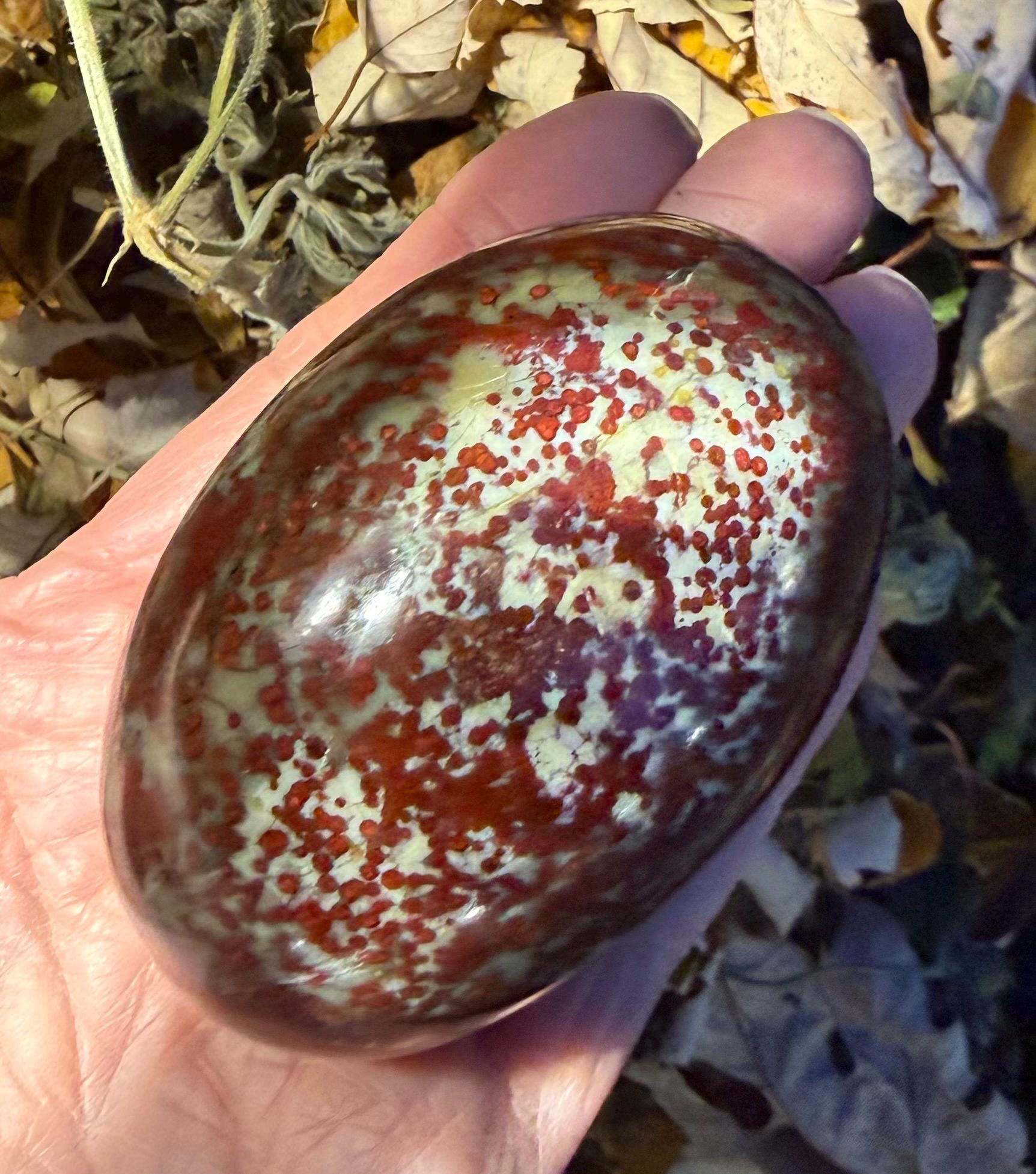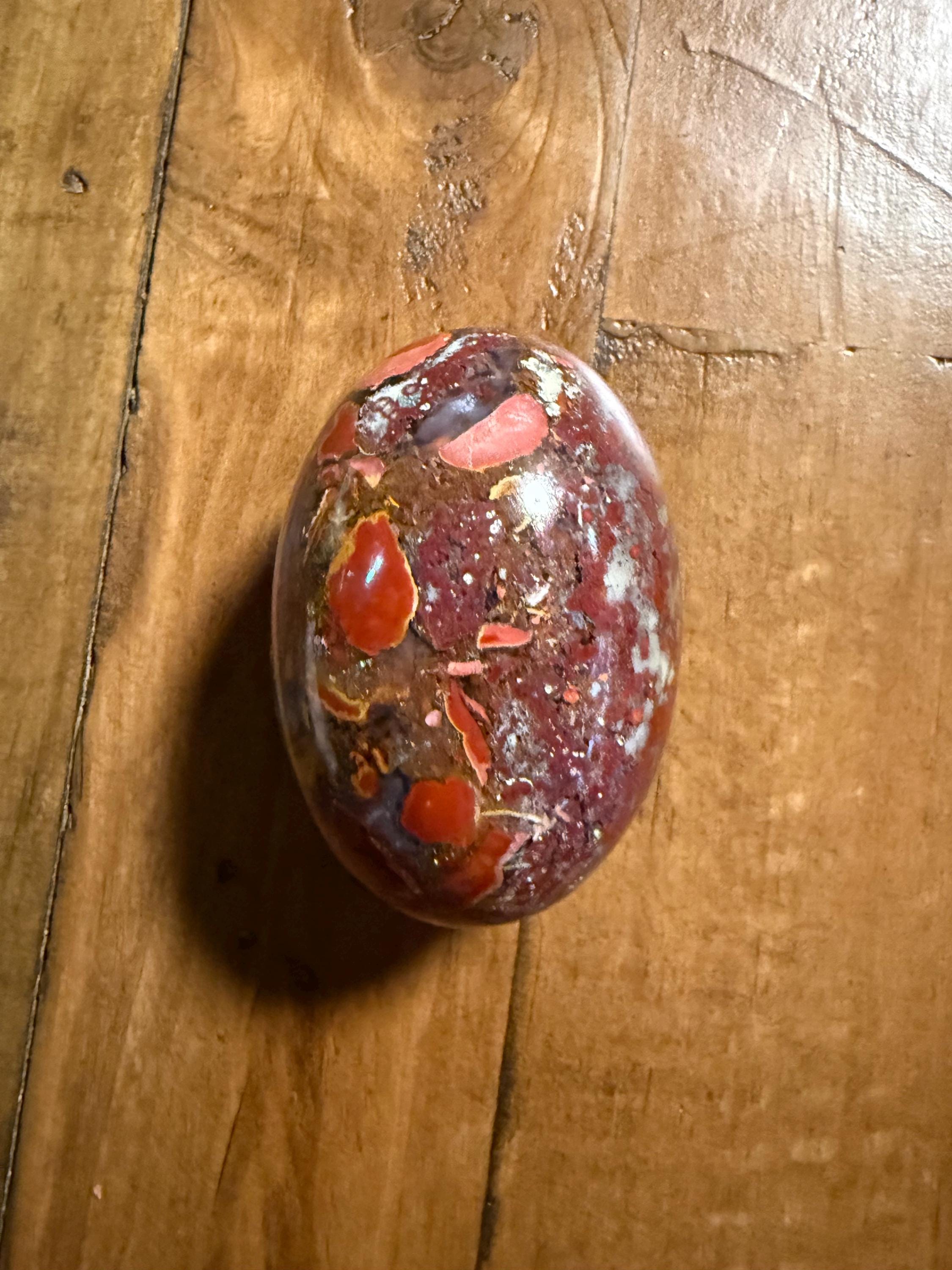 King Cobra Jasper is a rare sedimentary rock from India that formed when nodules of elongated Jasper were cemented together by iron, calcium, and silica.