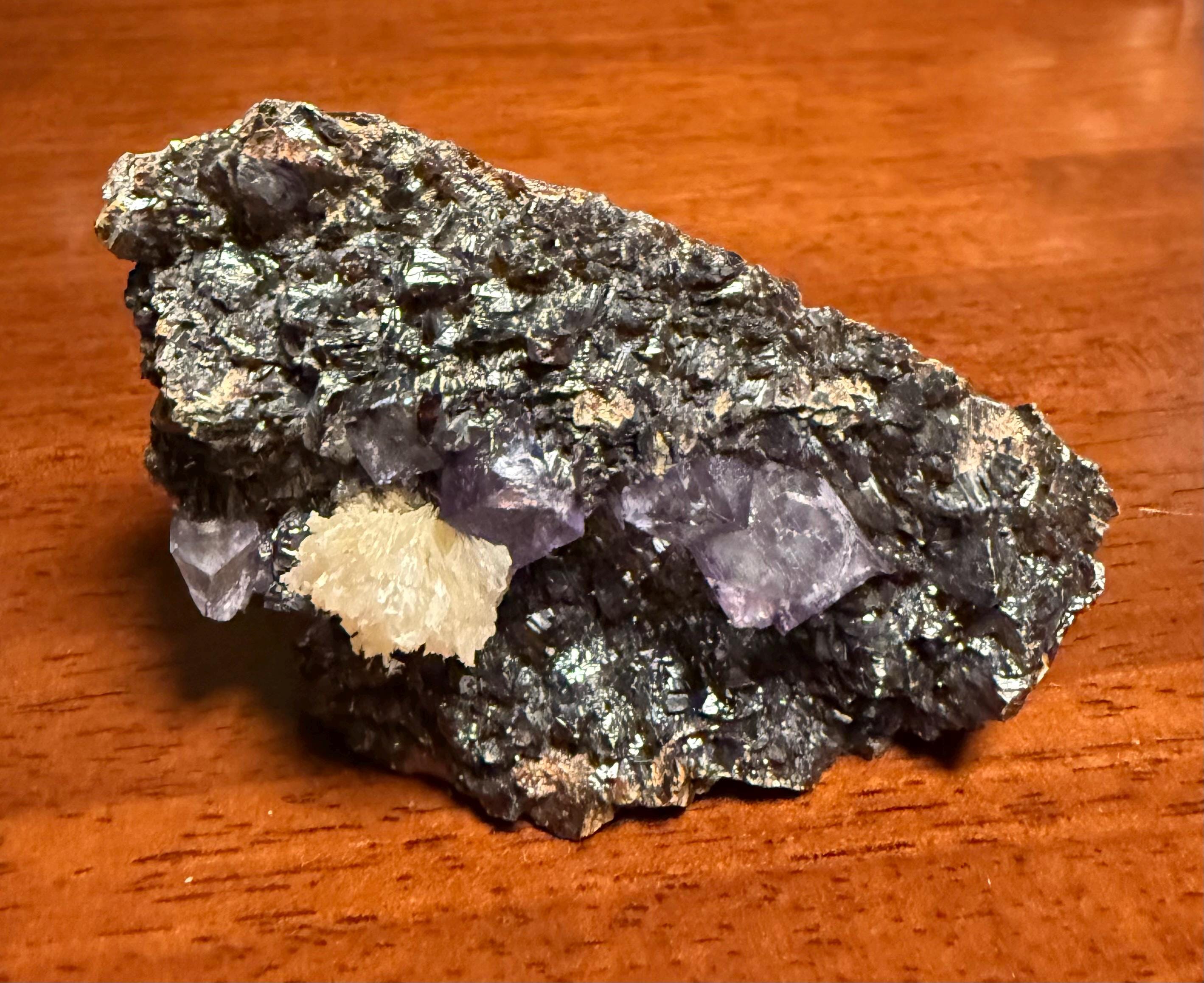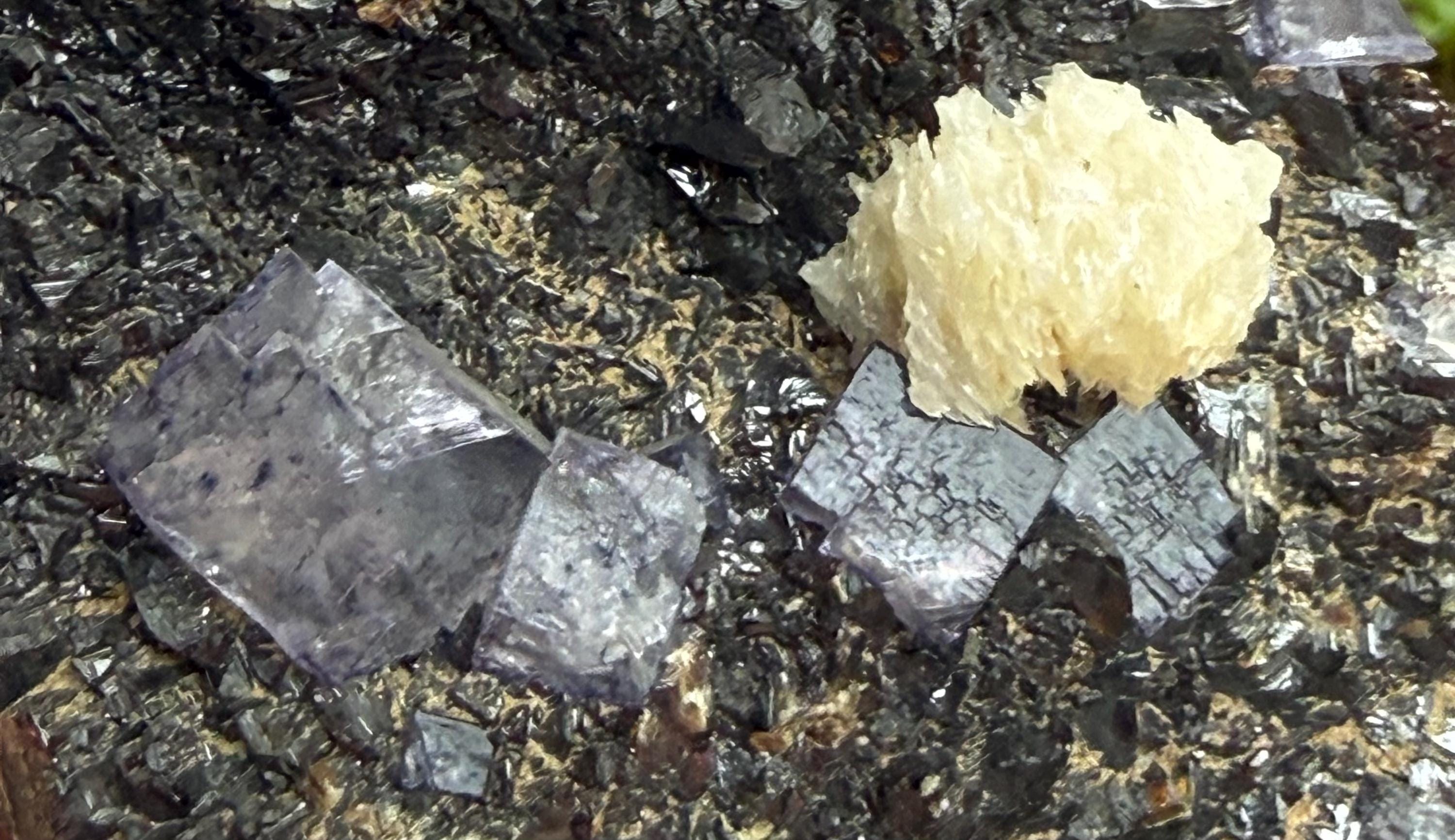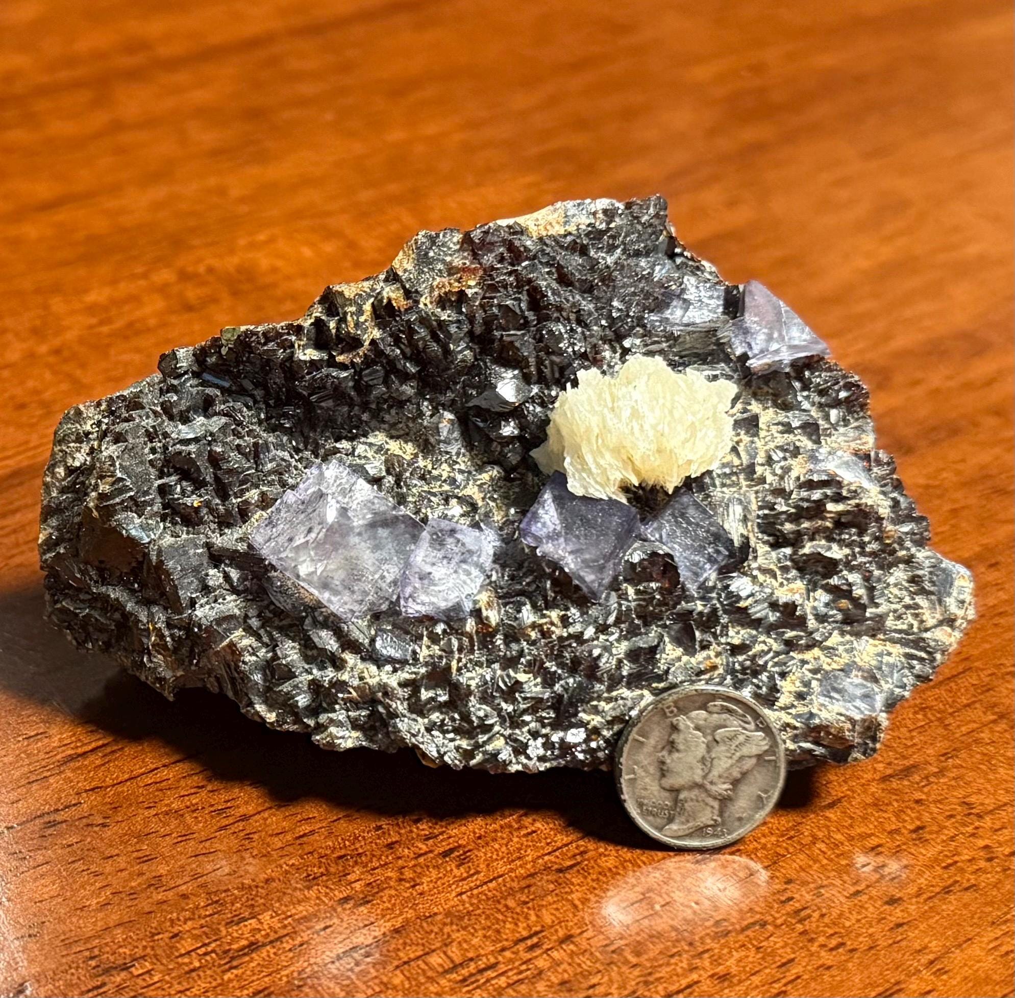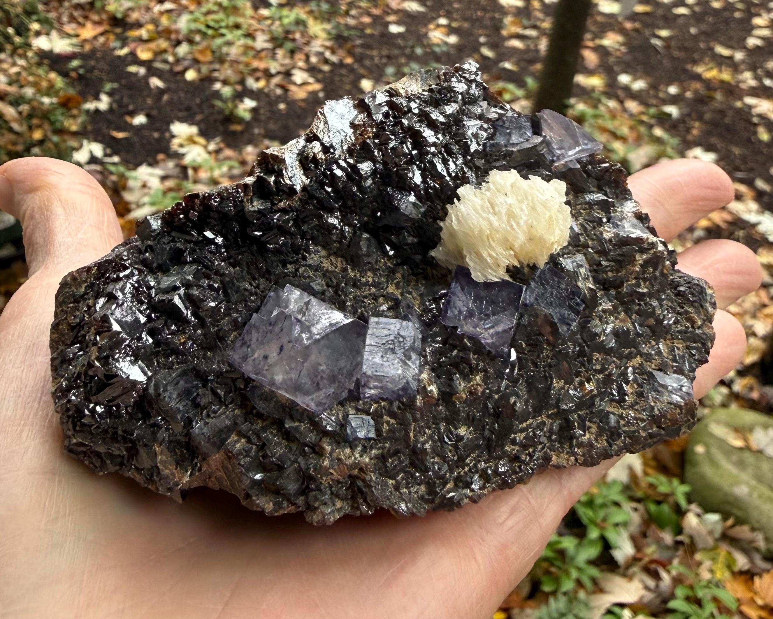 A vintage RAW Fluorite, Calcite and Sphalerite cluster from Illinois.