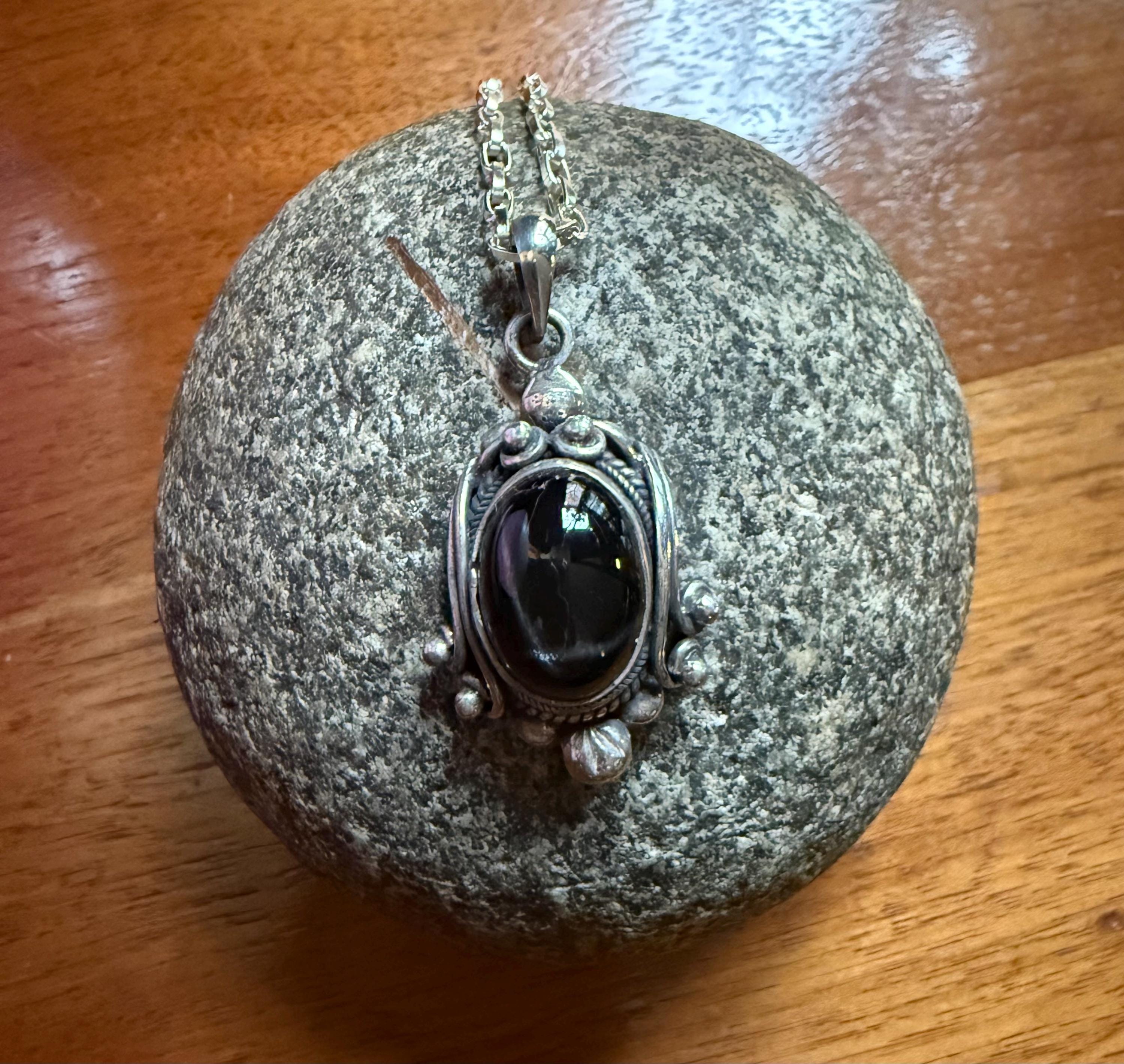 This is a very beautiful and natural black sapphire pendant, handcrafted in Nepal.