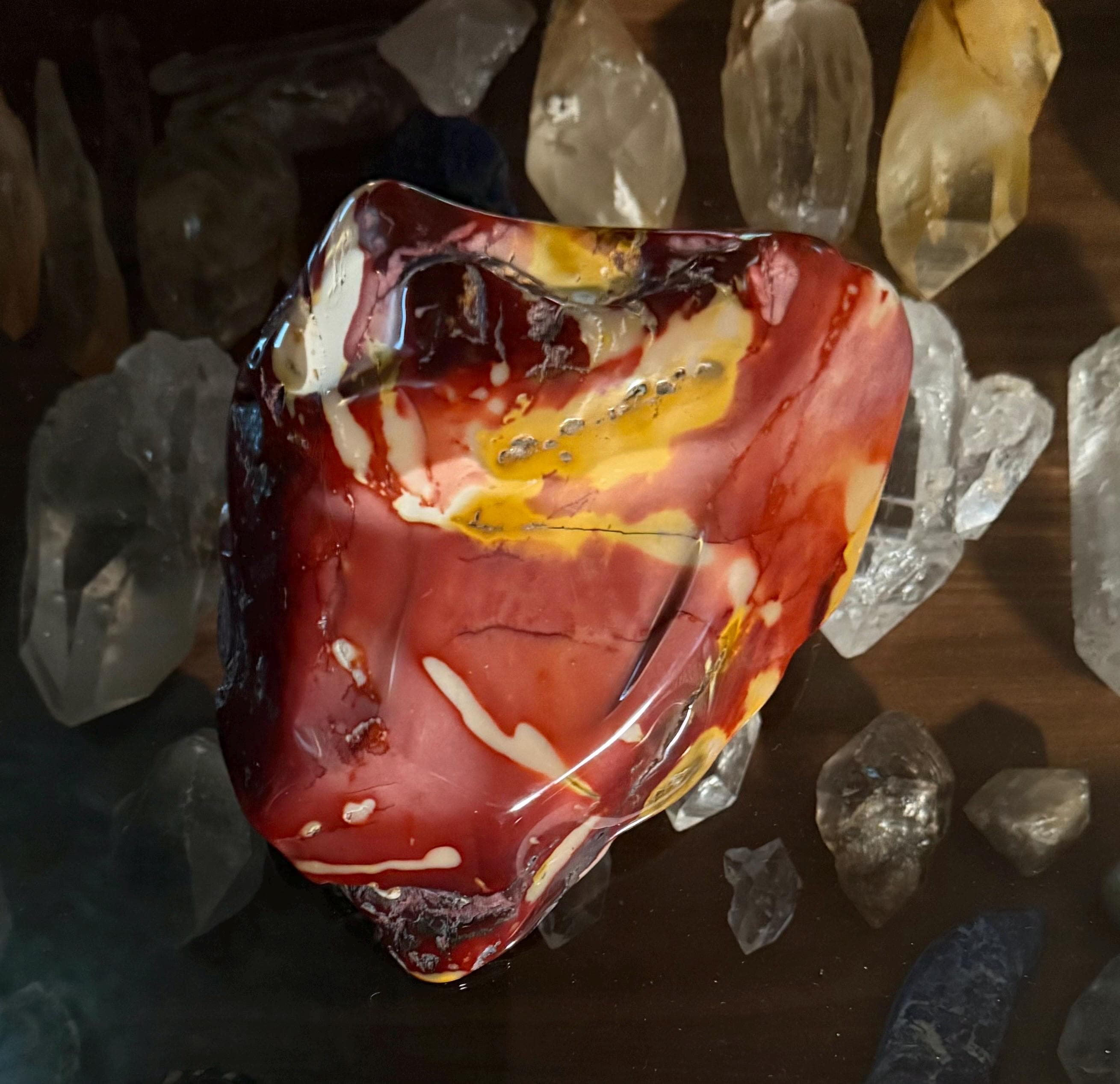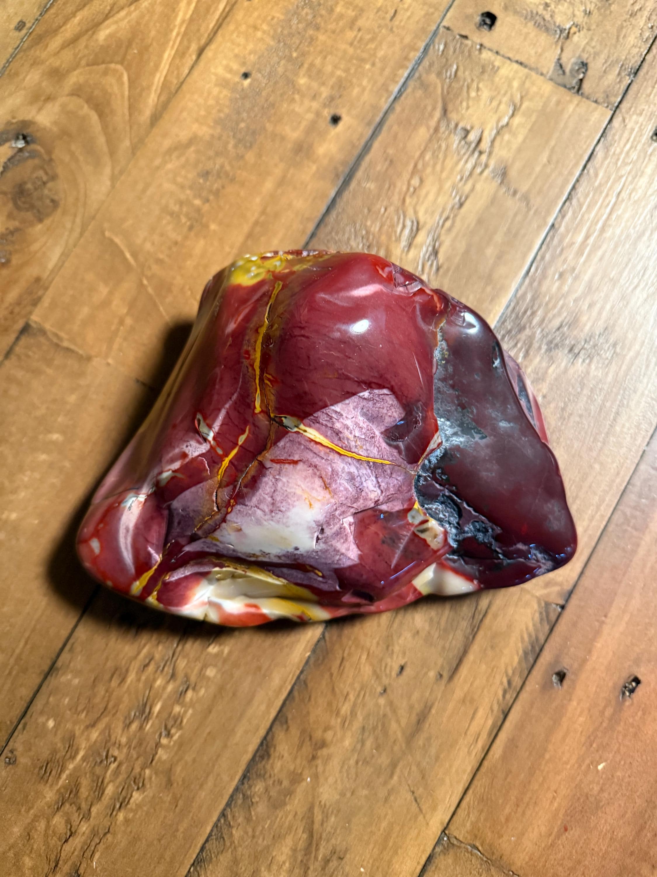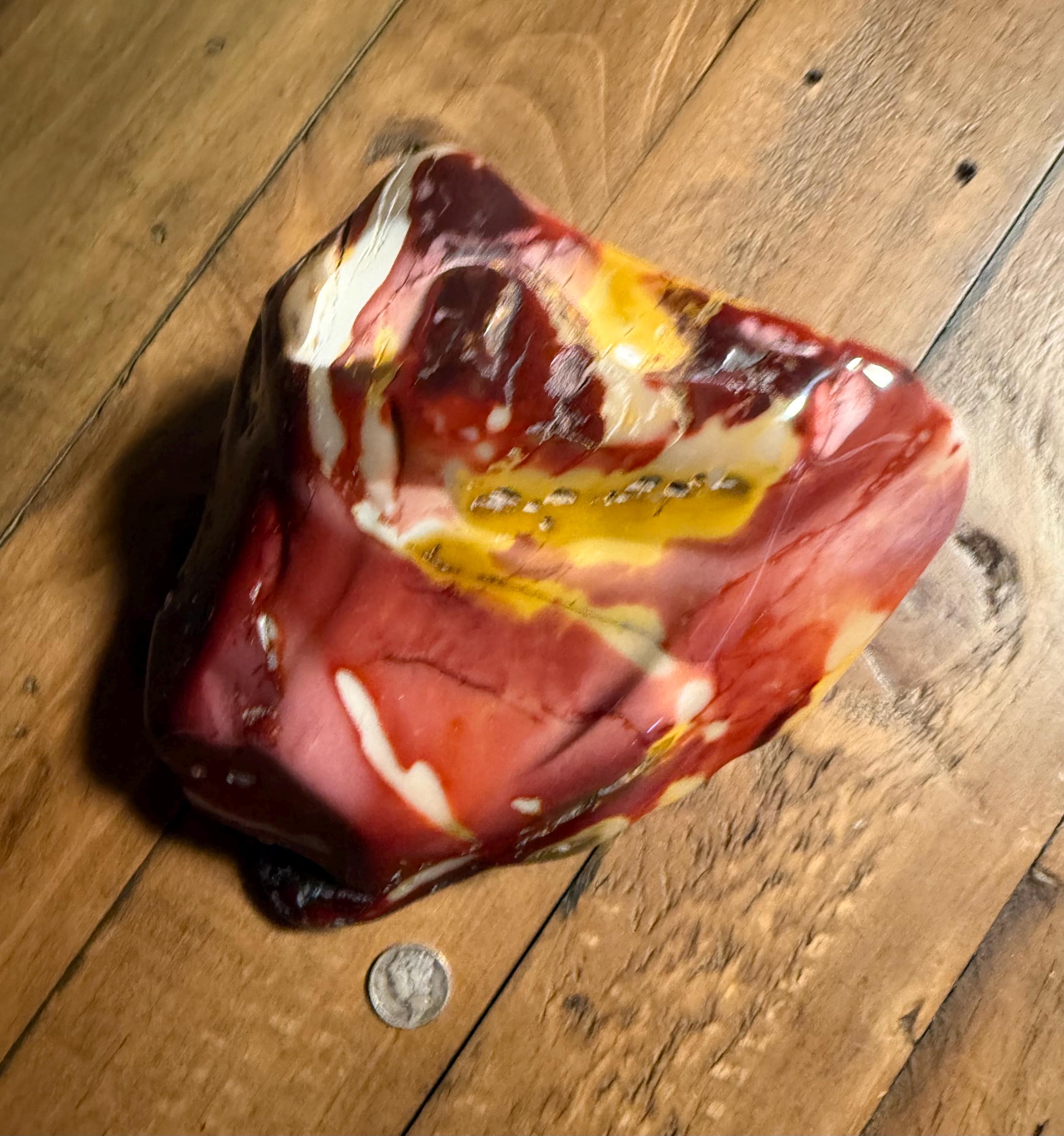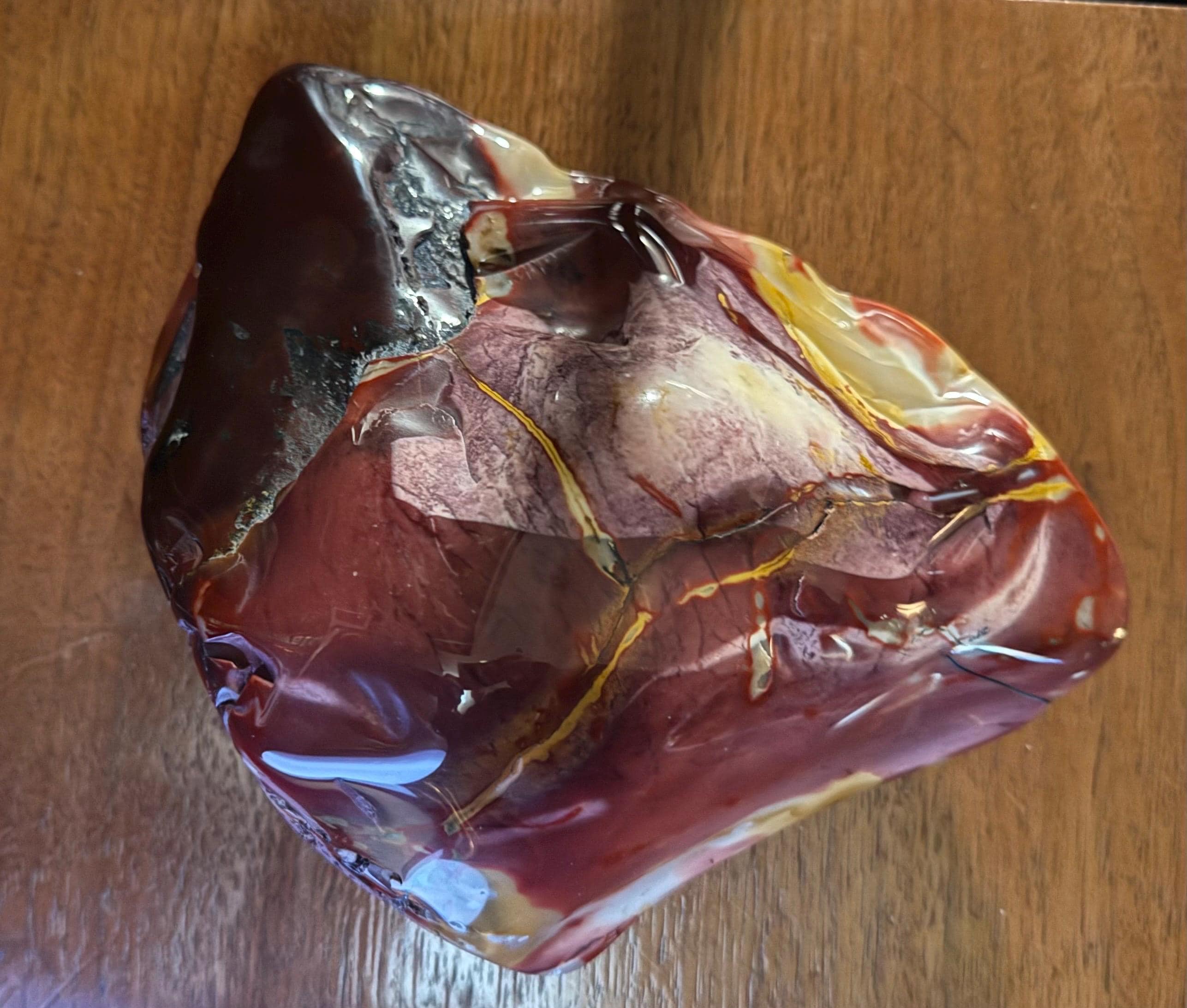 This lovely and polished cabinet sized Mookaite Jasper stone is from Mooka Creek, Australia.