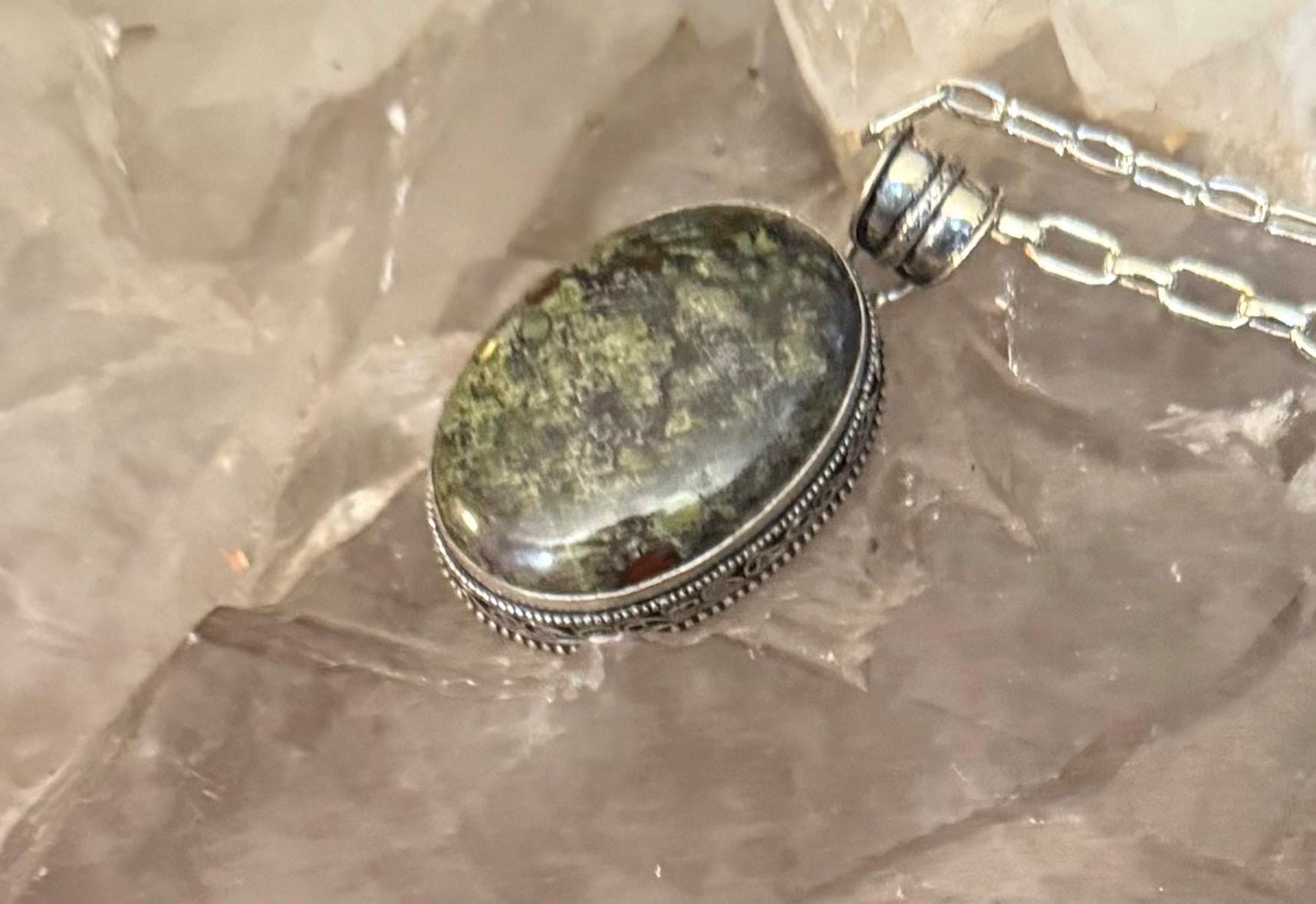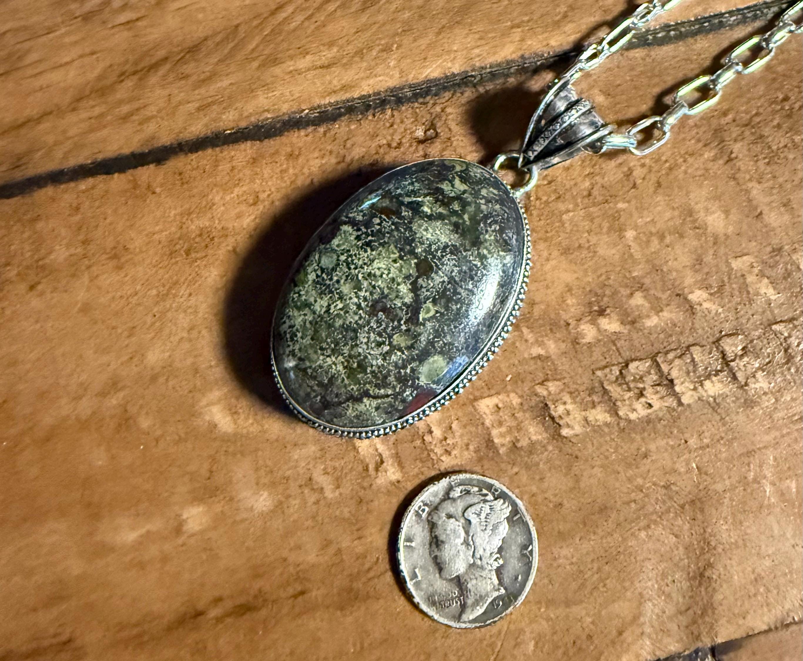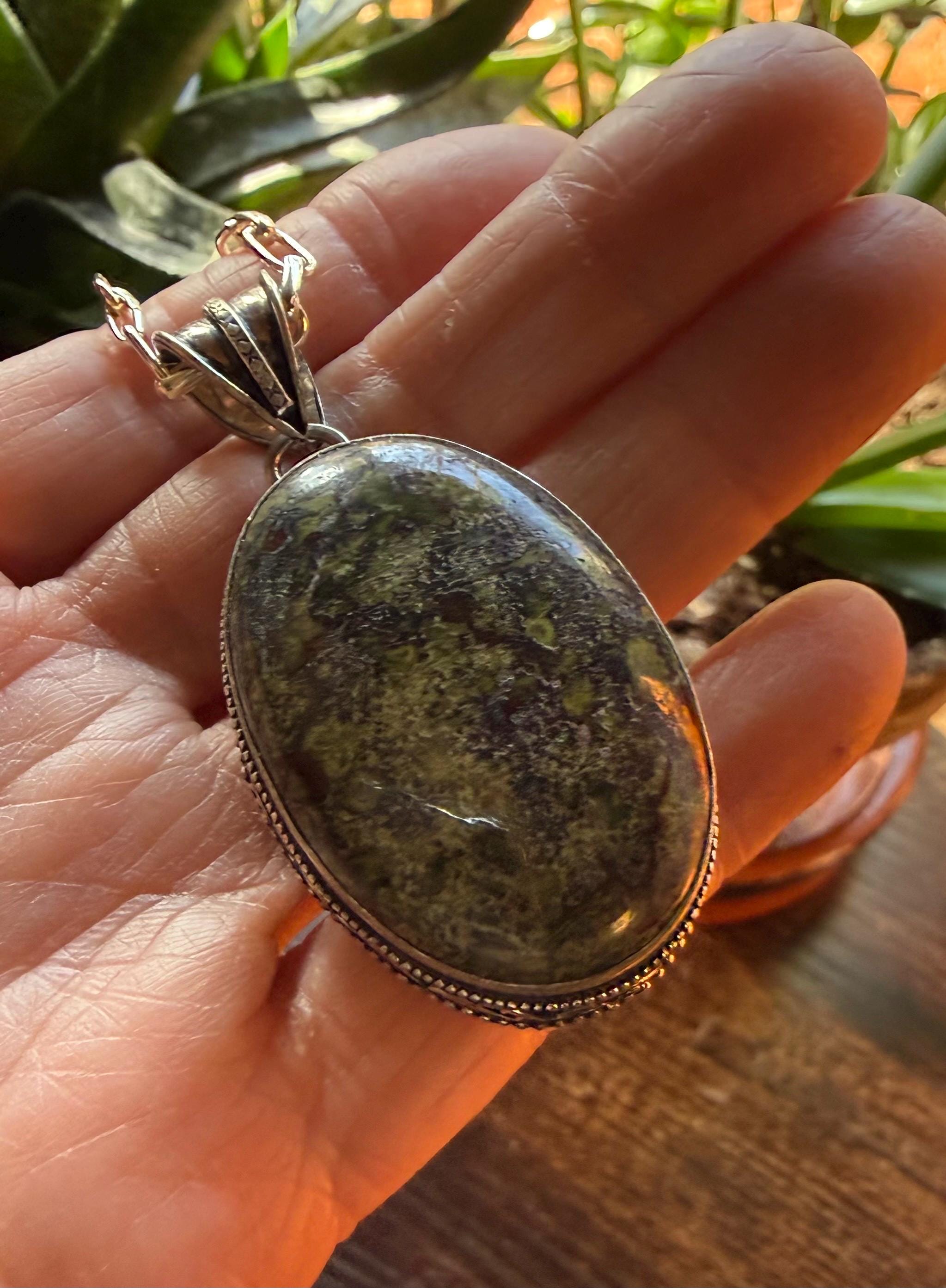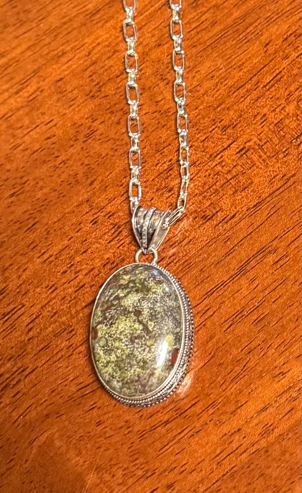 A truly gorgeous large Dragon Stone pendant in green with a touch of Red Jasper.