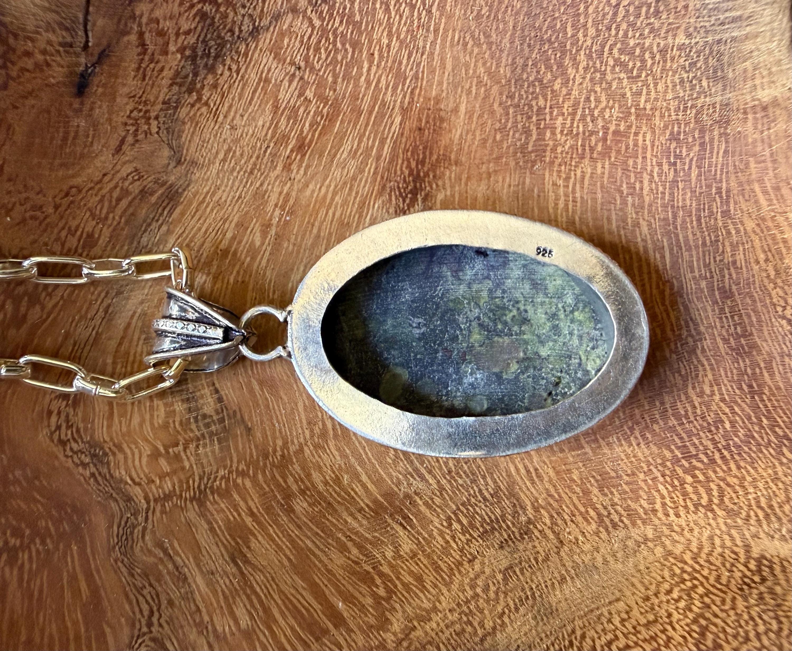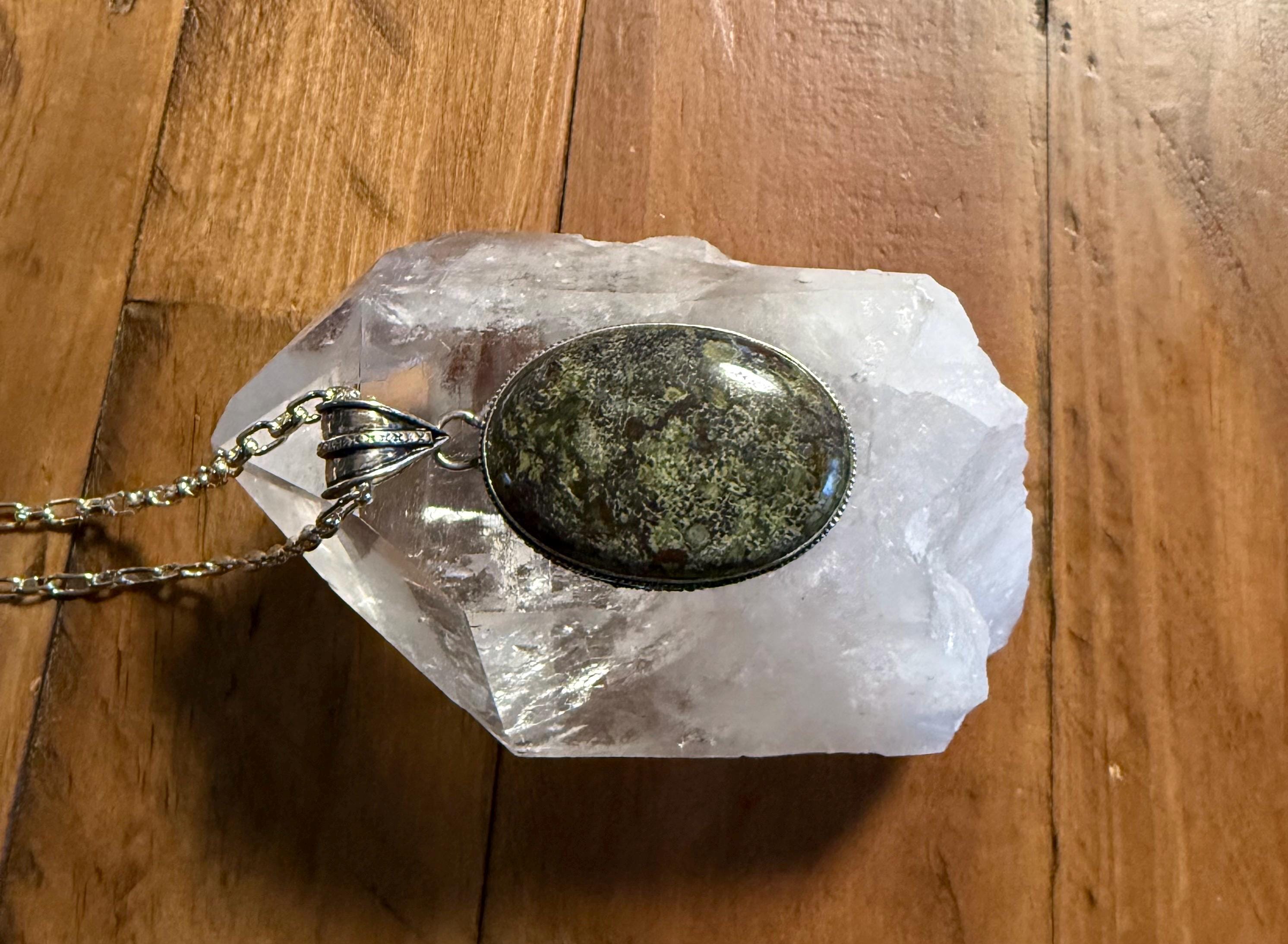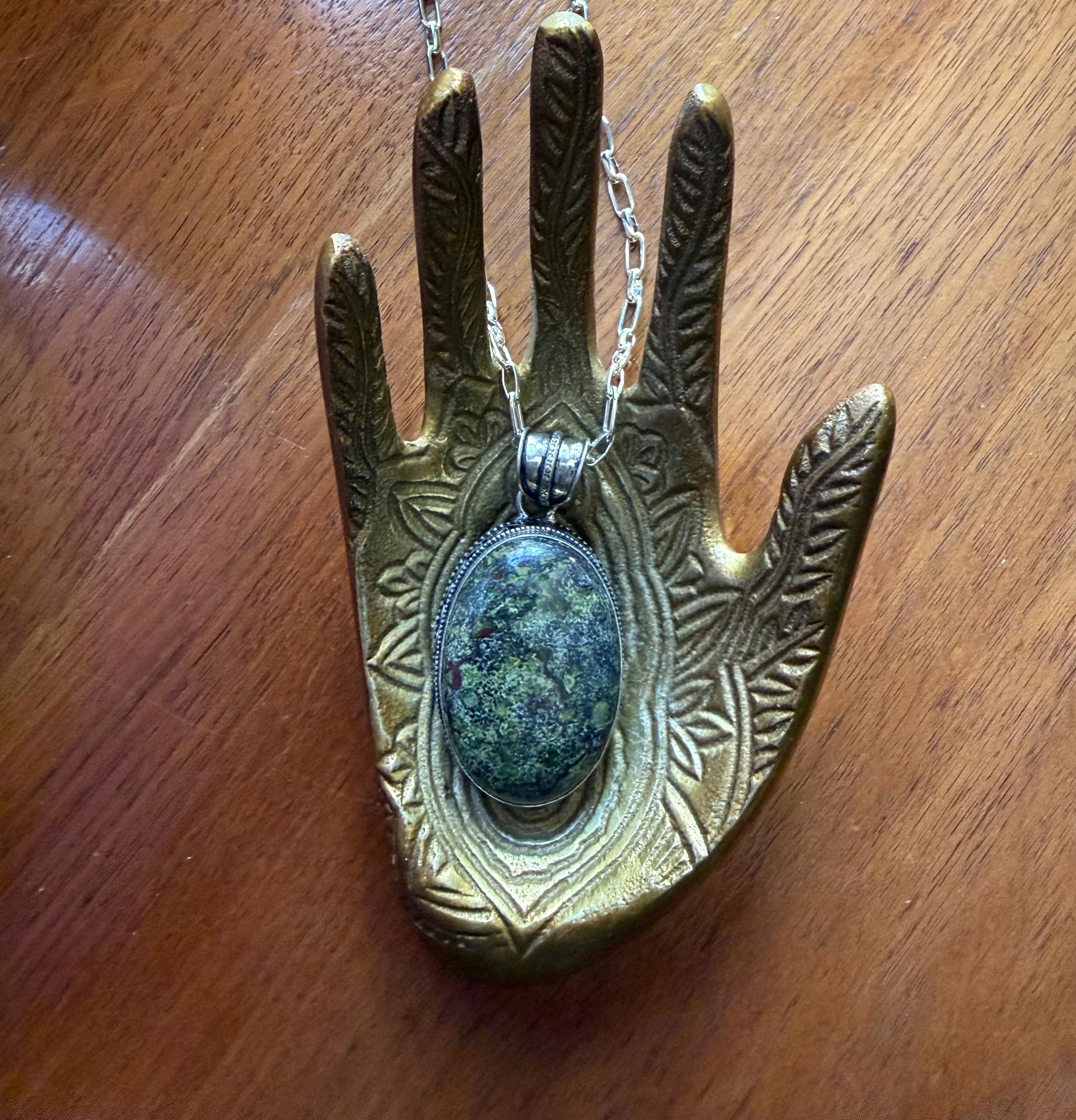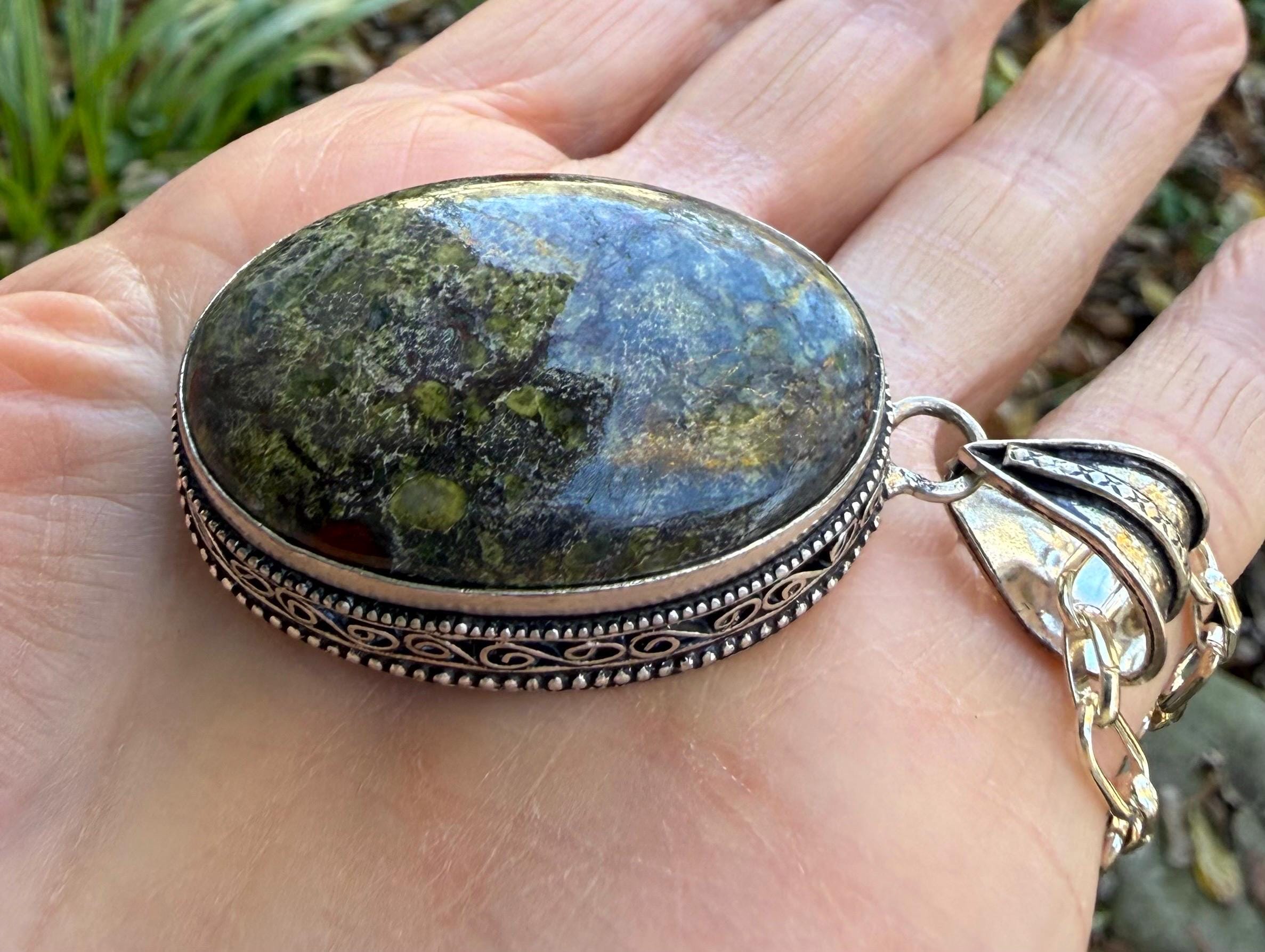 A truly gorgeous large Dragon Stone pendant in green with a touch of Red Jasper.