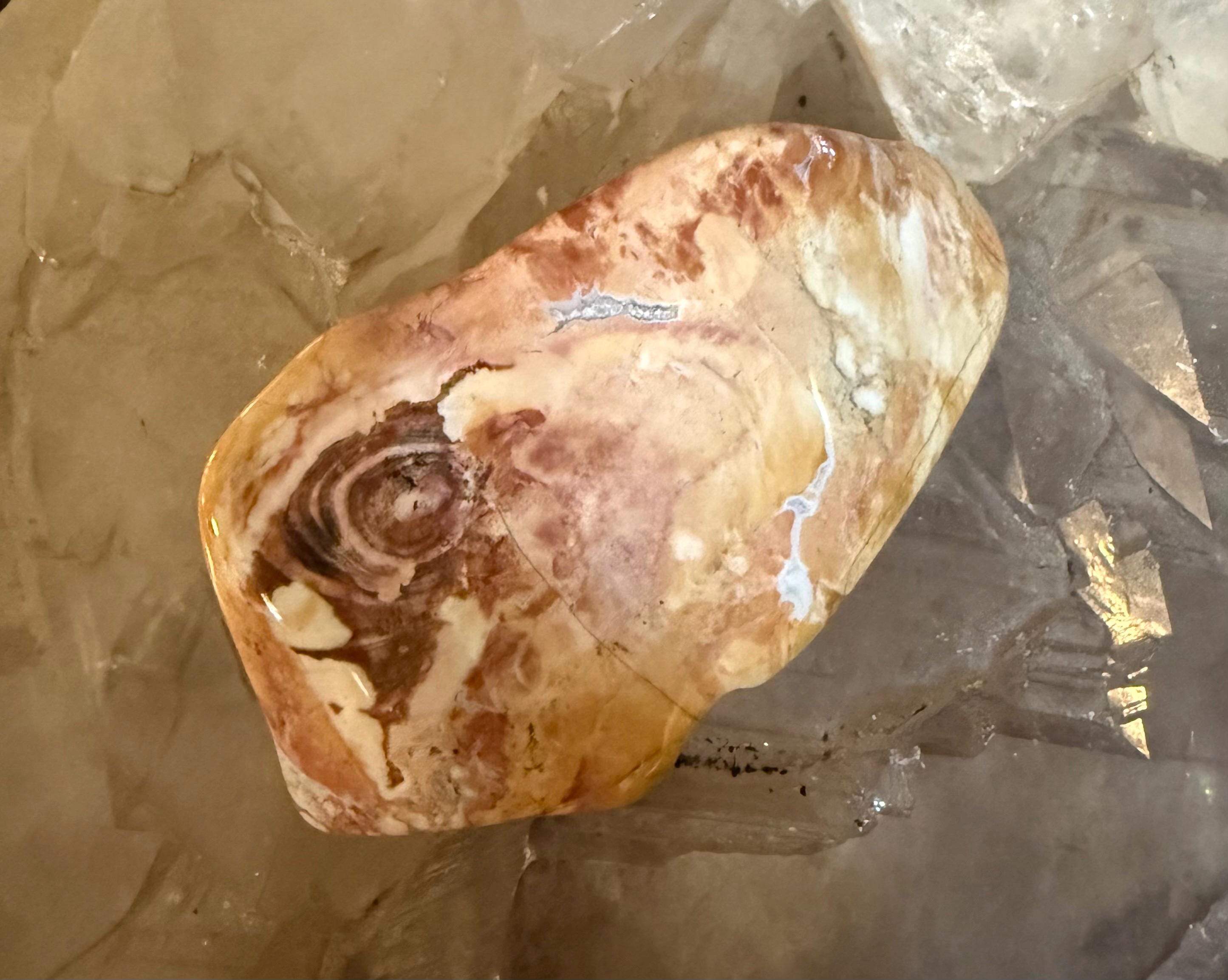 Because this stone is also composed of chalcedony, it is used as a sacred stone by Native American tribes, promoting stability within the ceremonial activities and providing a pathway for receiving thought transmissions.