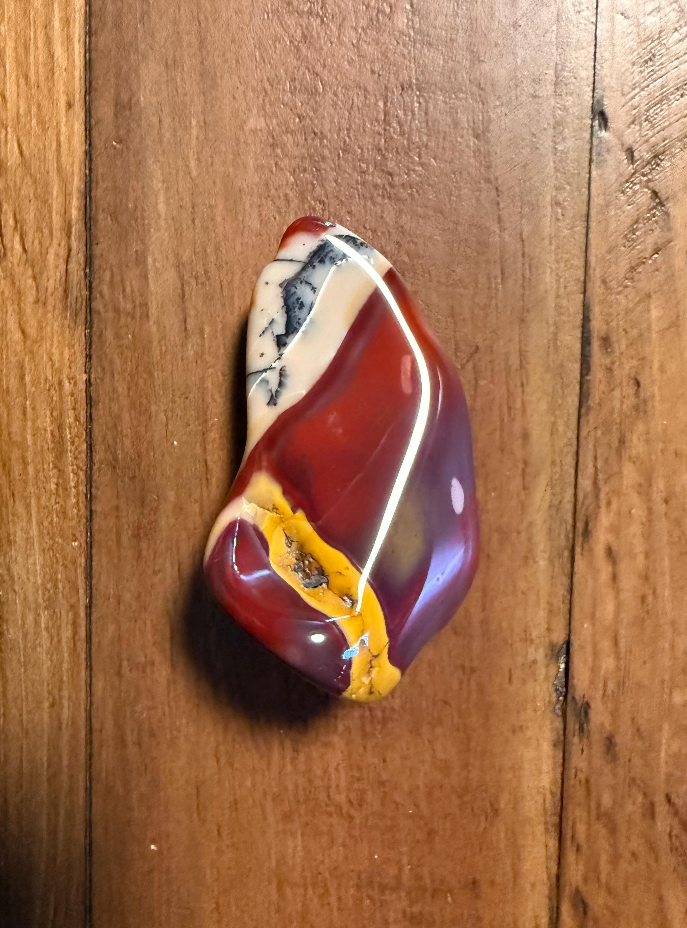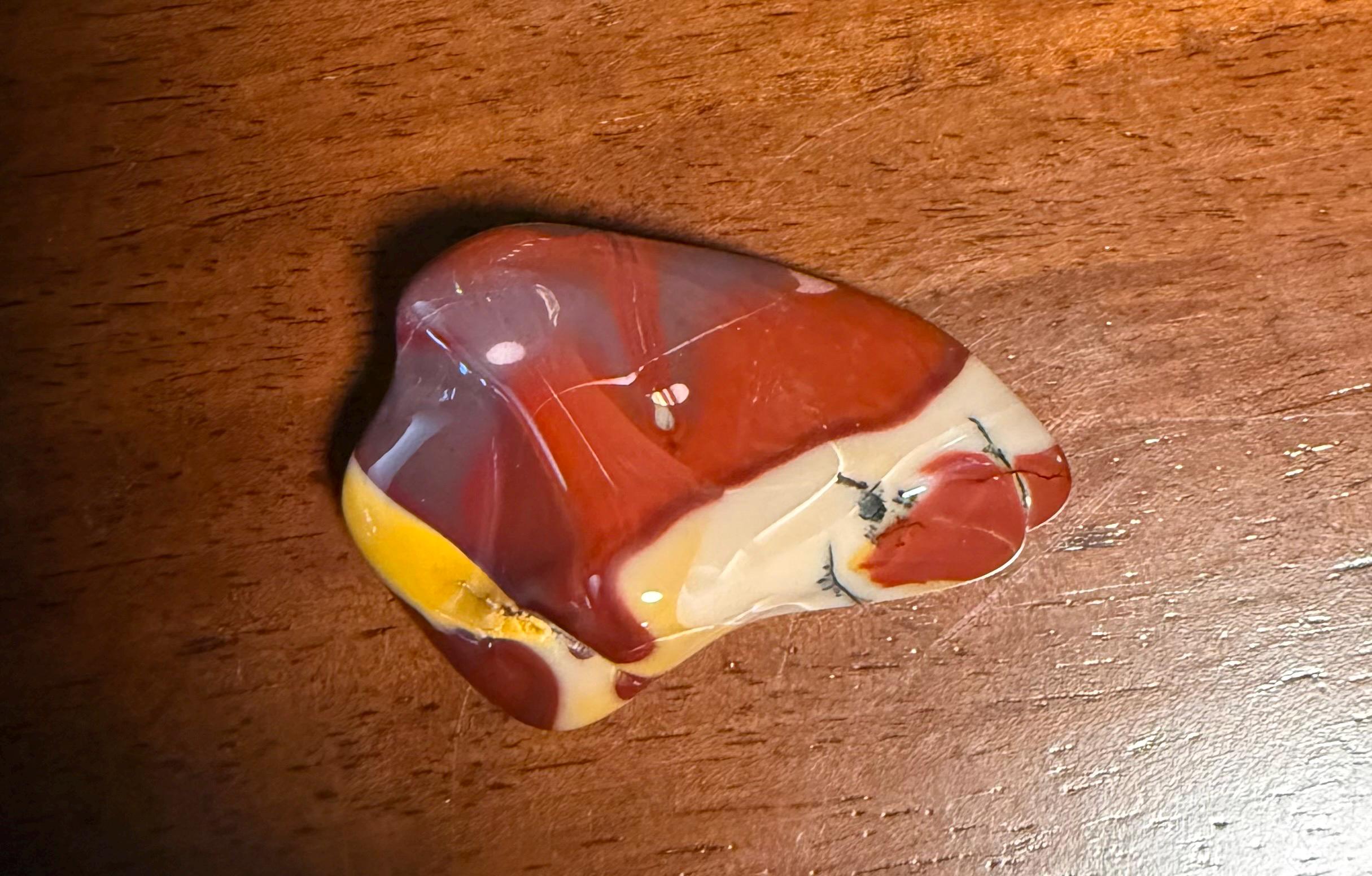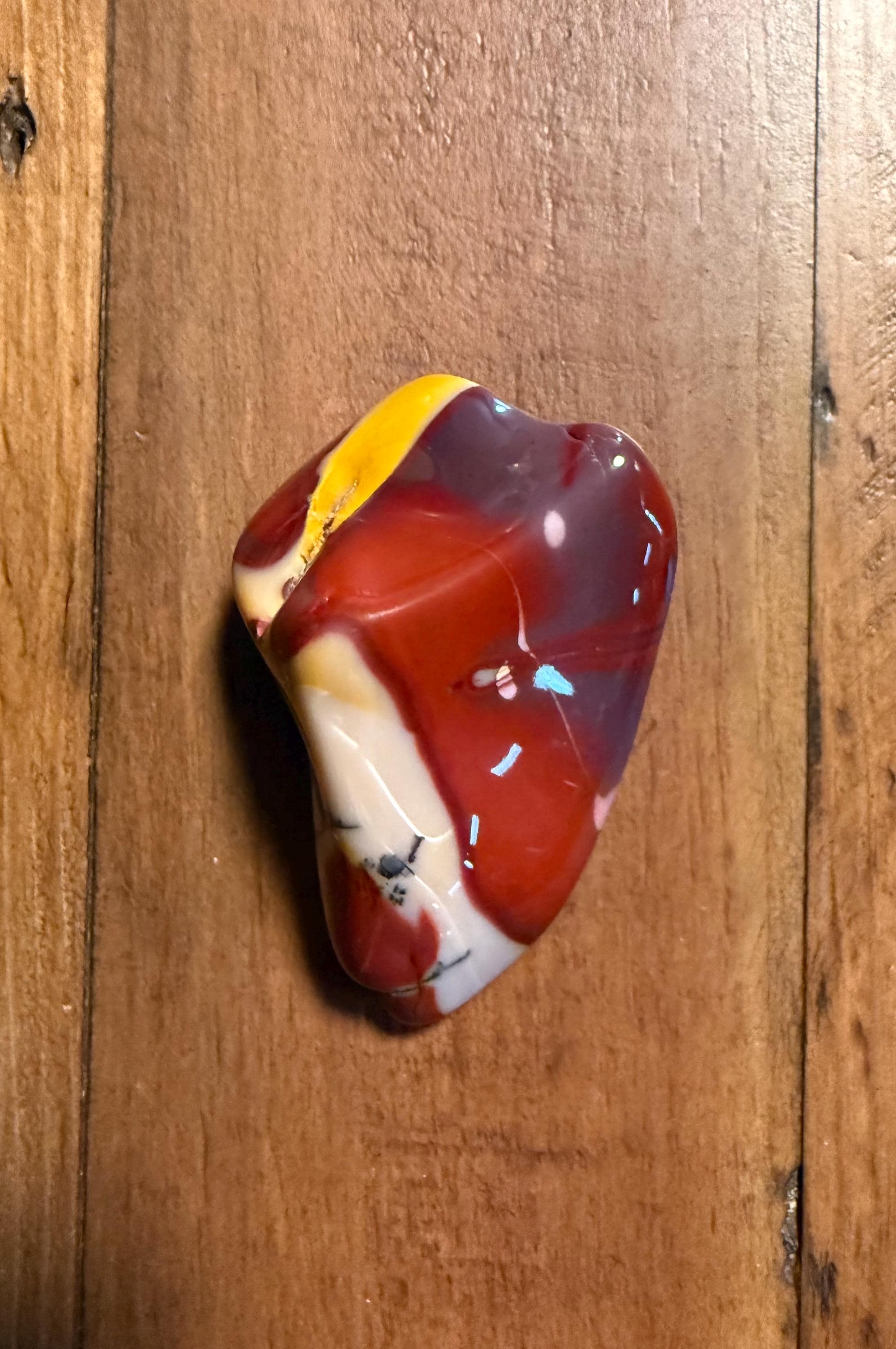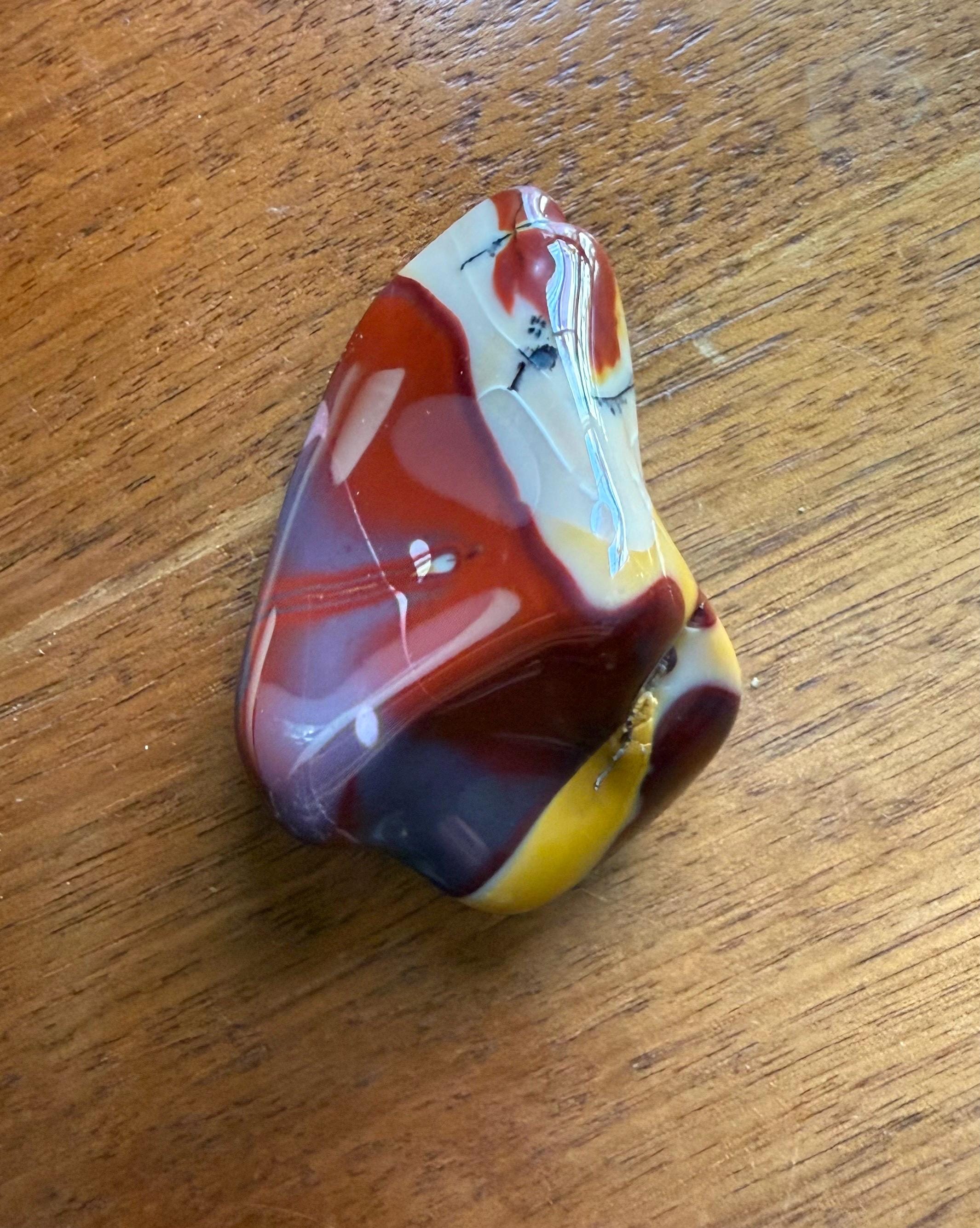 This lovely polished Mookaite Jasper stone is from Mooka Creek, Australia.