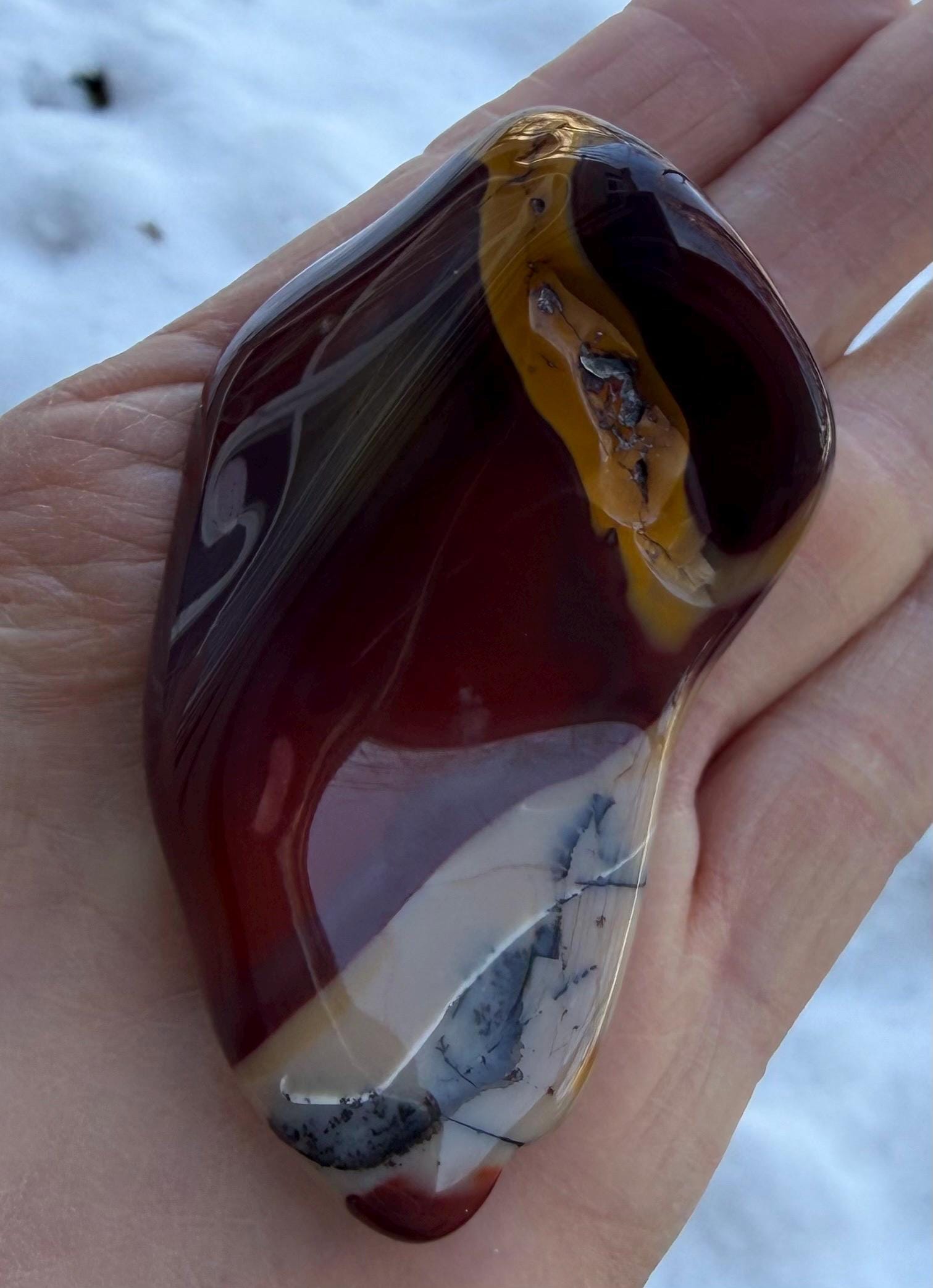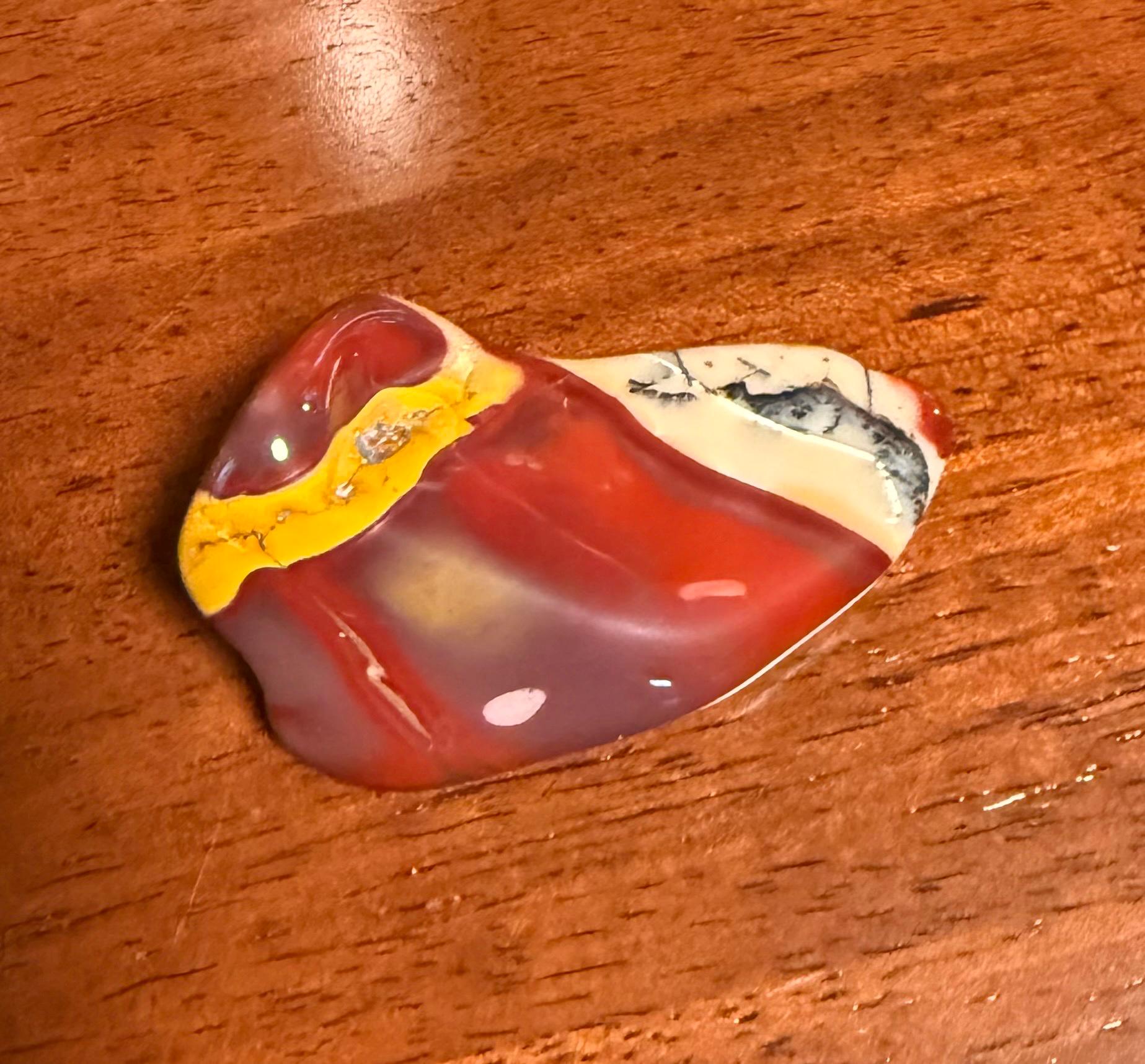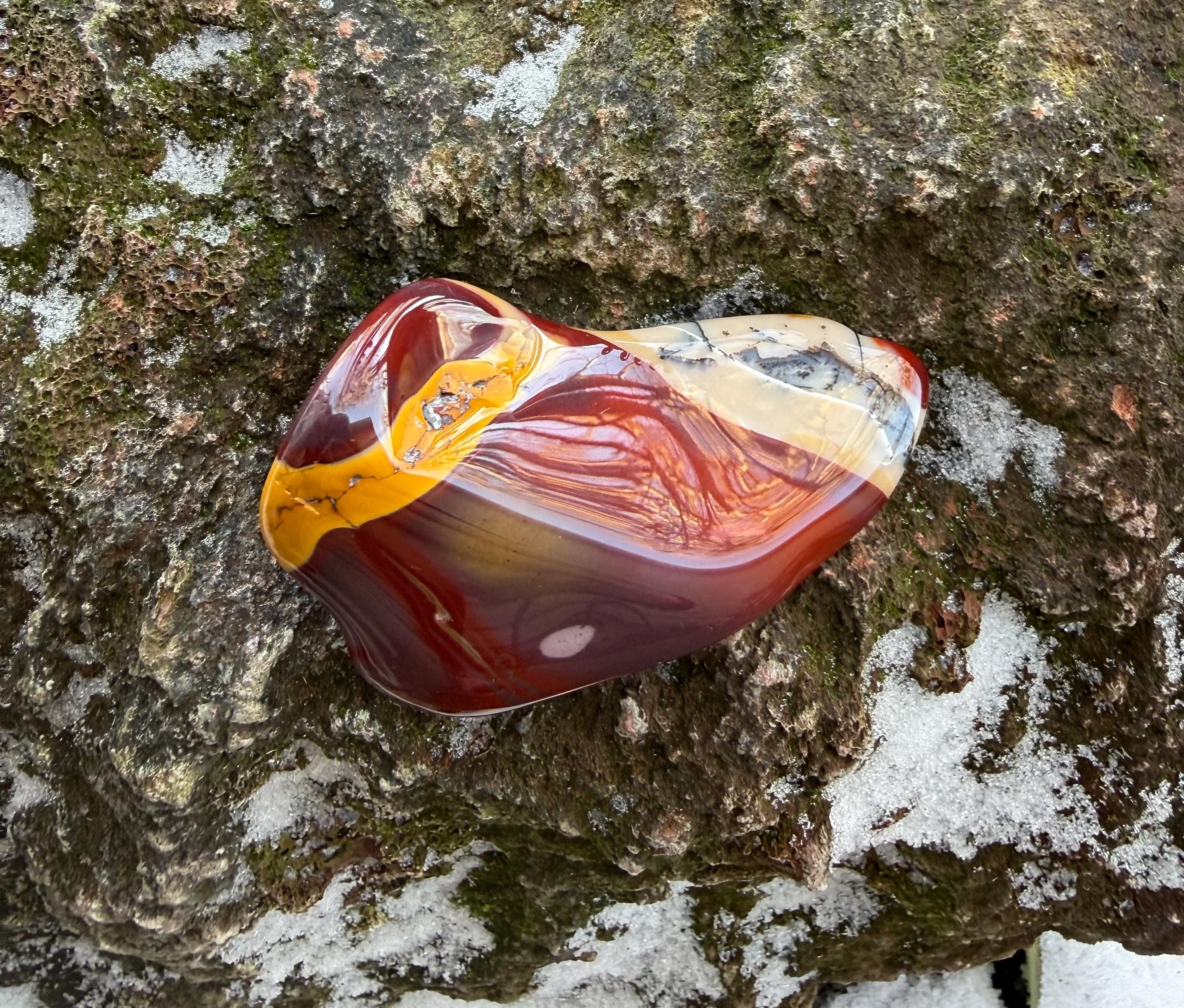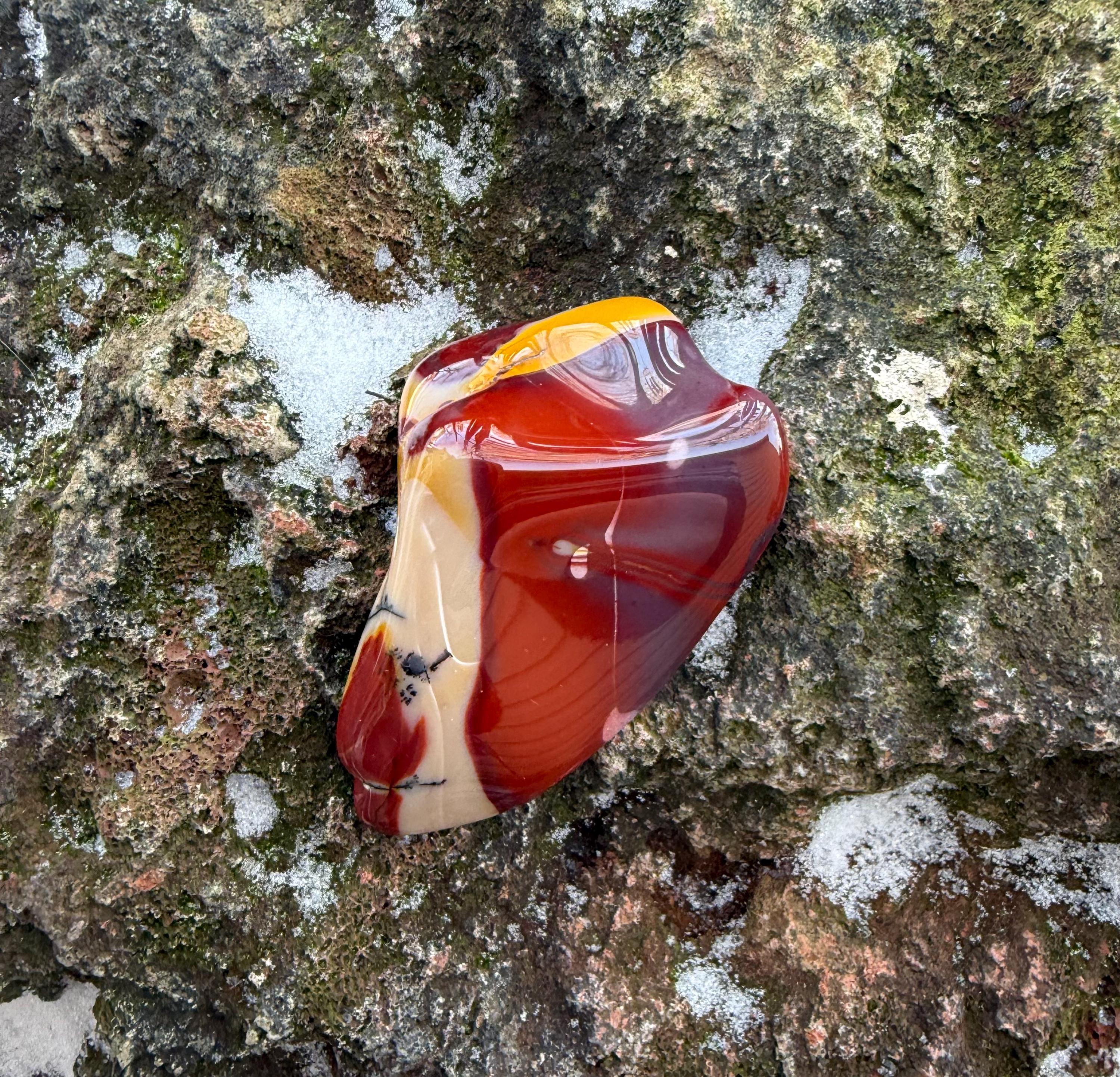 This lovely polished Mookaite Jasper stone is from Mooka Creek, Australia.