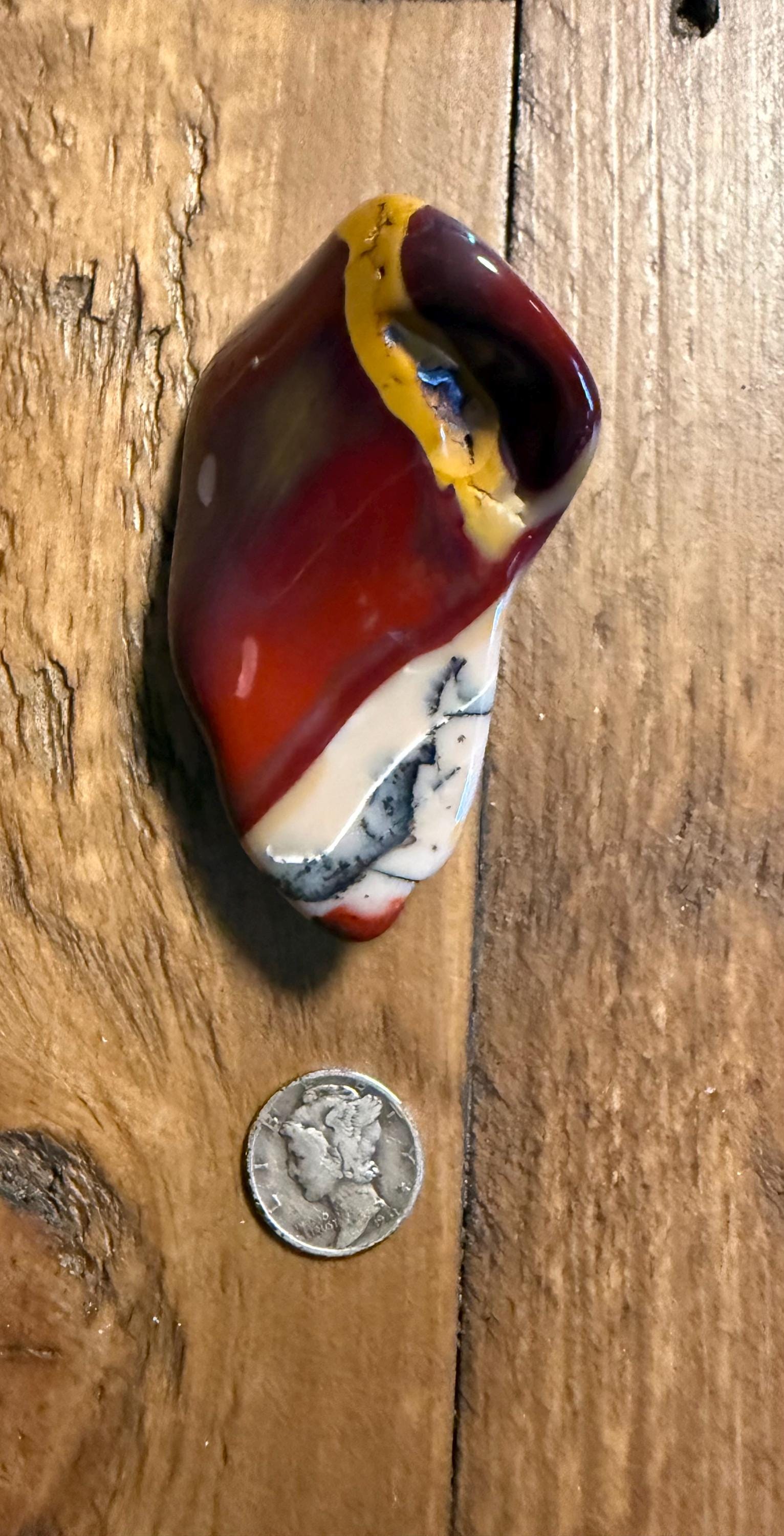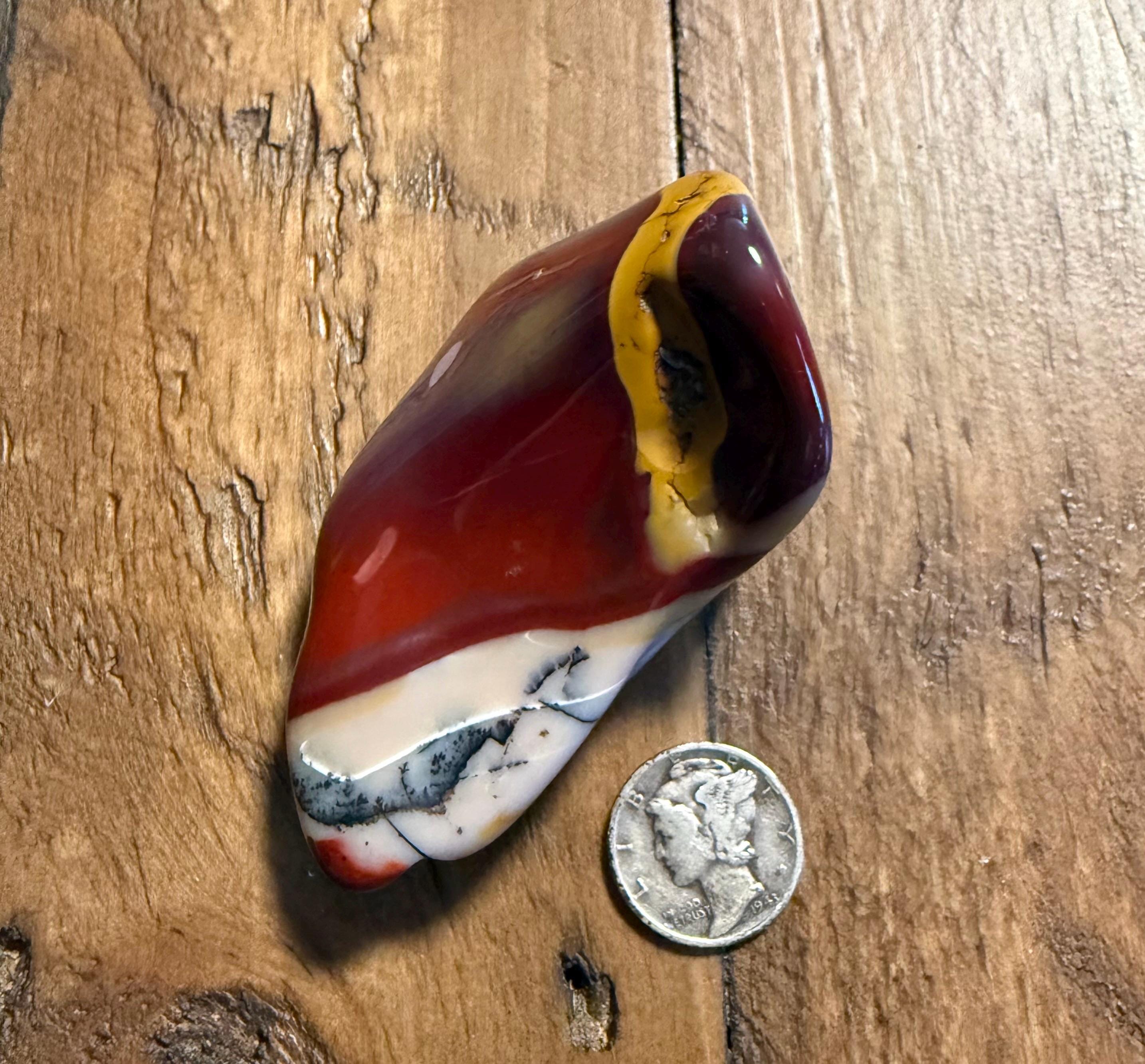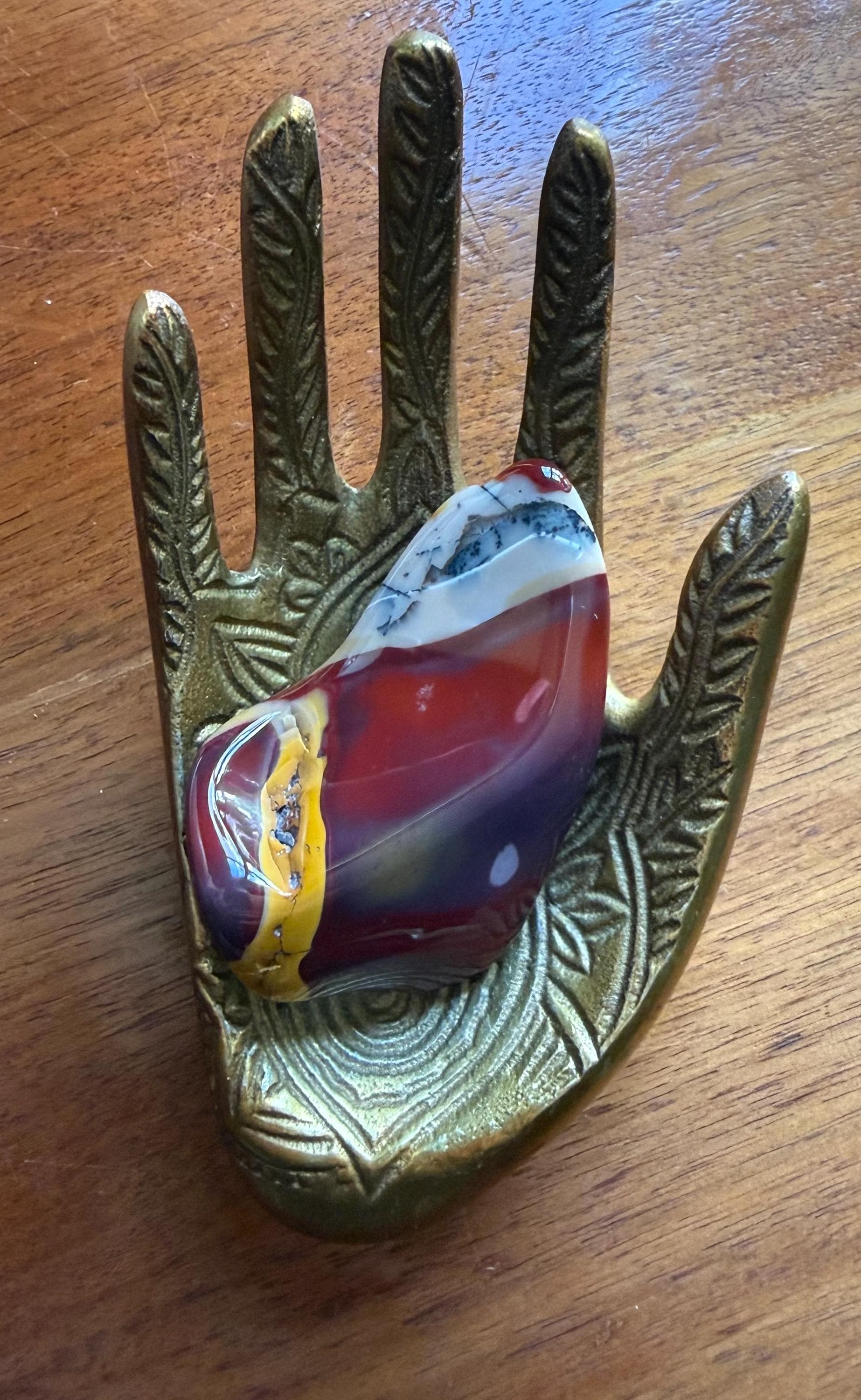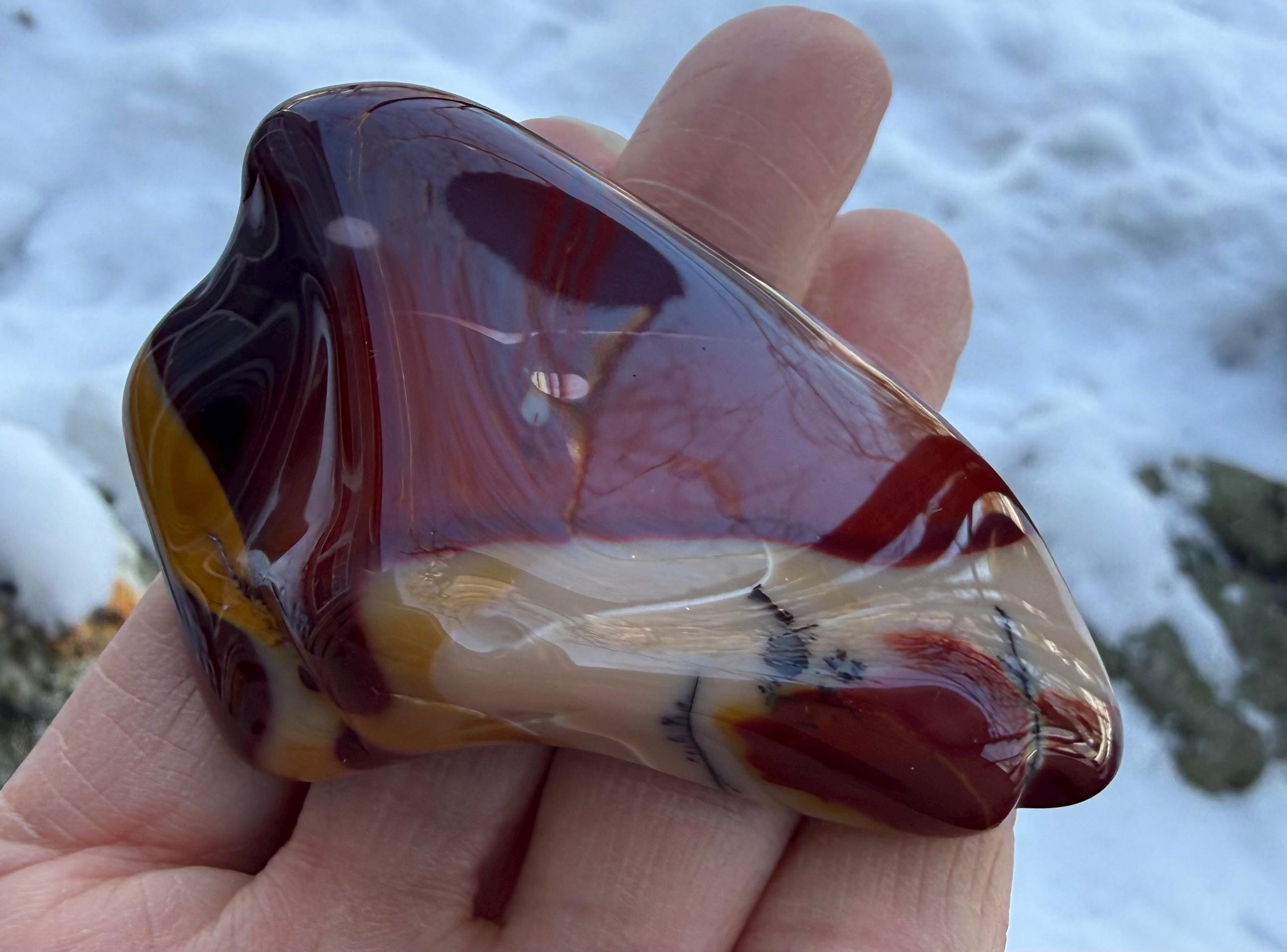This lovely polished Mookaite Jasper stone is from Mooka Creek, Australia.