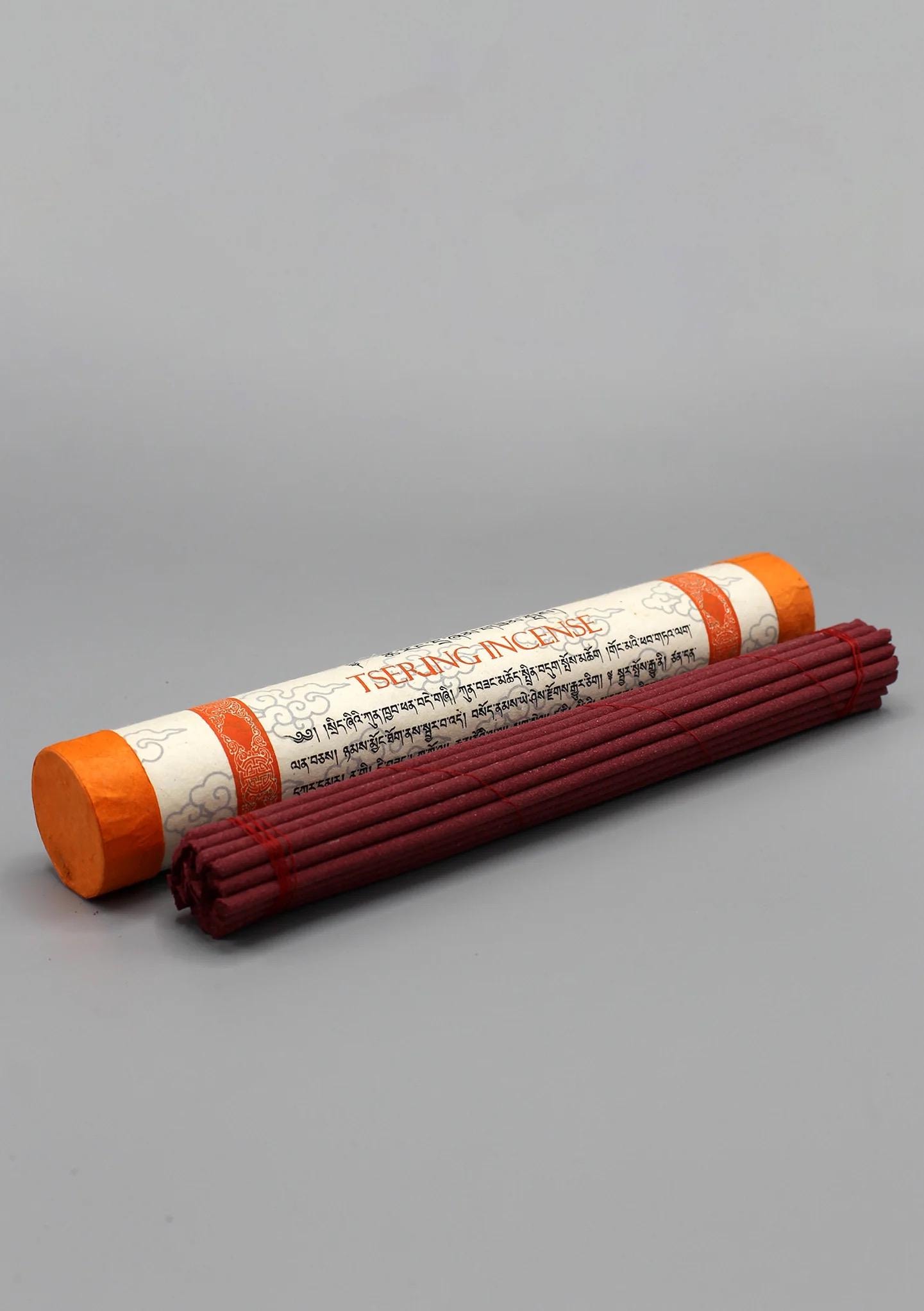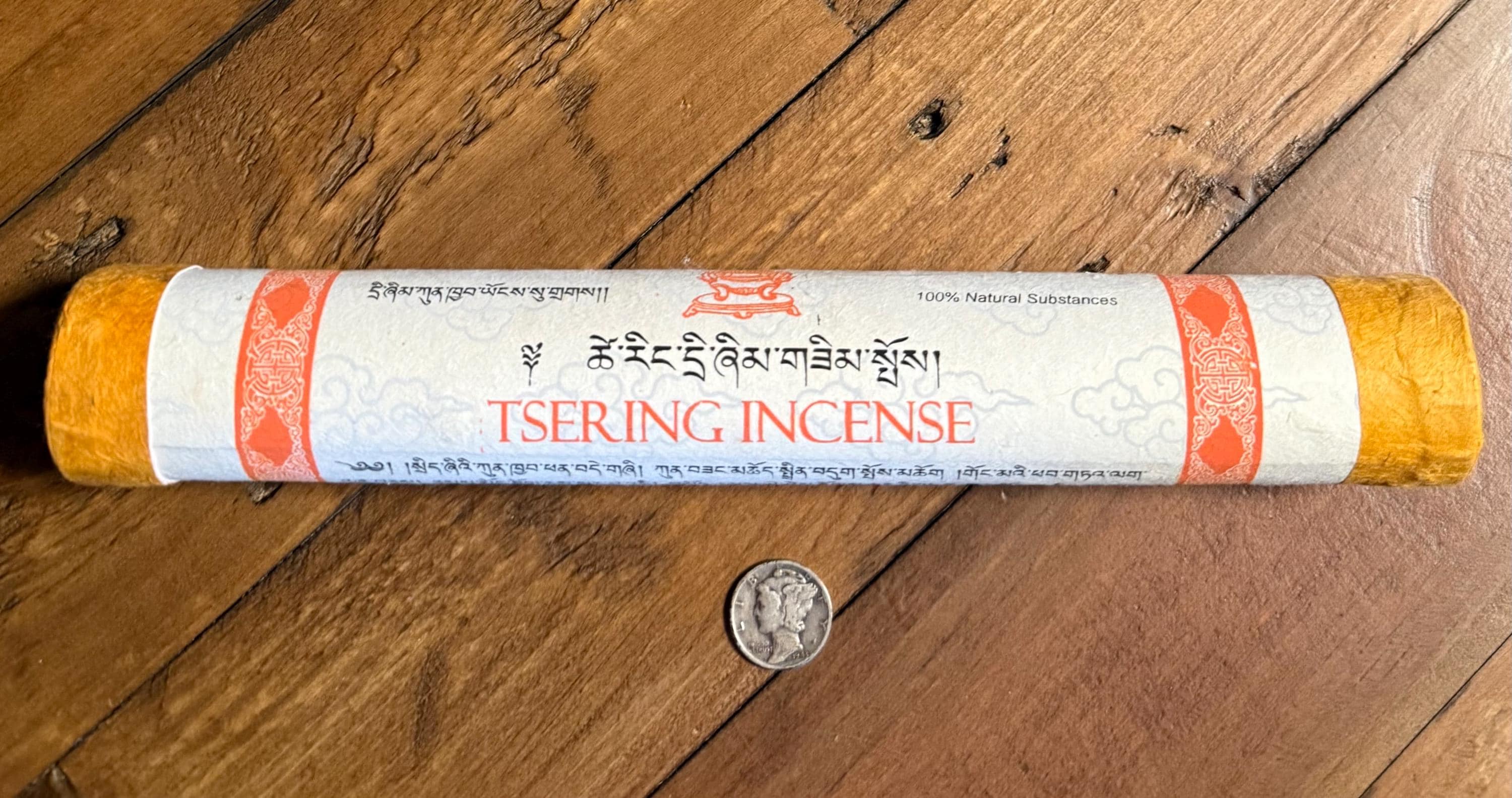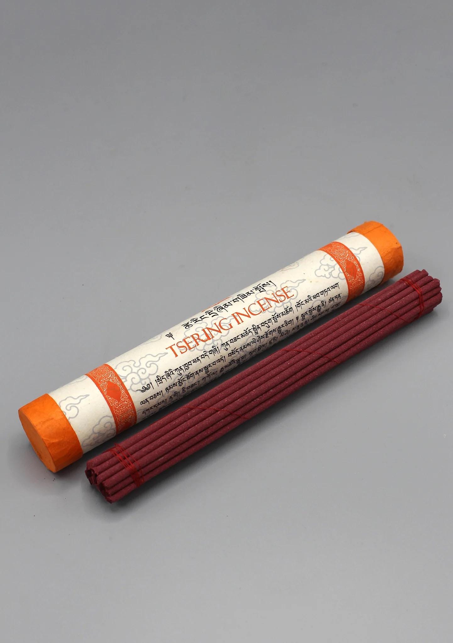 Tsering 100% Natural Tibetan Incense is a secret blend of aloeswood, saffron, nutmeg, sea-foam, clove, juniper, sandalwood, and various HImalayan herbs.