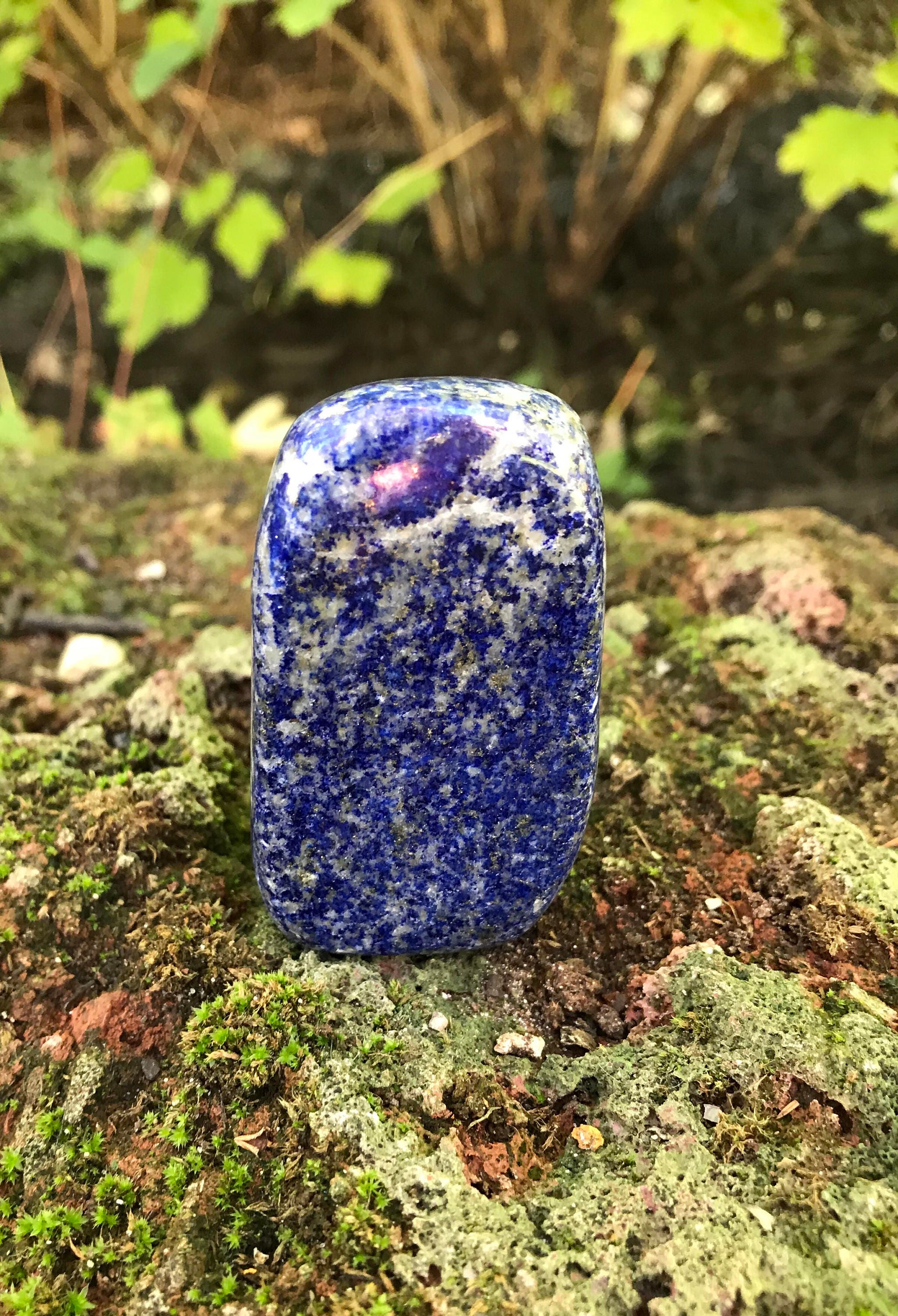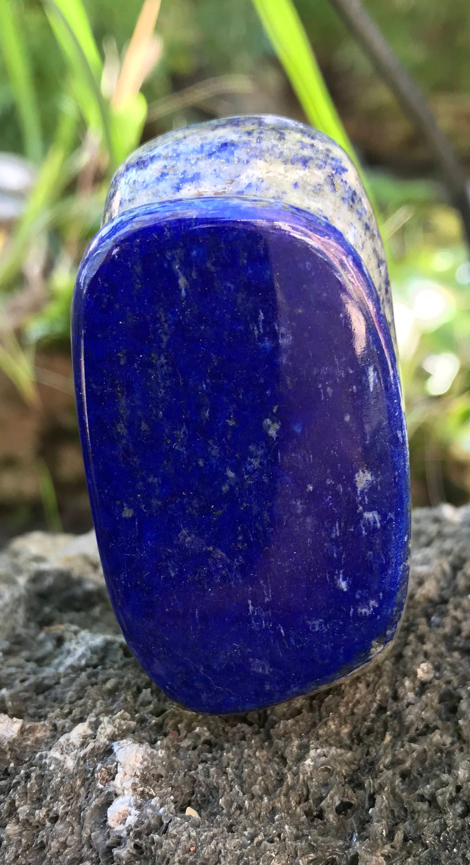 Its name comes from the Latin lapis, "stone," It is rock formed by multiple minerals, mostly Lazurite, Sodalite, Calcite, and Pyrite, and is a rich medium to royal blue with gold flecks (pyrites).