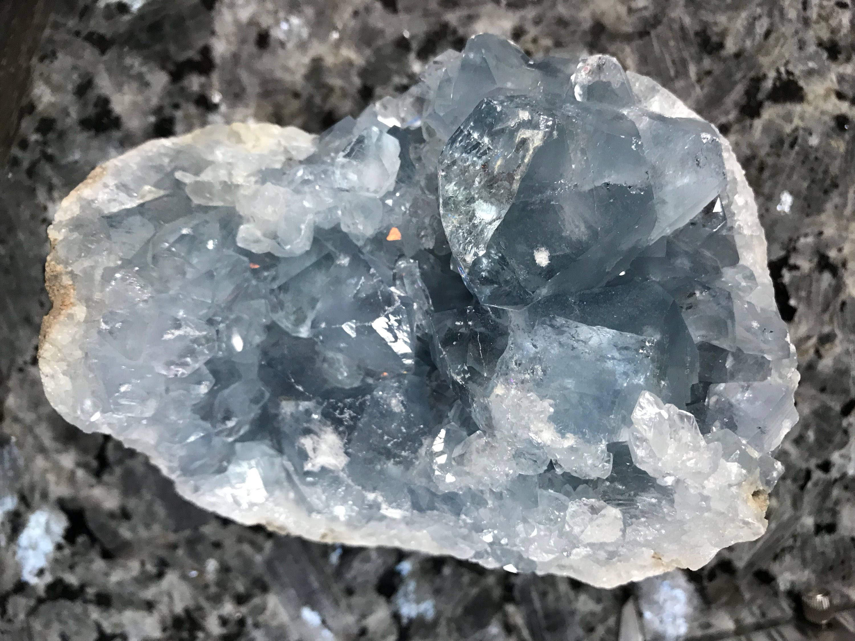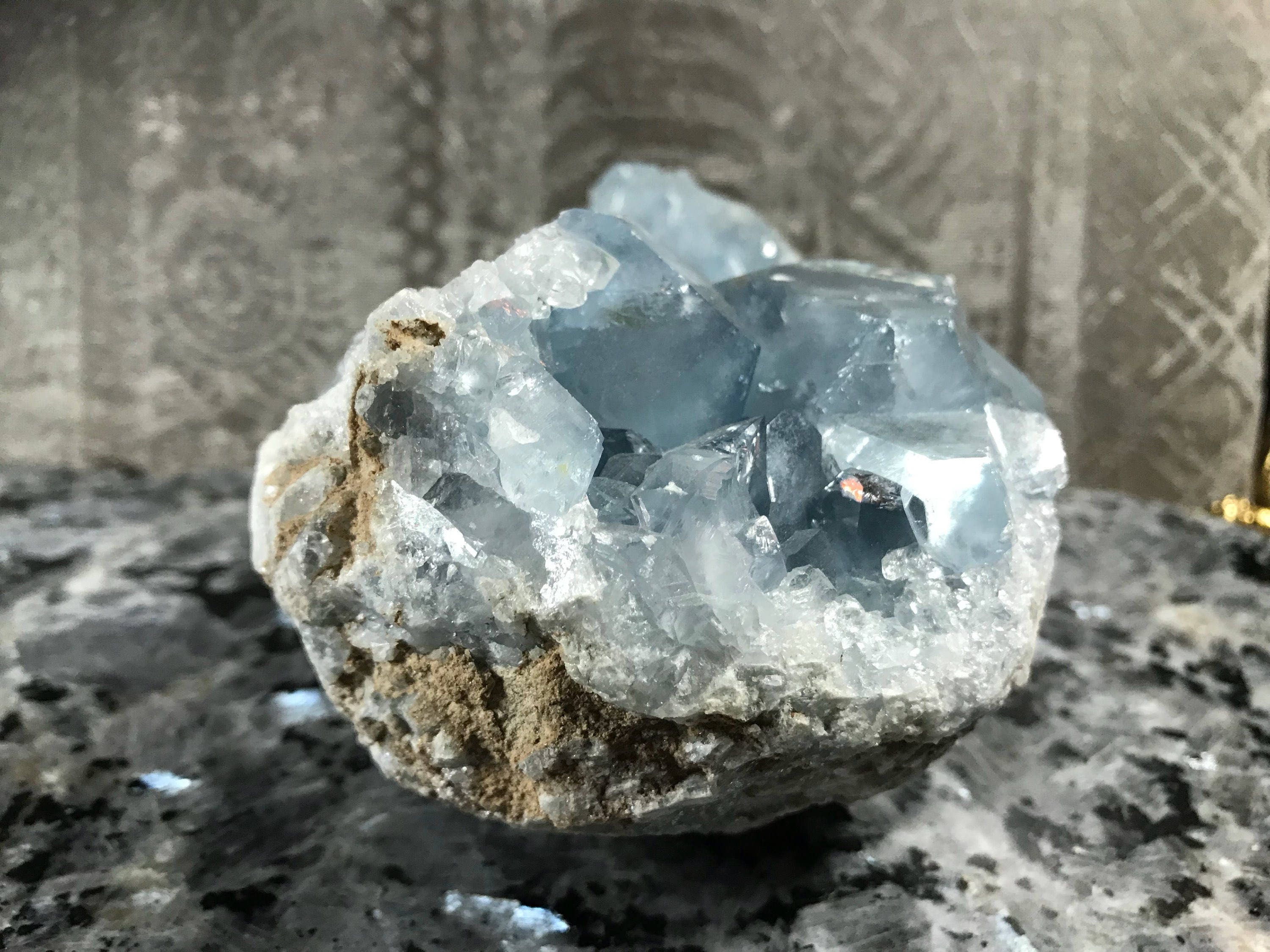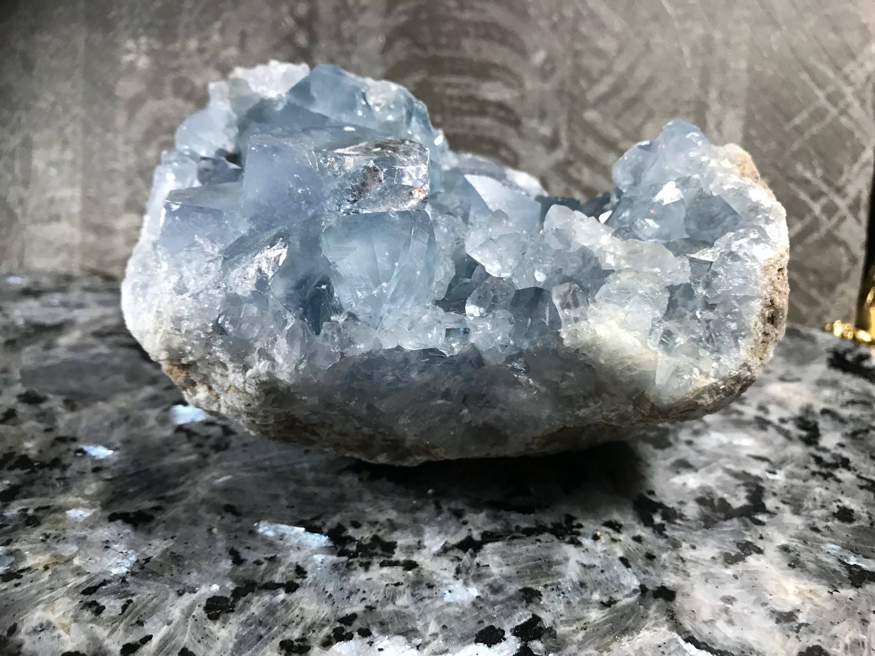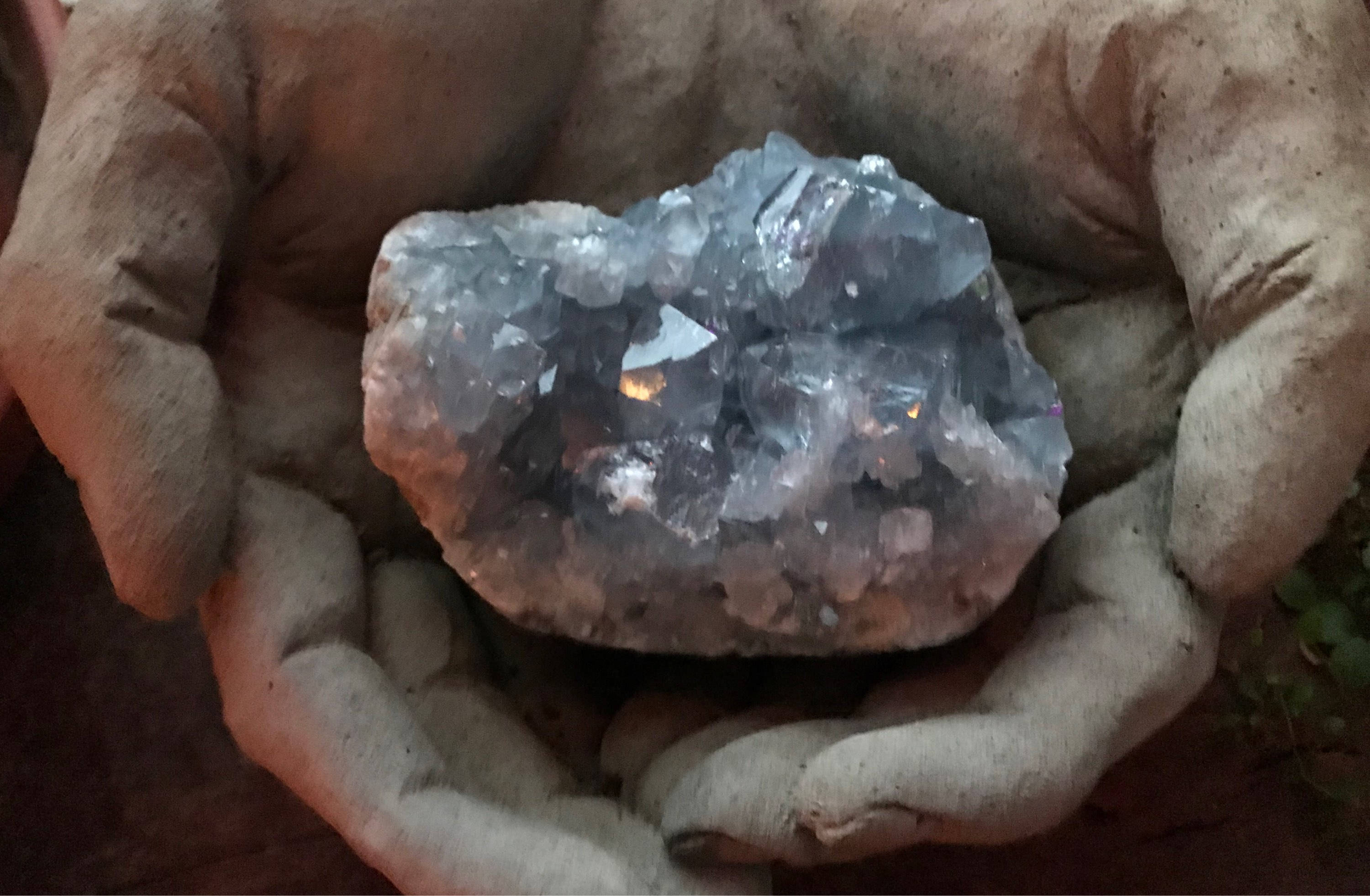 Blue celestite cleanses affected areas, and transmutes pain and chaos into light and love.