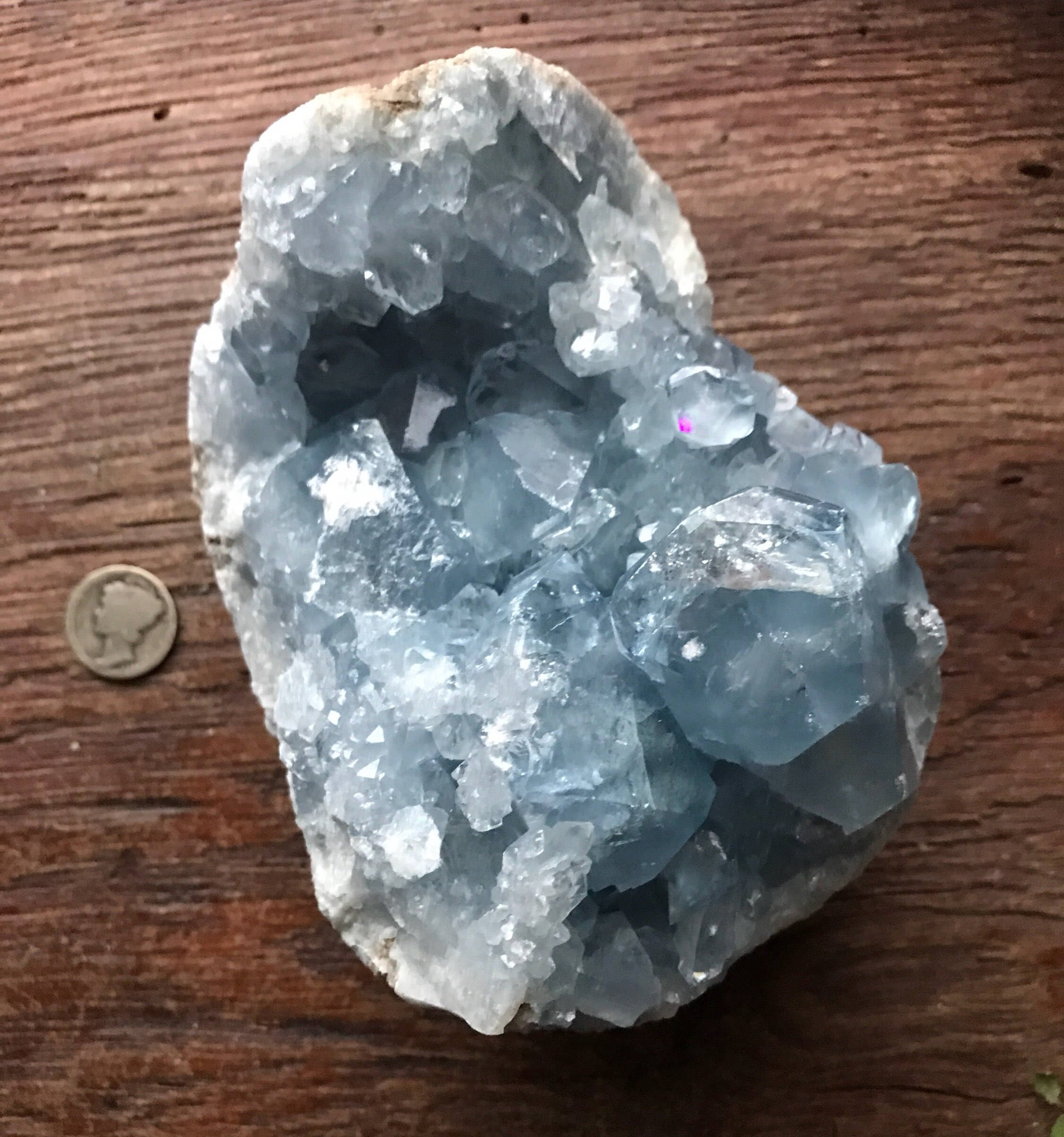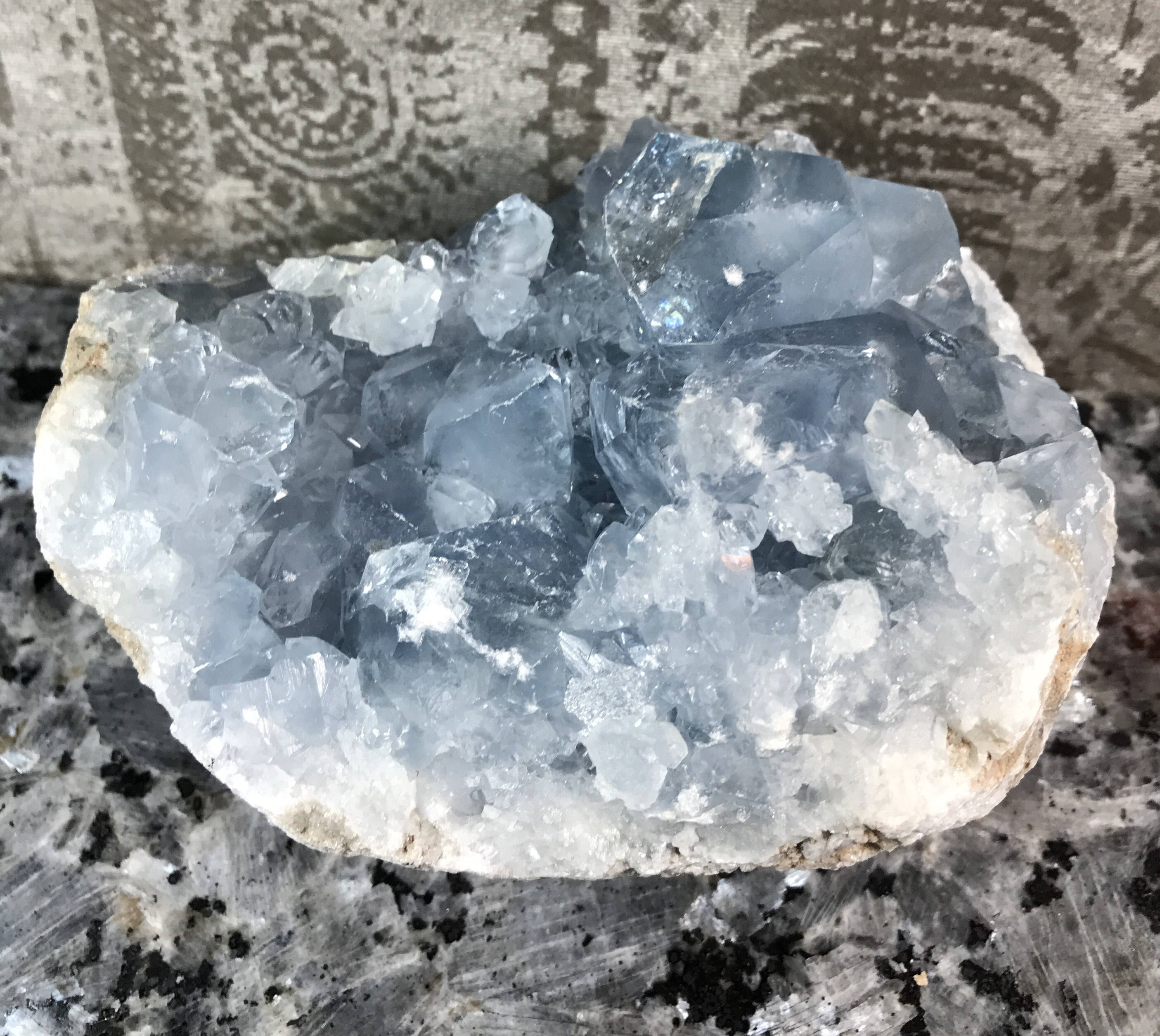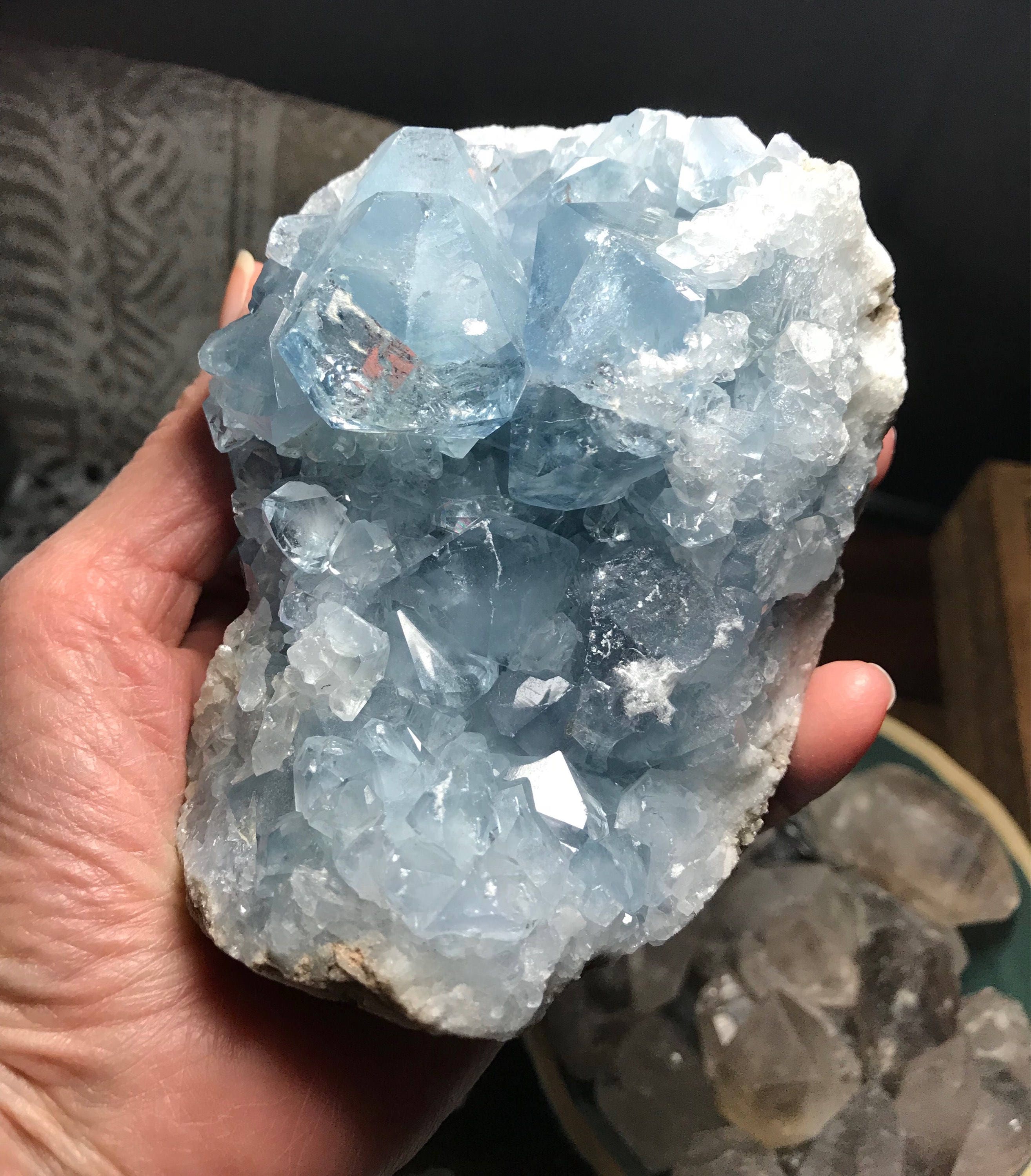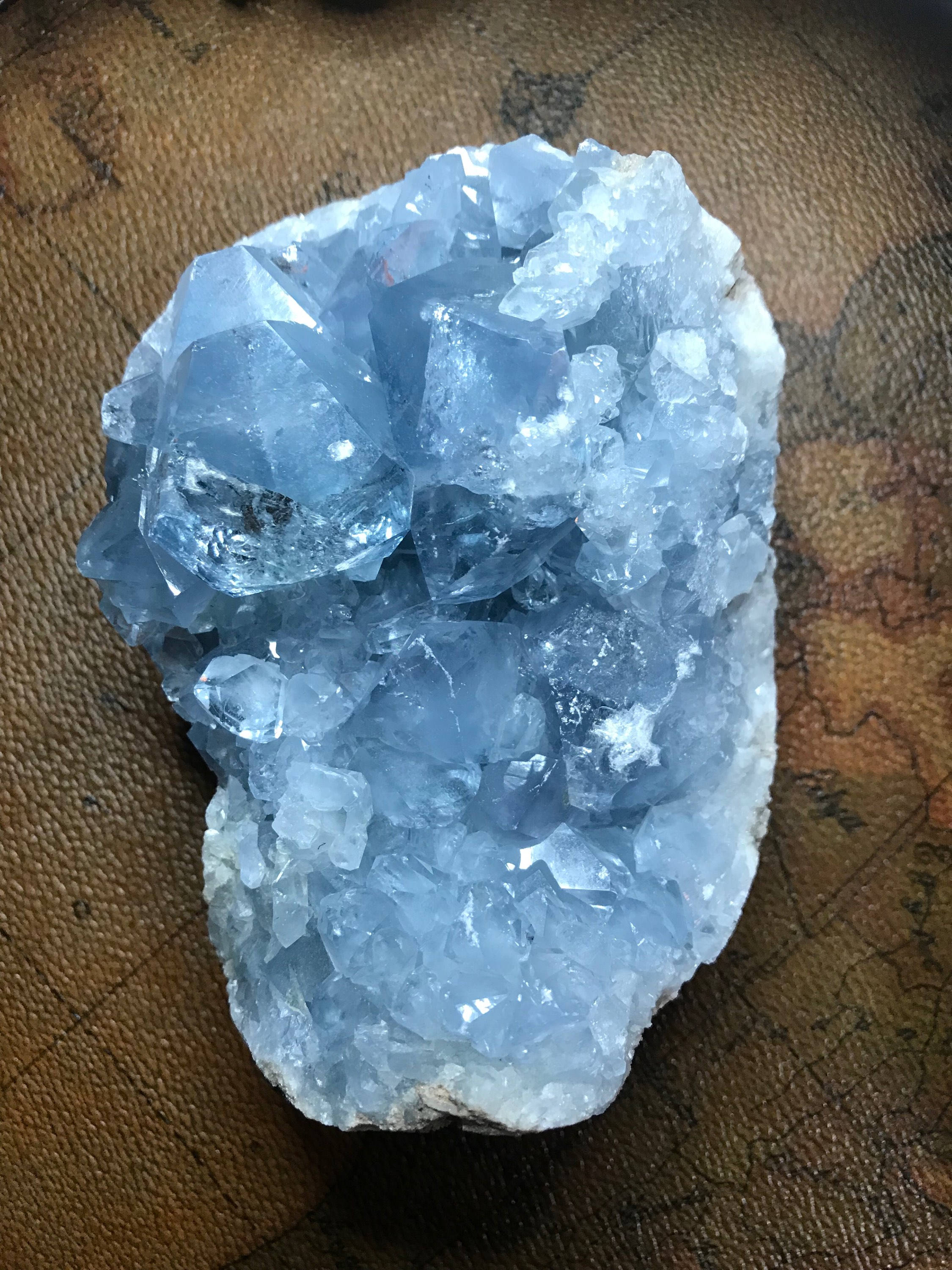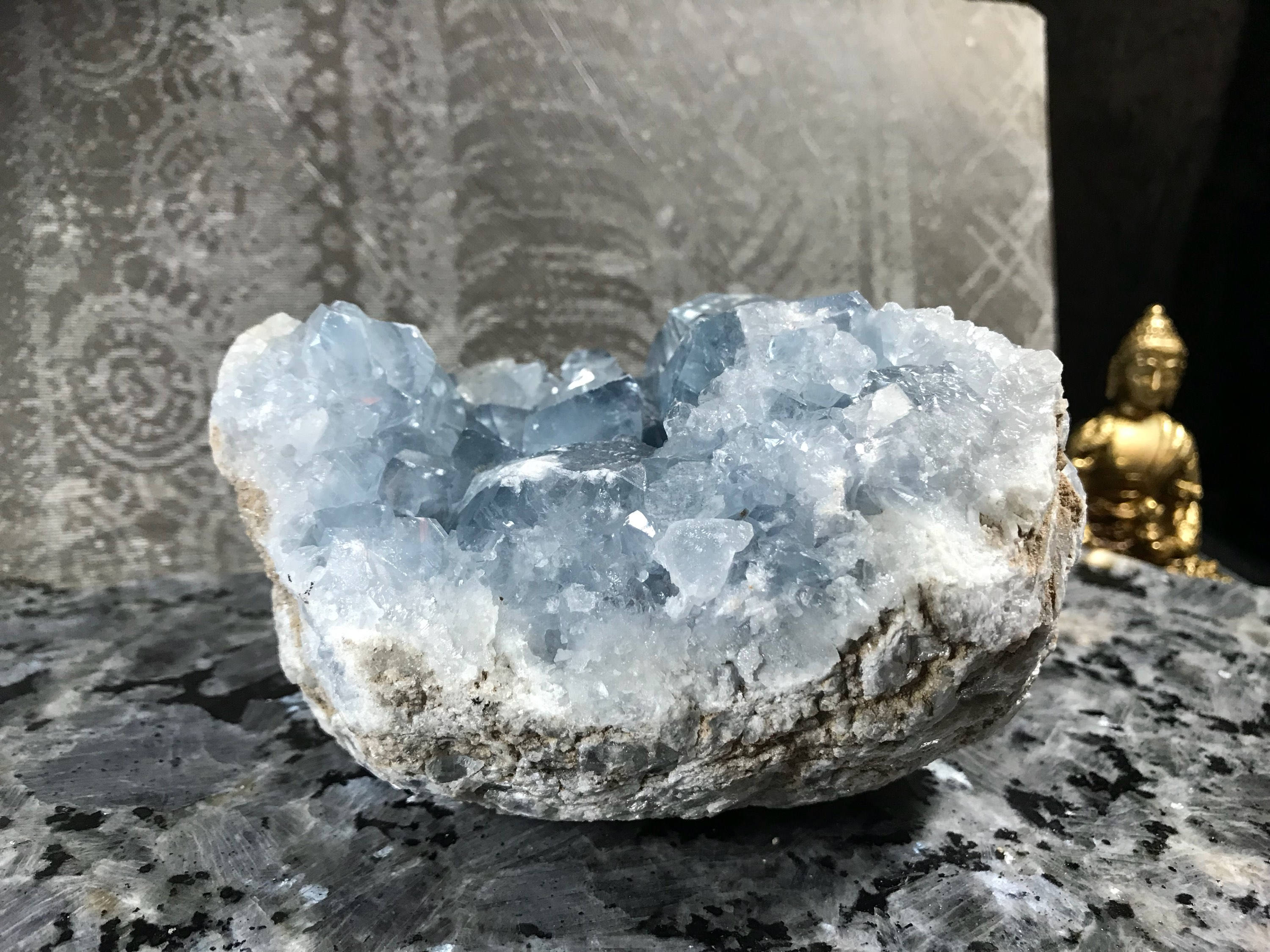 Blue celestite cleanses affected areas, and transmutes pain and chaos into light and love.